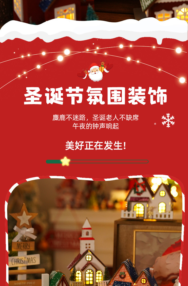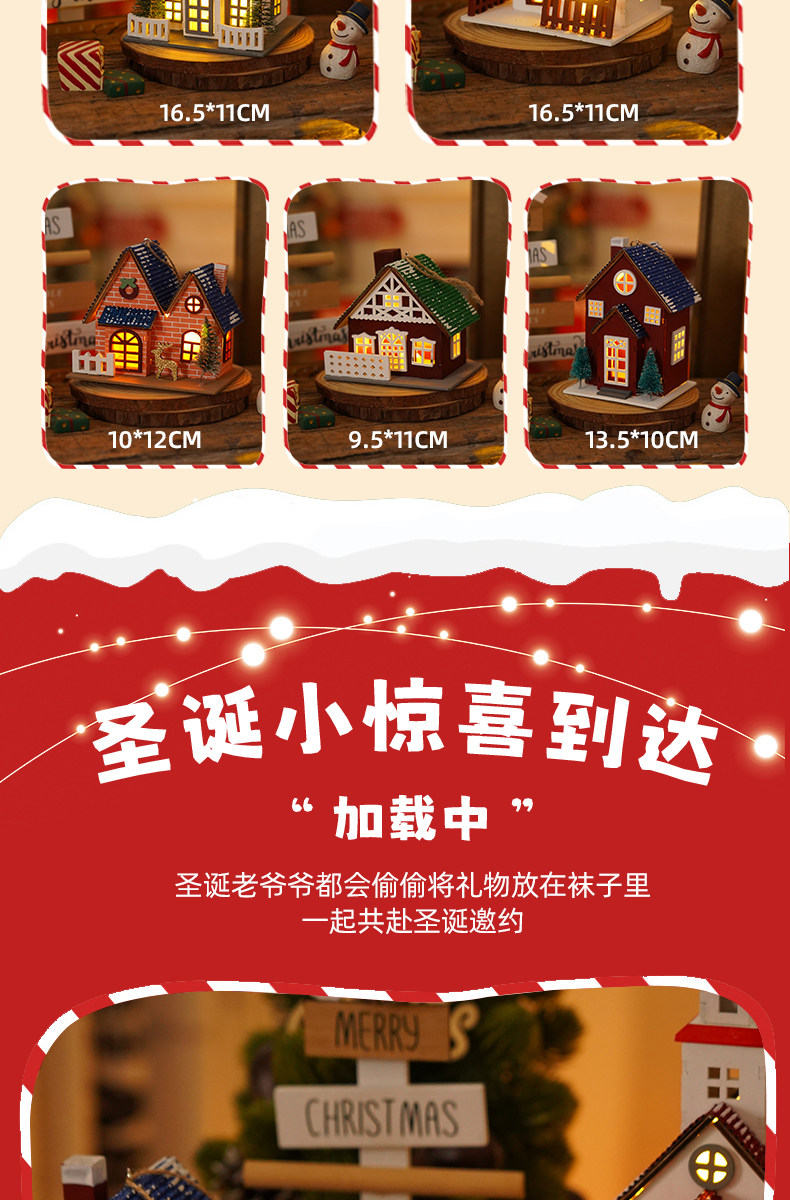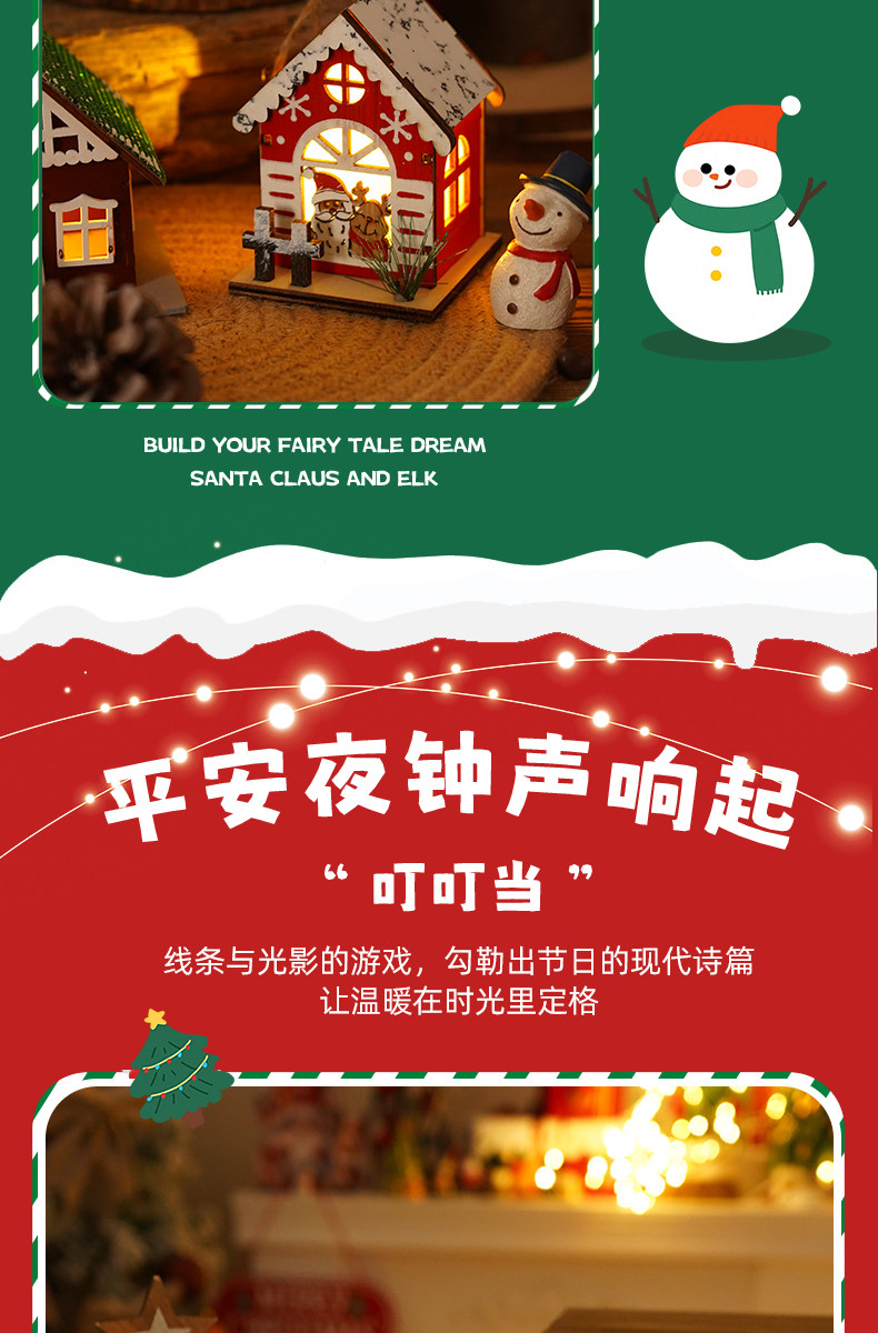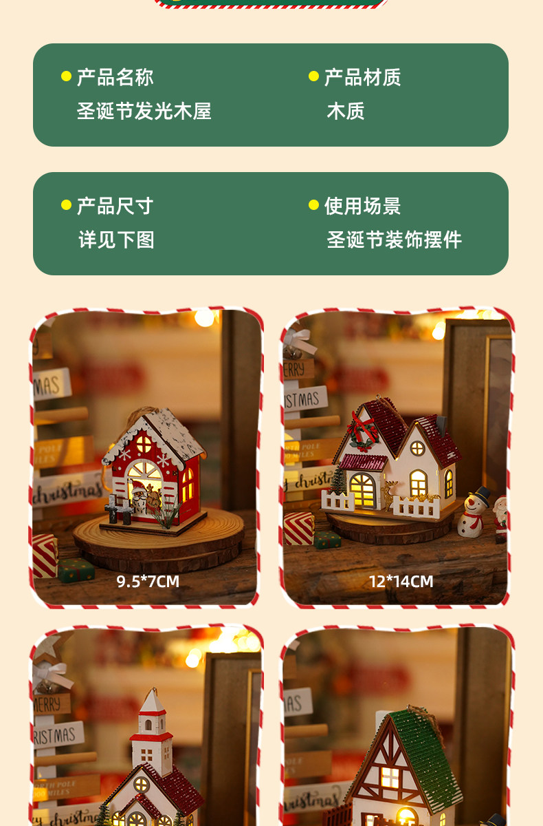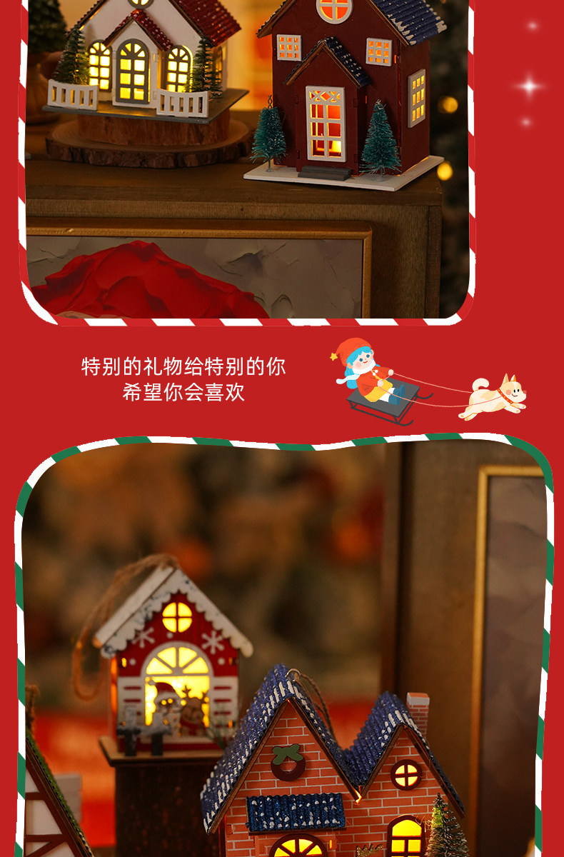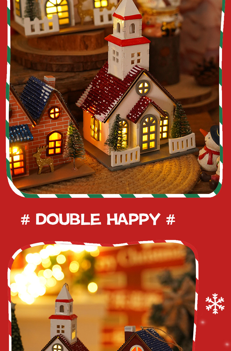 Glowing creative snow Christmas tabletop ornaments DIY Christmas decorations Christmas cabin pendants