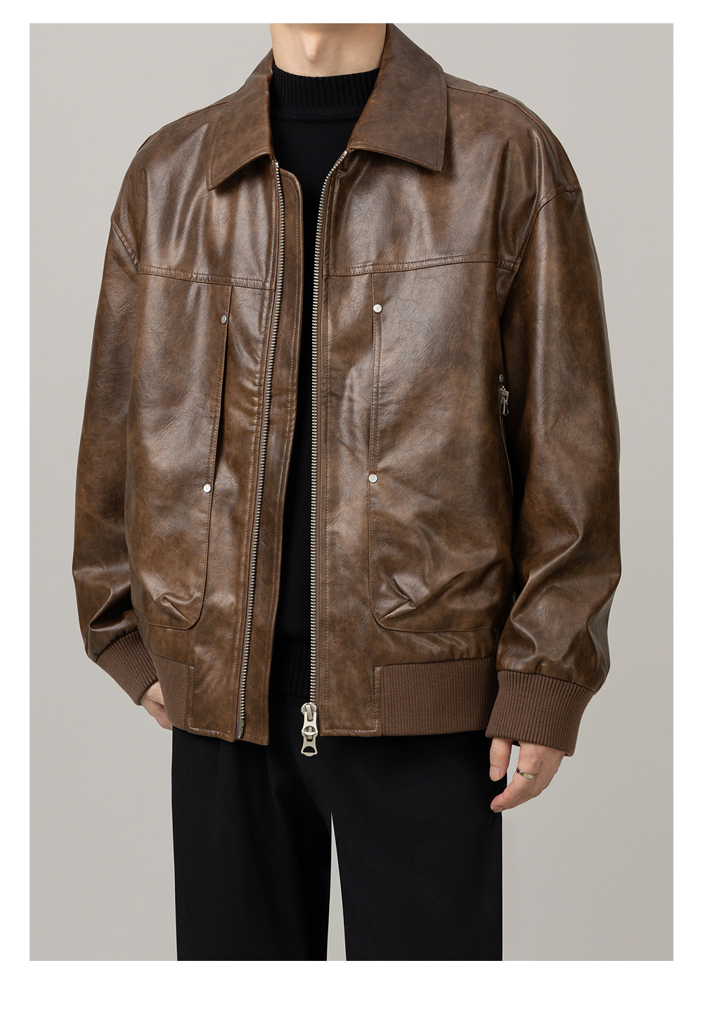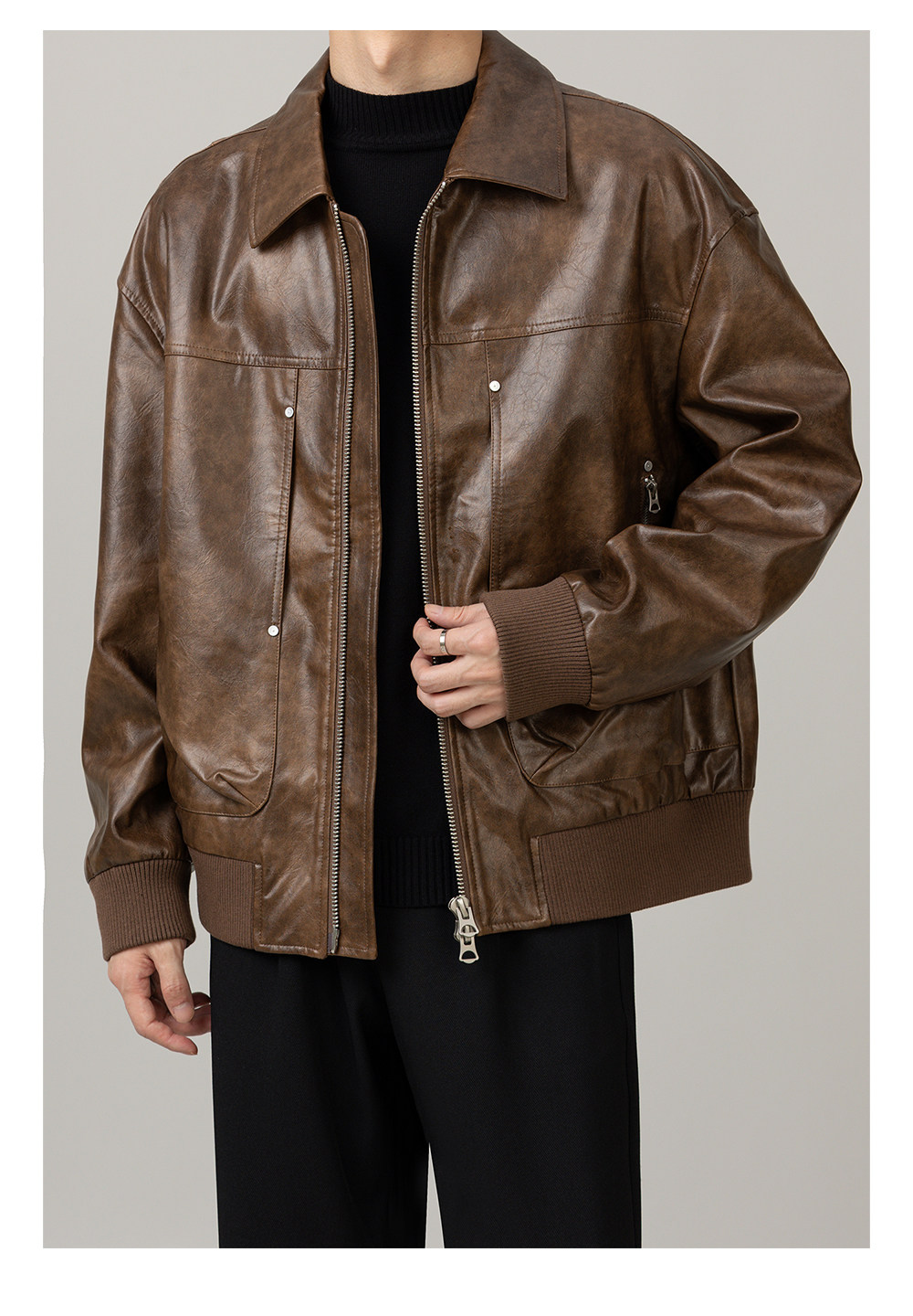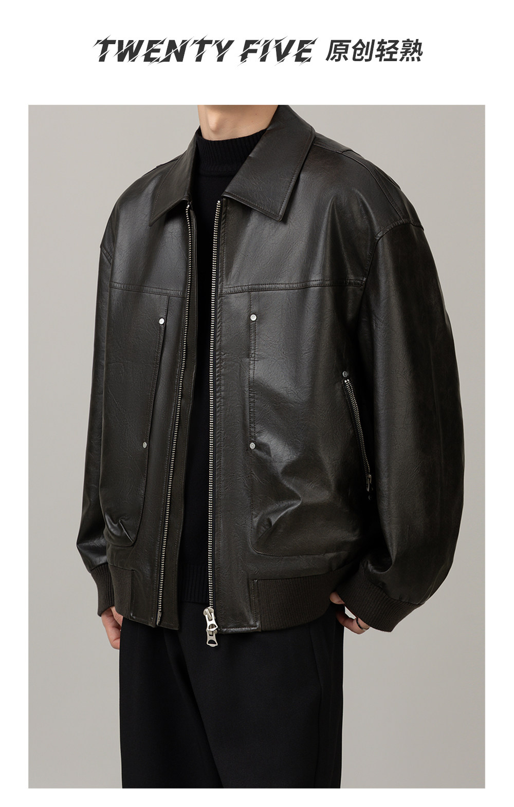 Leather Jacket 2025 Autumn New Design Men's Pu Leather Jacket with Lapel, Biker Style, Cool and Trendy Top Coat for Men