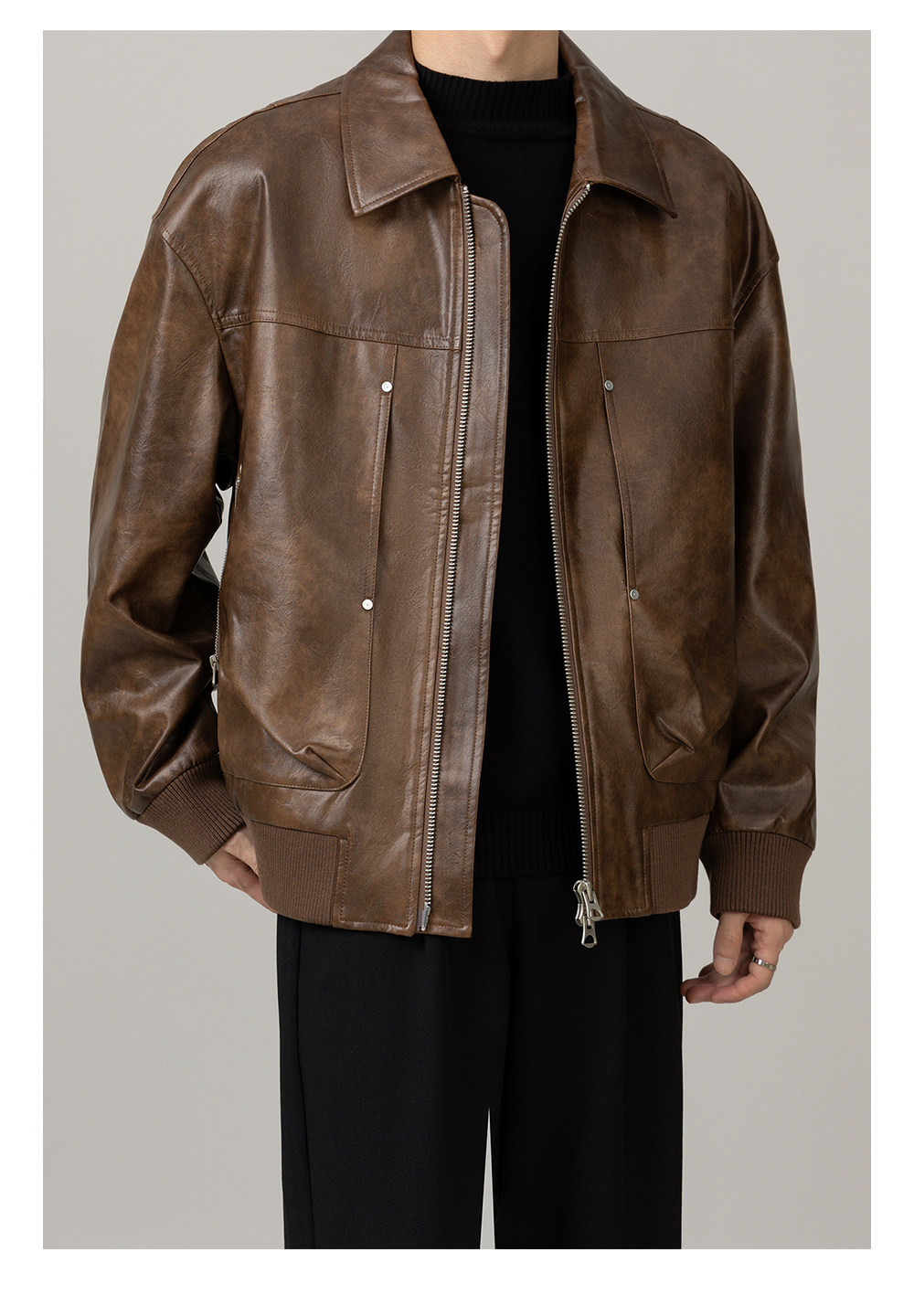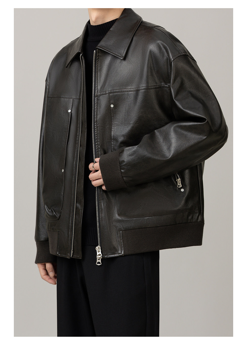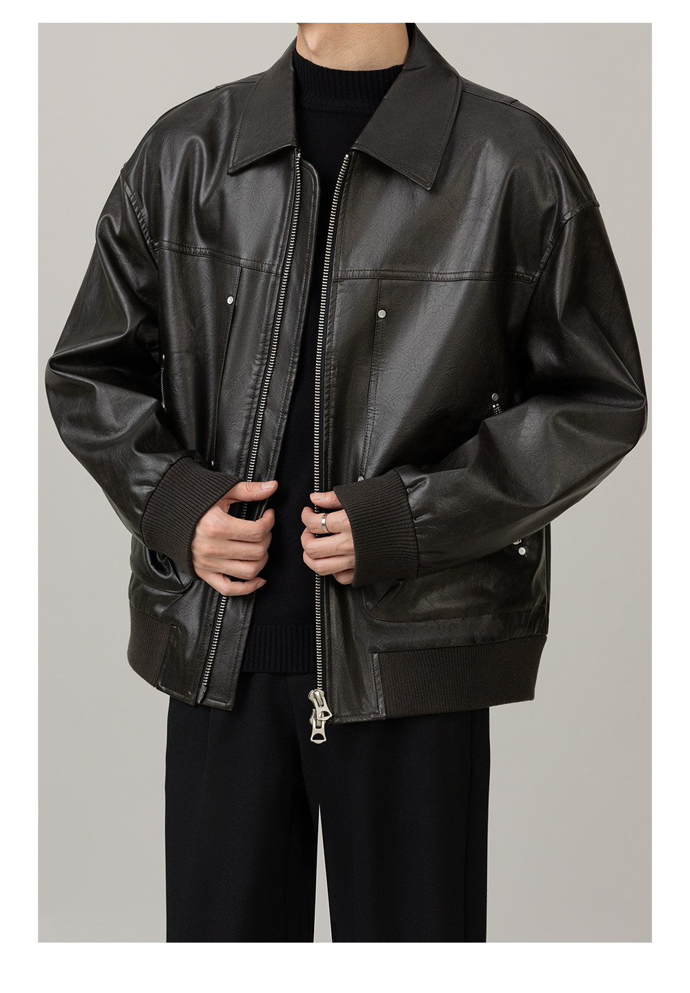 Leather Jacket 2025 Autumn New Design Men's Pu Leather Jacket with Lapel, Biker Style, Cool and Trendy Top Coat for Men