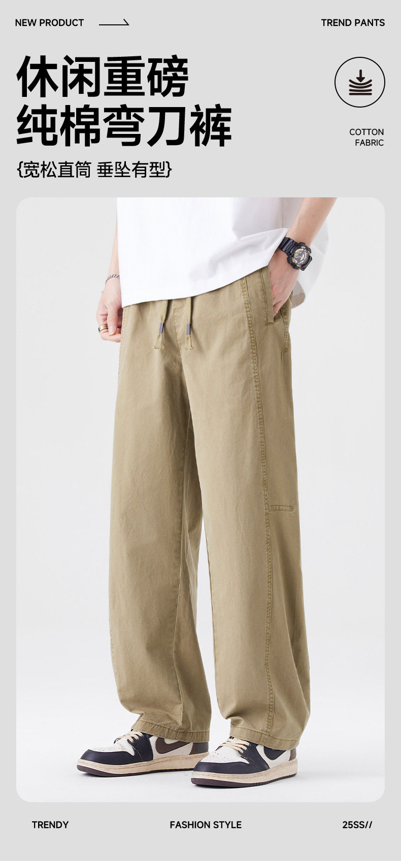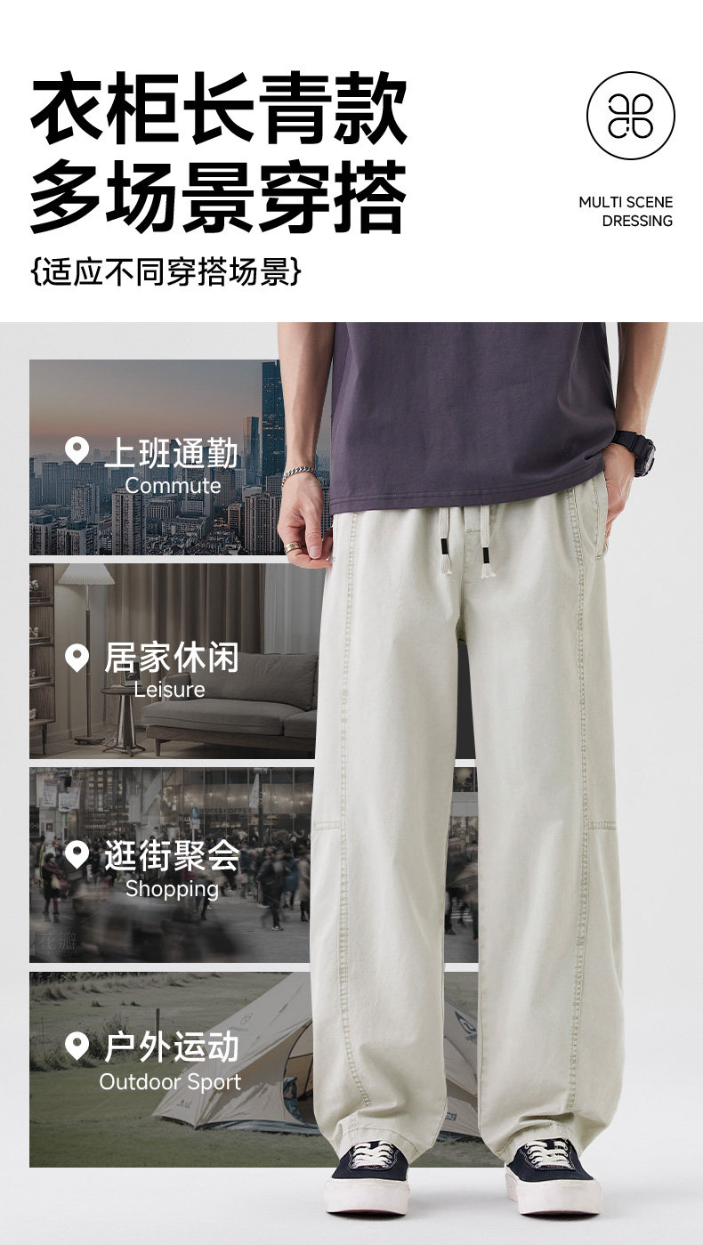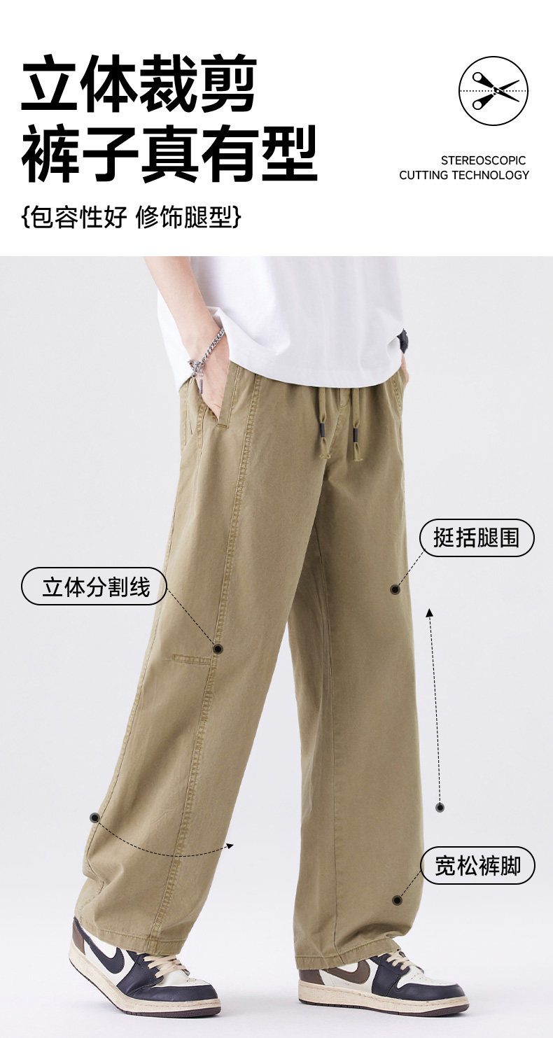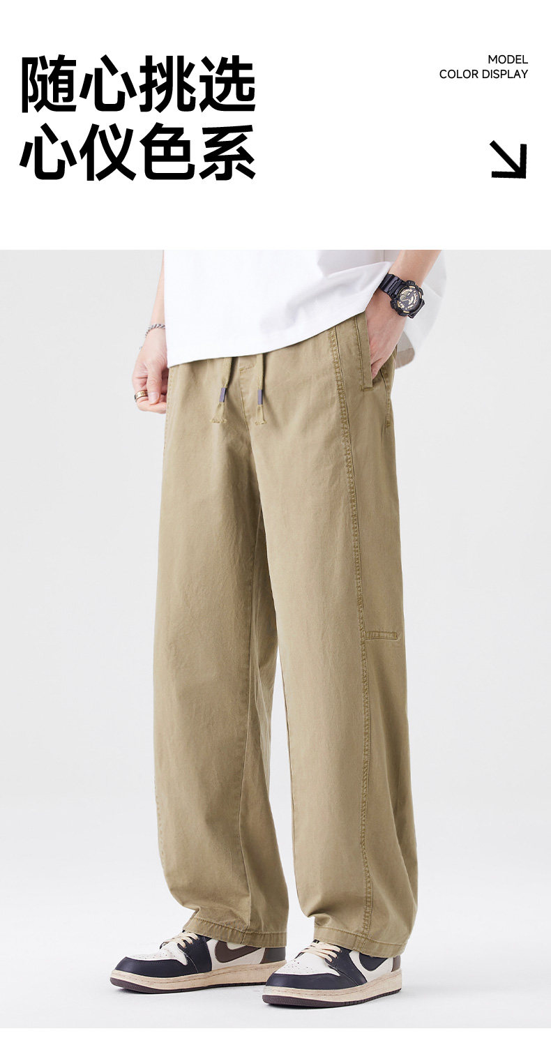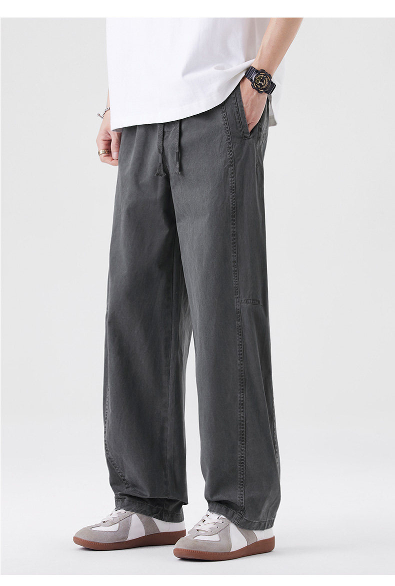 Men's Pants 2025 Summer and Autumn New Style Pure Cotton Straight-Leg Curved Pants Men's Thin Loose Breathable Student Casual Pants