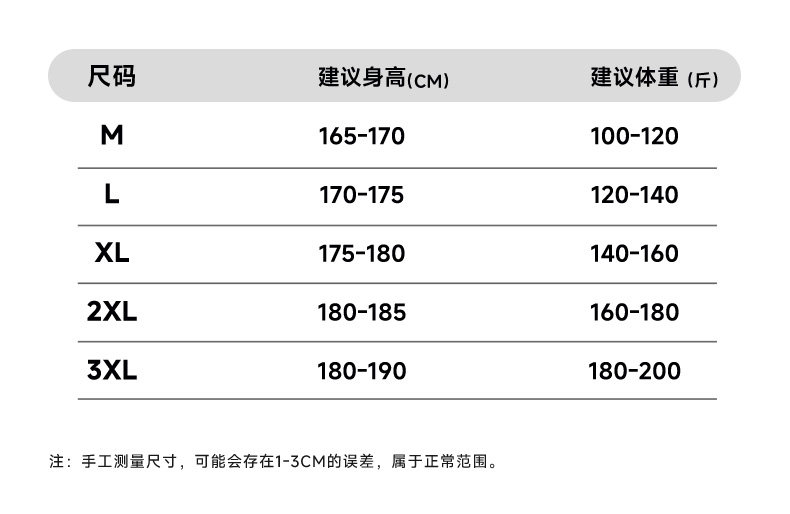 China (cm) 165 / 88-90 170 / 96-98 175 / 108-110 180 / 118-122 185 / 126-130
