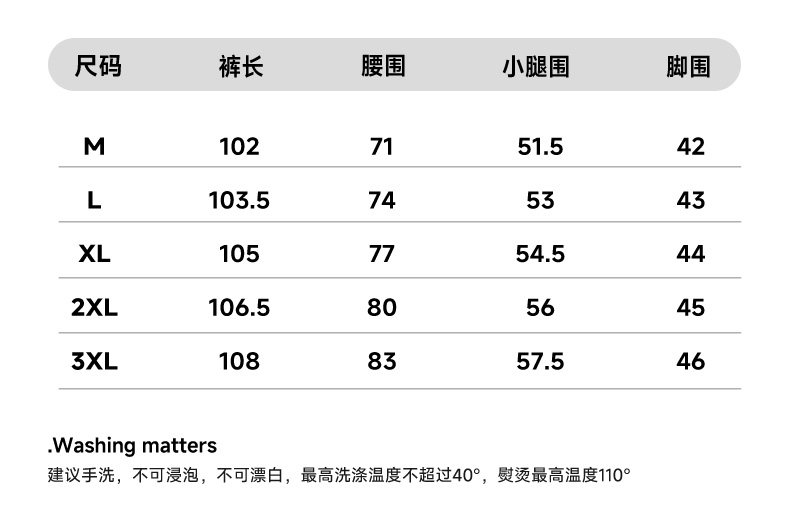 Outseam (cm) 99 cm 101.5 cm 104 cm 106.5 cm 109 cm