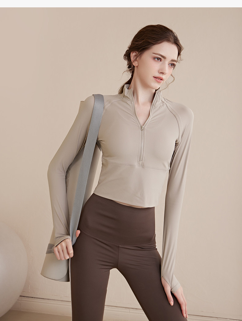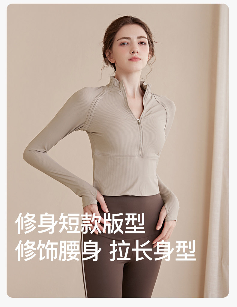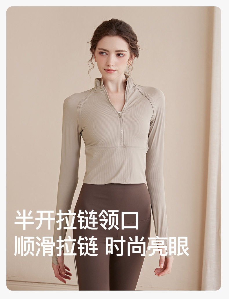 Daddect Half-Zip Yoga Wear Women's Long-Sleeved Sports Top Quick-Drying Tight-Fitting Running Training Autumn and Winter Fitness Wear