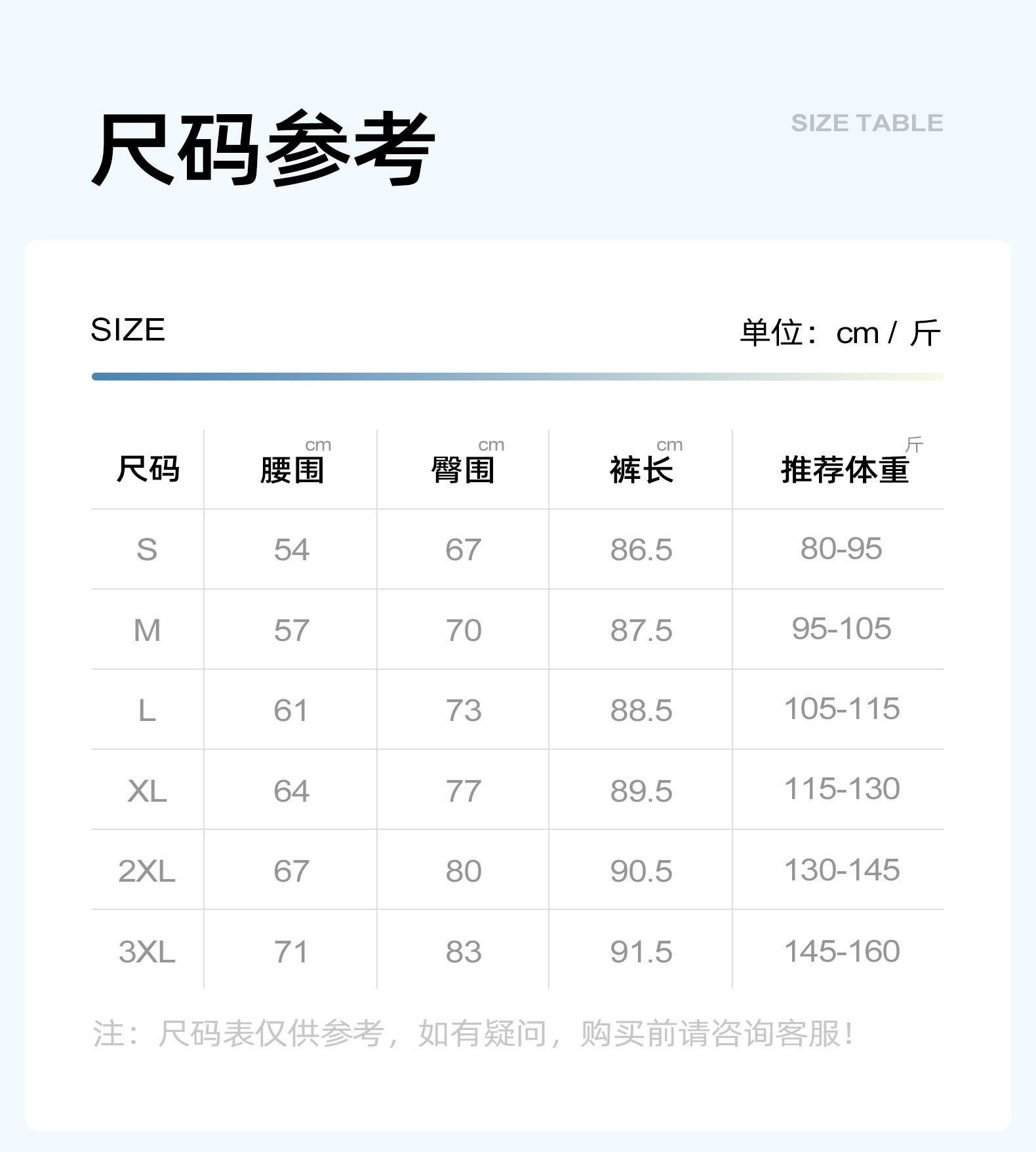 China (cm) 160-165/84-86 165-170 / 88-90 167-172 / 92-96 168-173 / 98-102 170-176 / 106-110