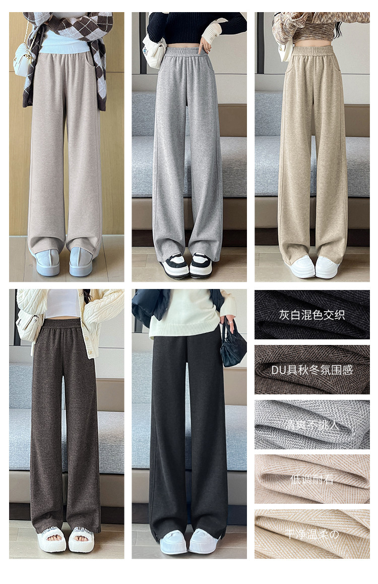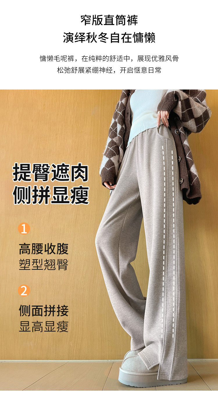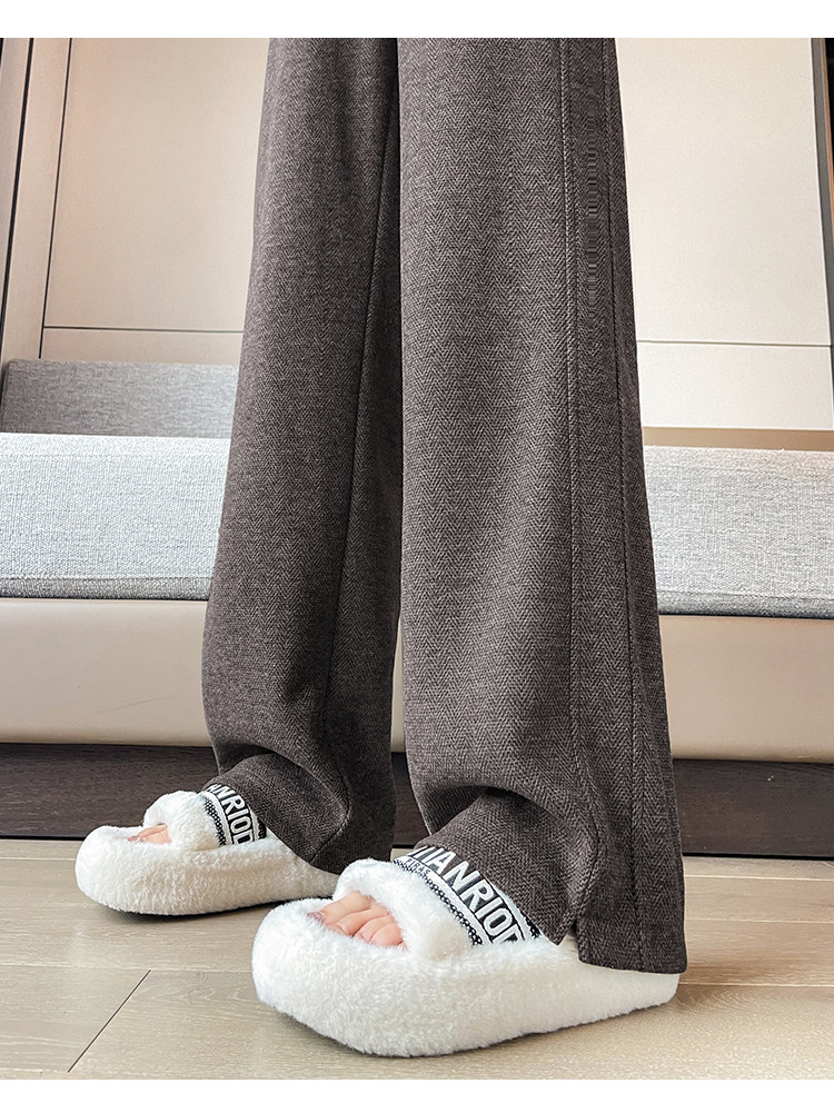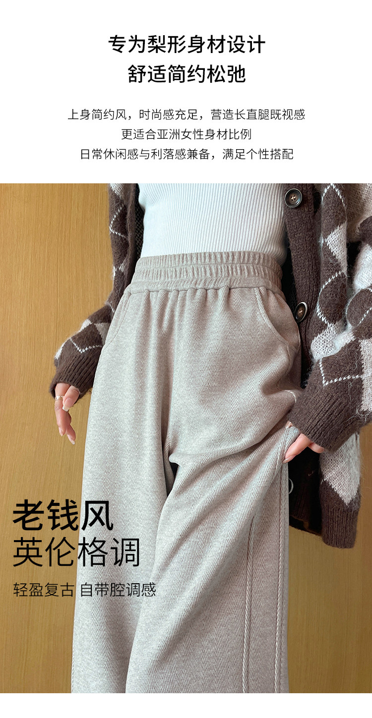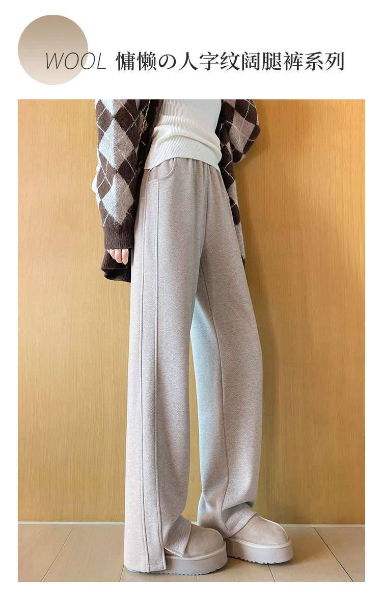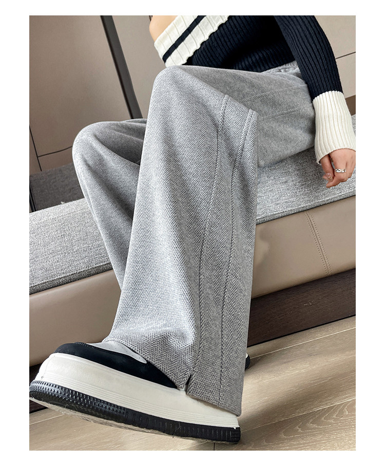 Wool Wide-Leg Pants for Women, Spring and Autumn 2026 New Style, High-Waisted, Drapey, Casual Straight-Leg, Narrow Version, Wool Herringbone Banana Pants