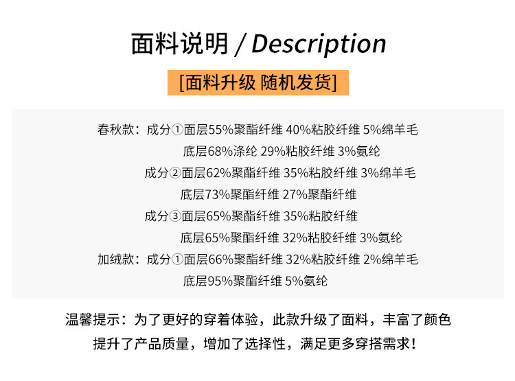 Material Composition Polyester Fiber 62% Viscose Fiber (Viscose Fiber) 35% Wool 3%