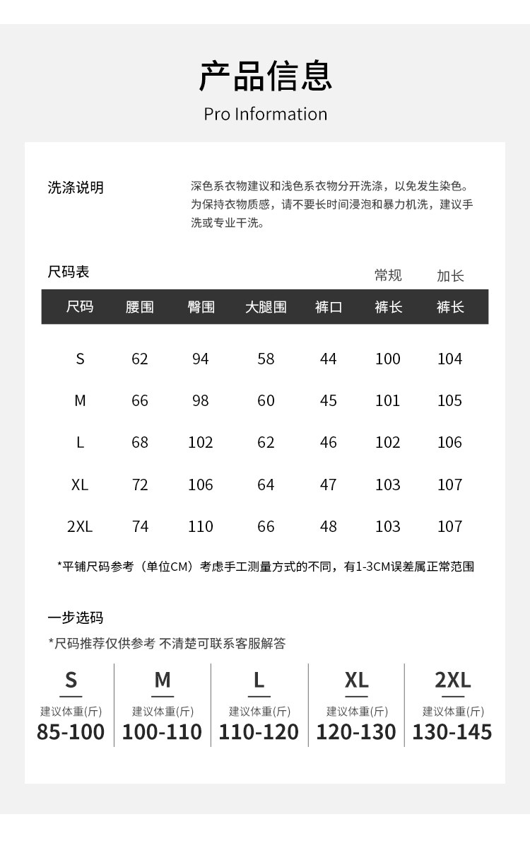 Outseam (cm) 99 cm 101.5 cm 104 cm 106.5 cm 109 cm