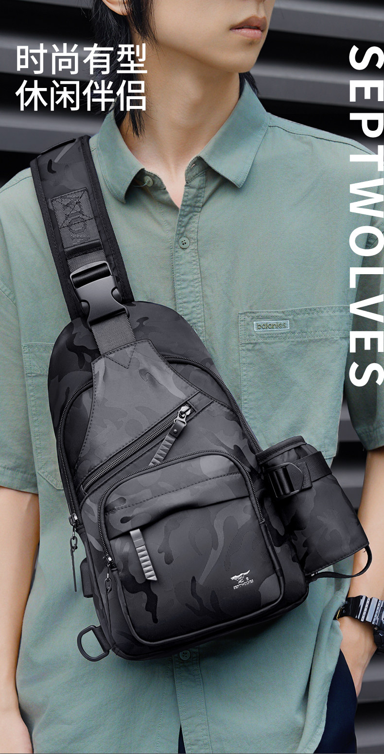 Нагрудная сумка Septwolves, мужская сумка через плечо, новинка 2025 года, популярный стиль, повседневная водонепроницаемая мужская сумка большой вместимости из ткани Оксфорд