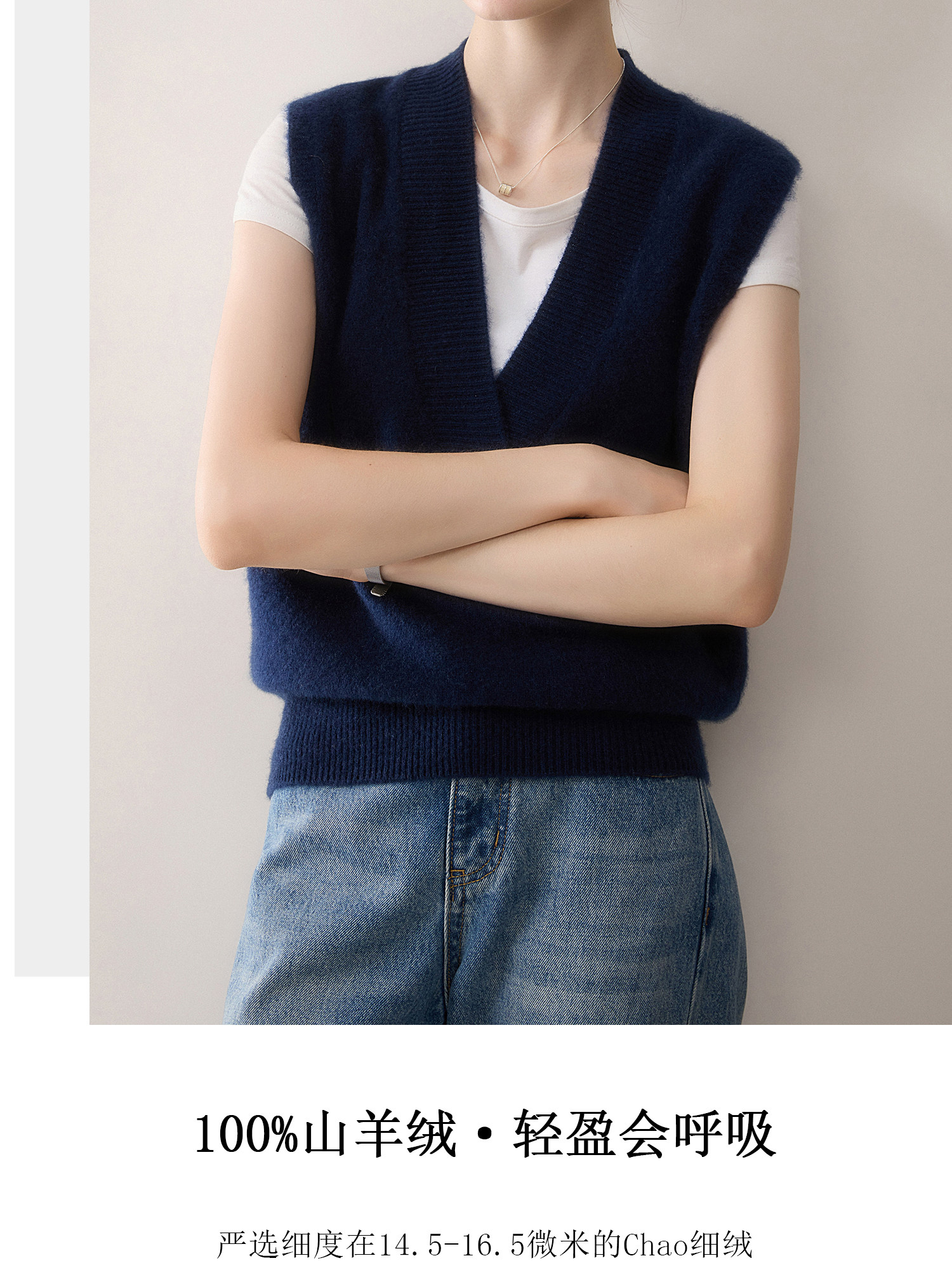 Doppelsträngige, verdickte Weste aus 100 reinem Kaschmir für Damen-Oberbekleidung, Winter-Oberteil mit V-Ausschnitt, ärmelloser Pullover, lockere Strickweste
