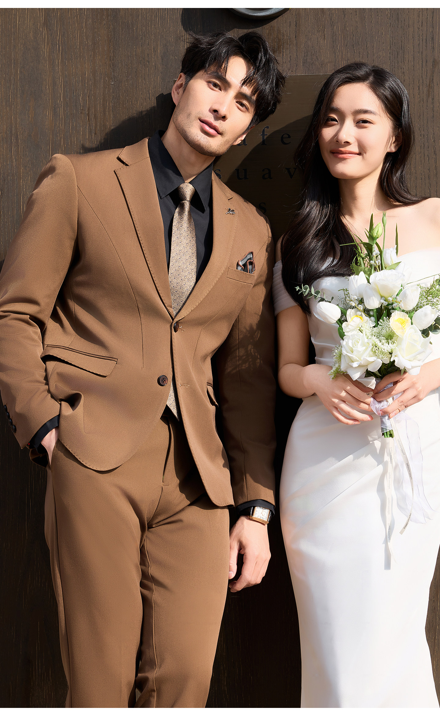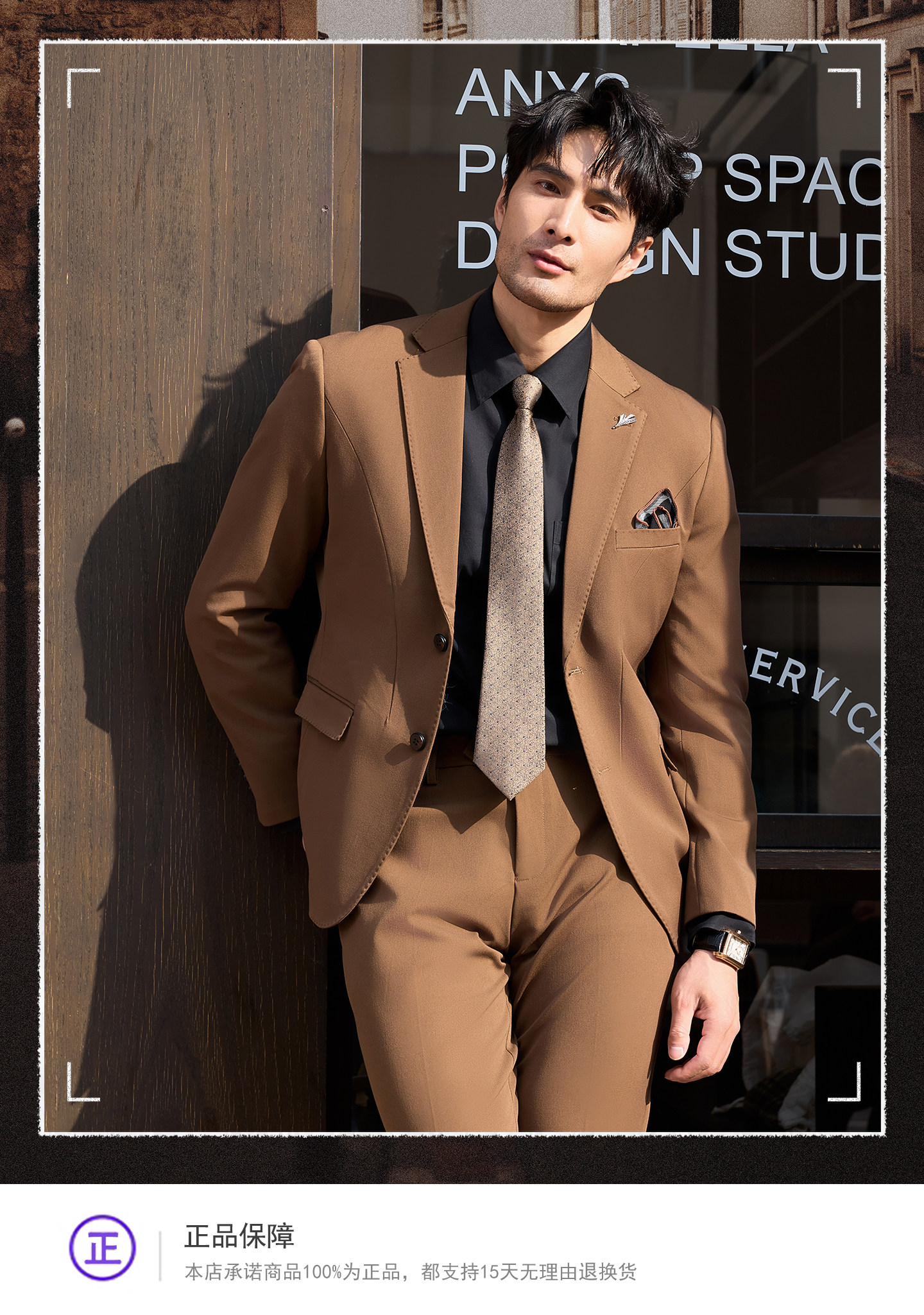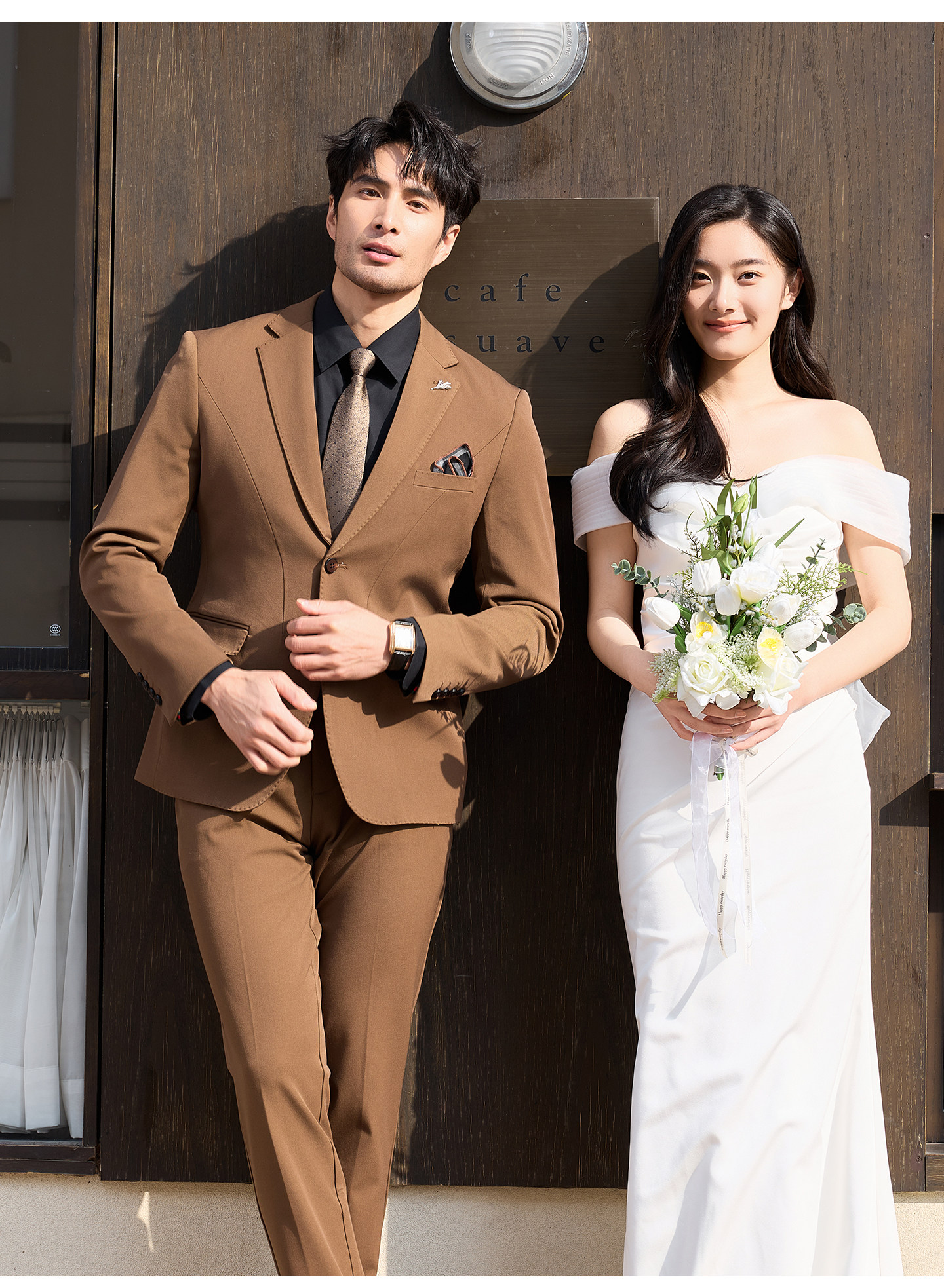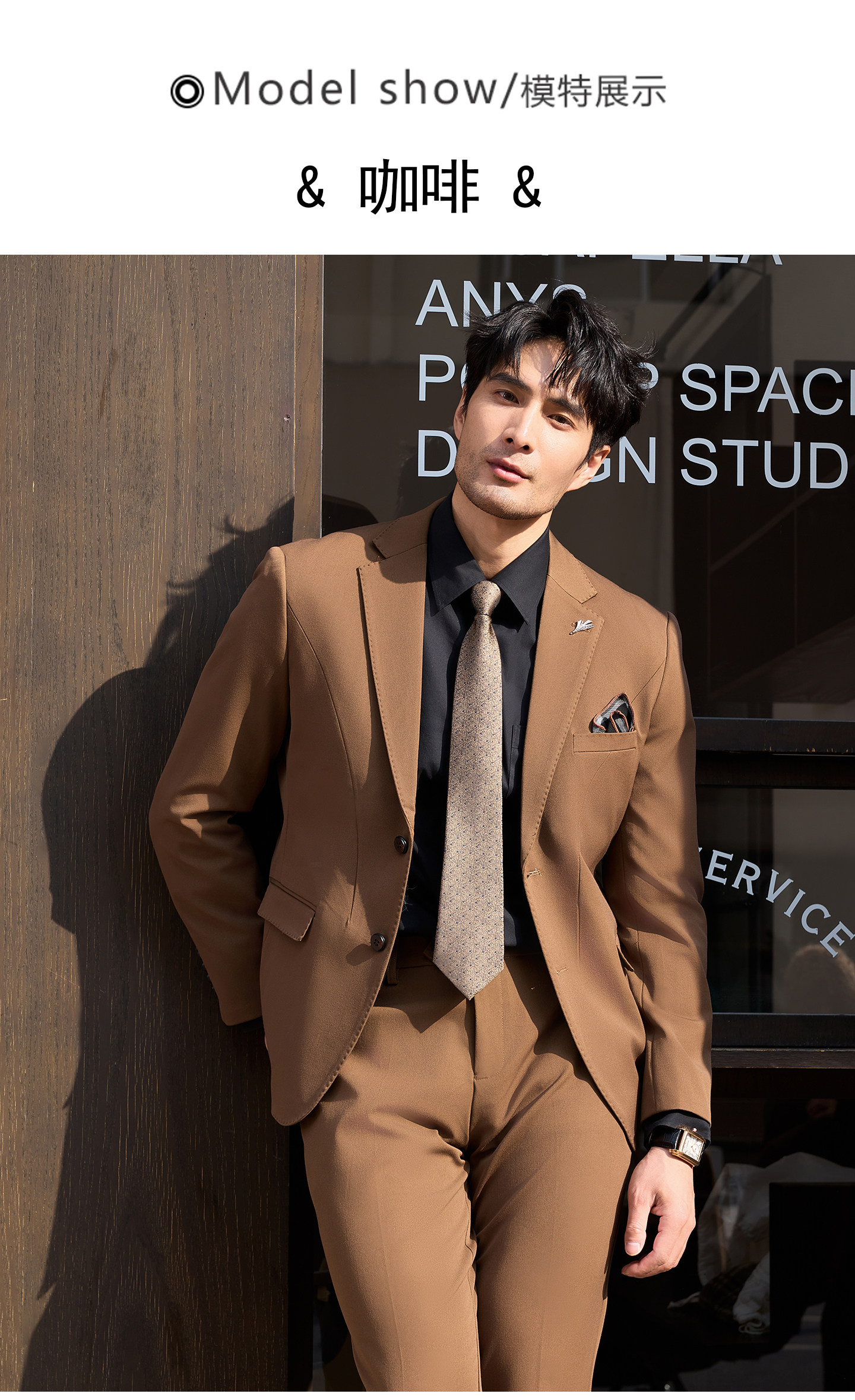 Men's Suit Set, Coffee Color, Groom's Wedding Attire, Business Casual Formal Wear, High-End Banquet Host Suit