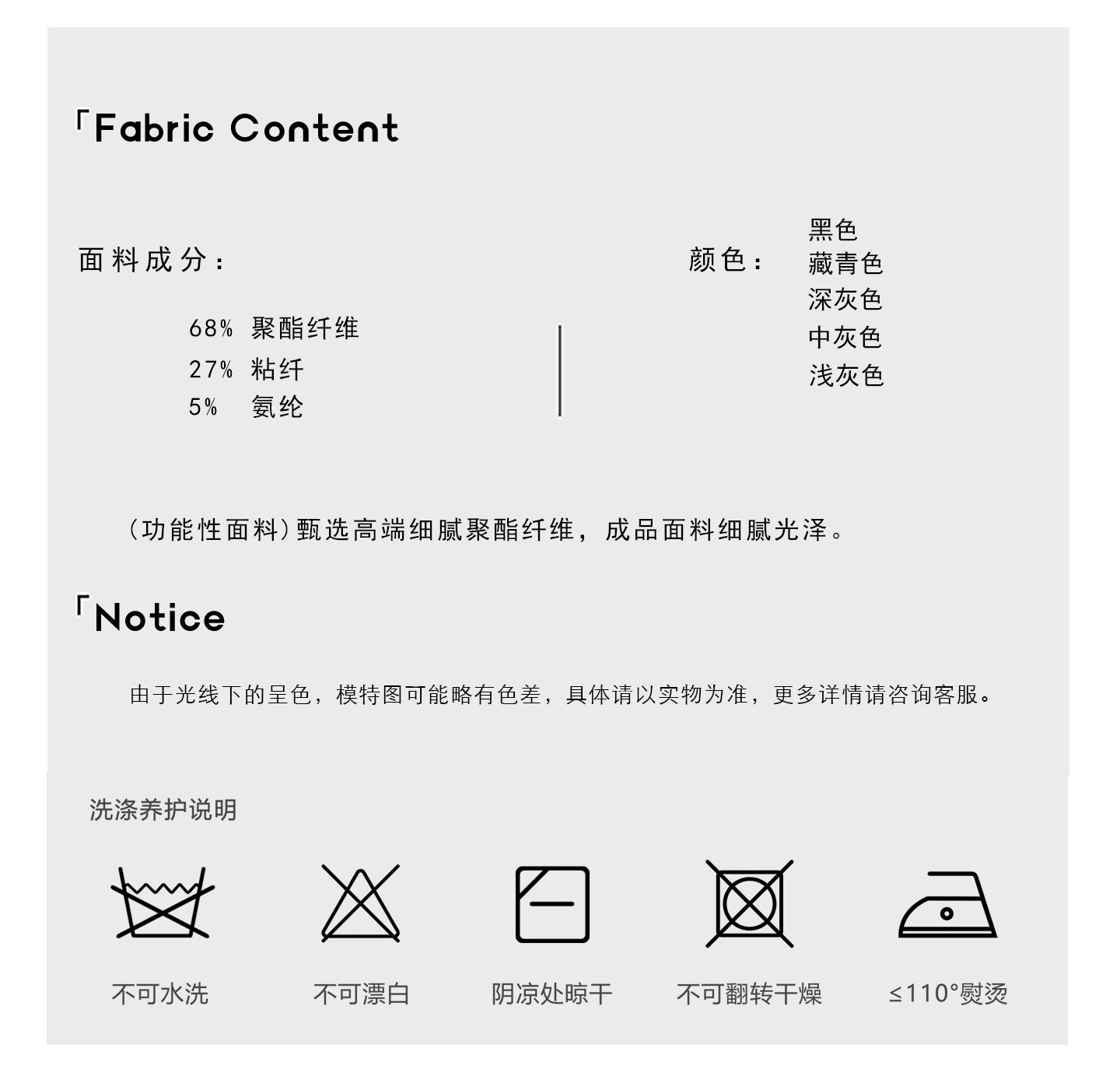 Material Composition Polyester Fiber 68% Viscose Fiber (Viscose Fiber) 27% Polyurethane Elastic Fiber (Spandex) 5%