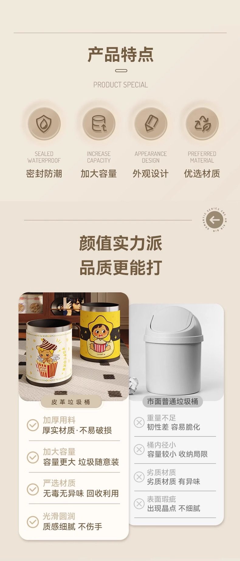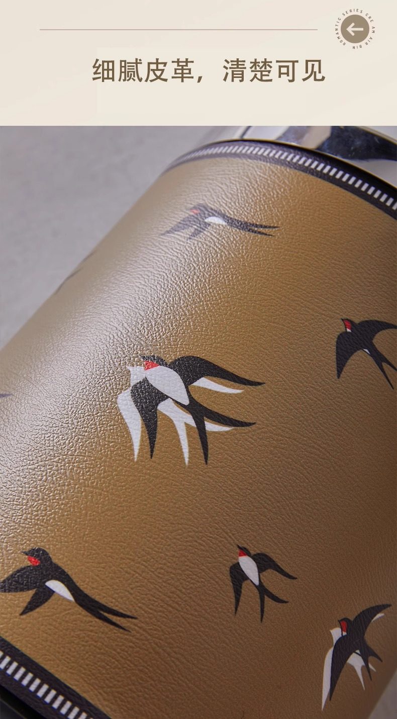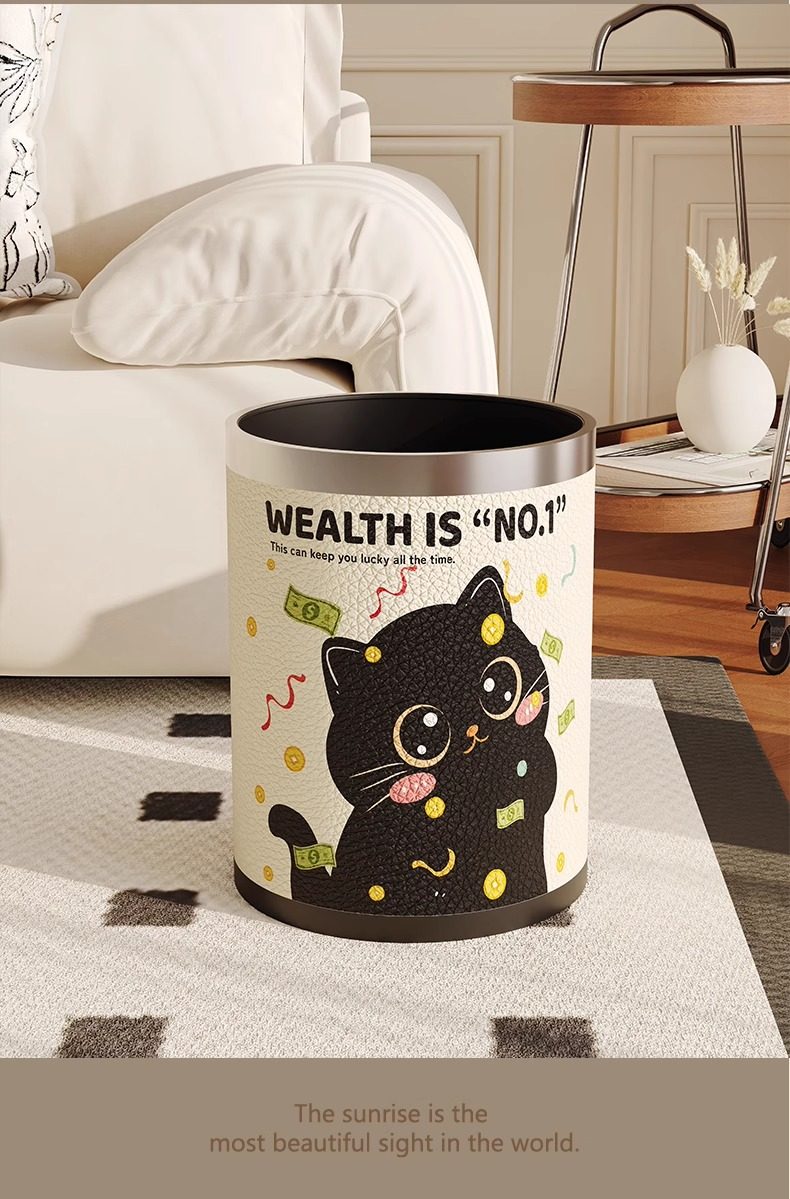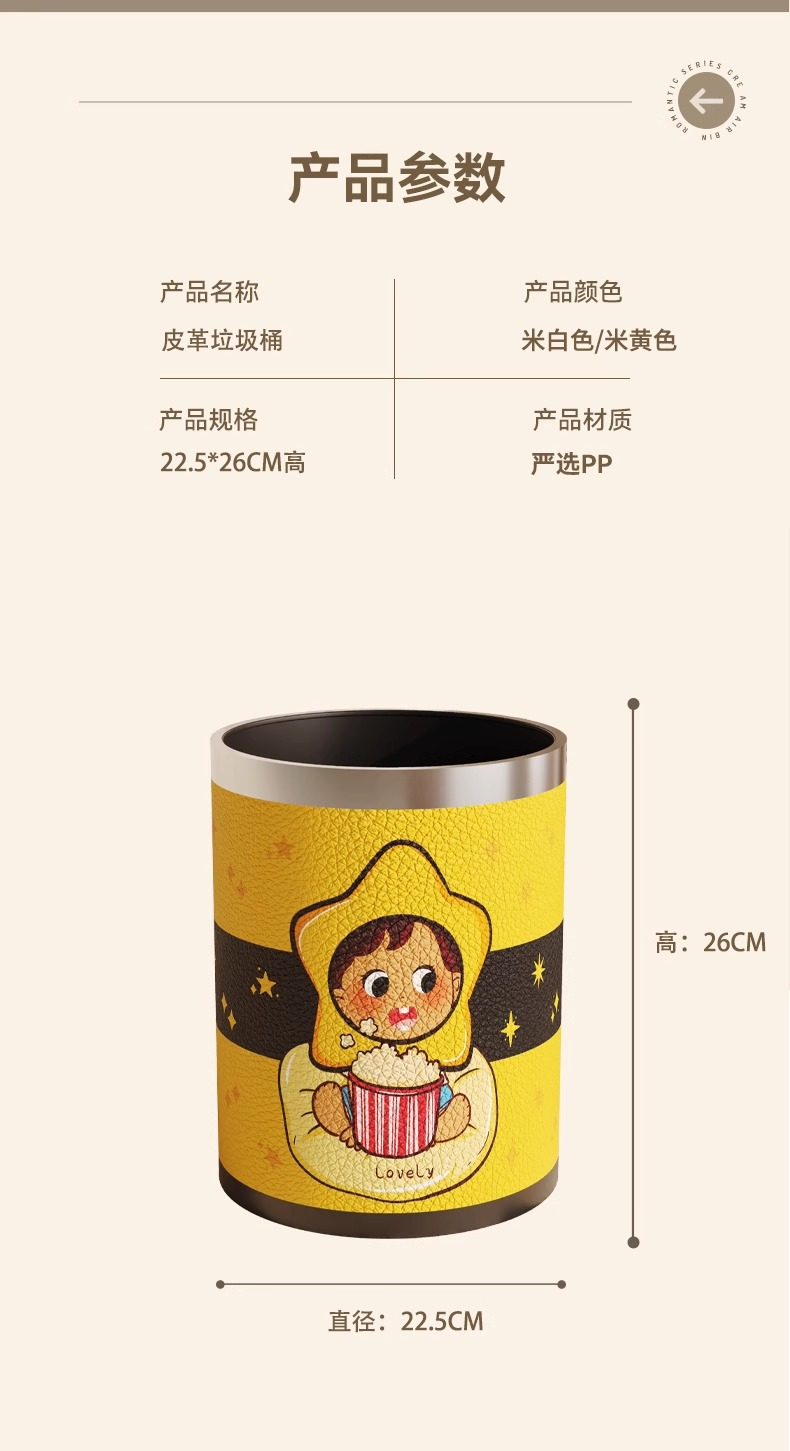 Cartoon leather trash can for home living room, light luxury, high-end sanitary bucket, kitchen, good-looking, cute, large-capacity paper basket