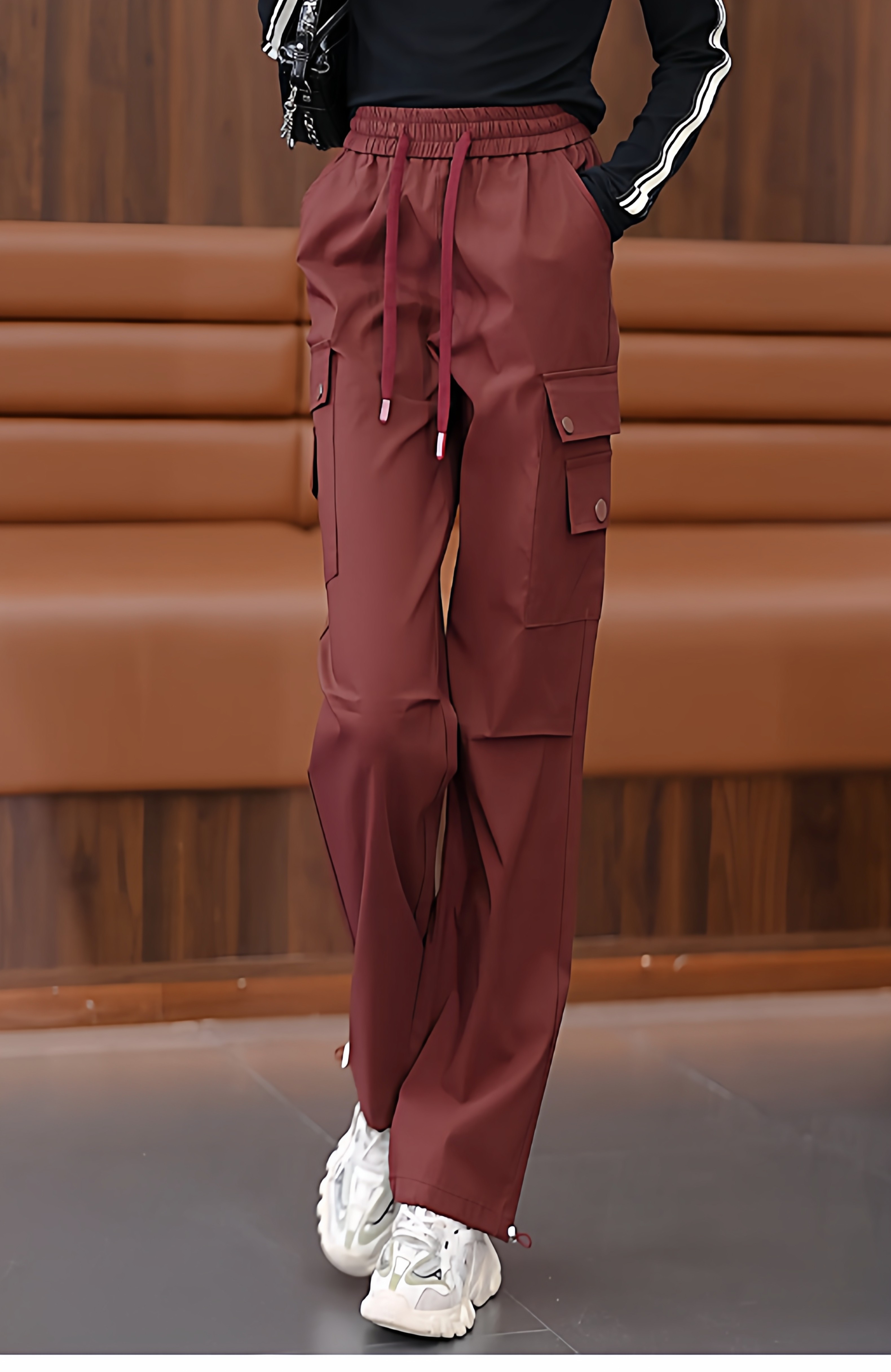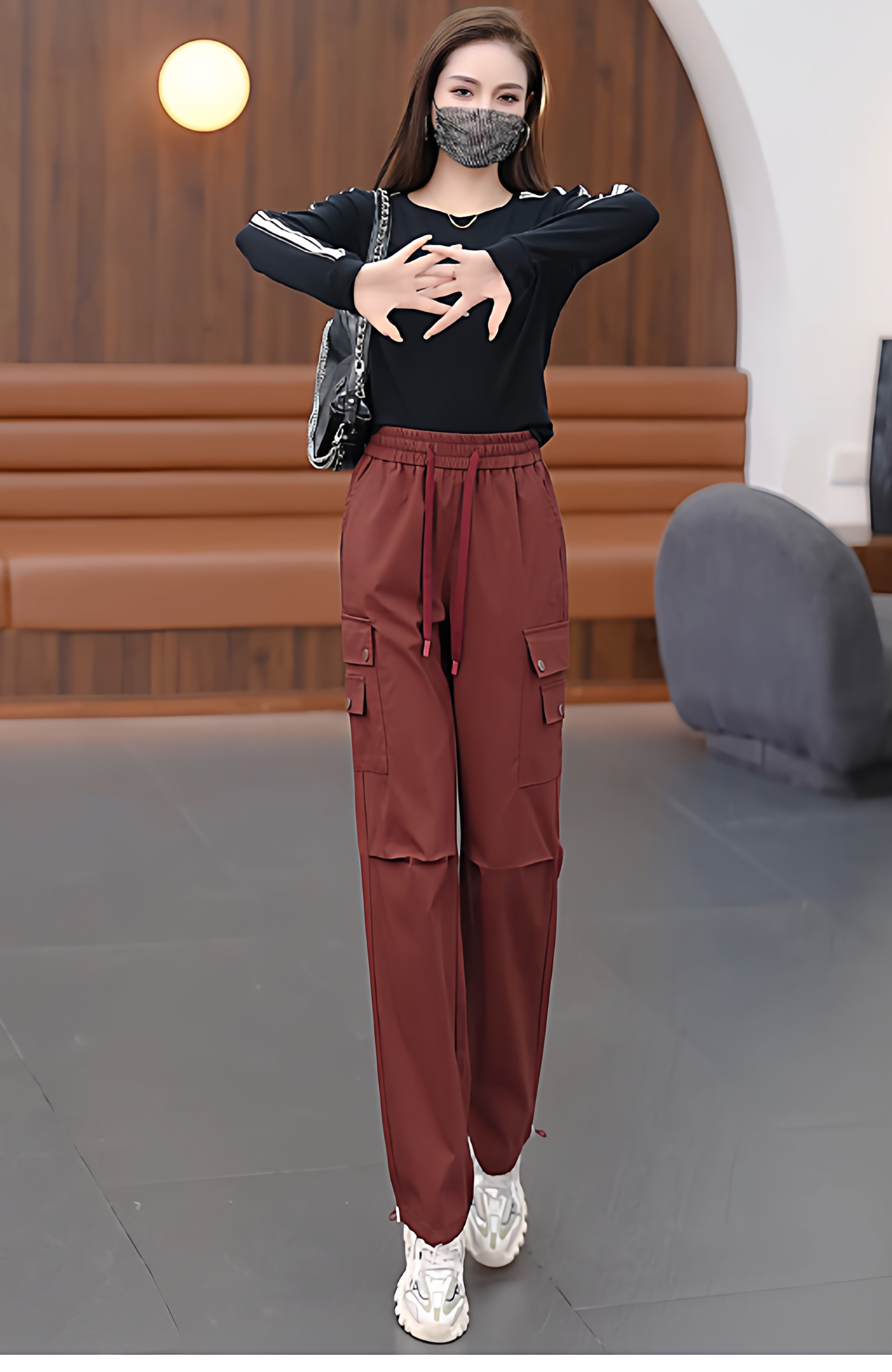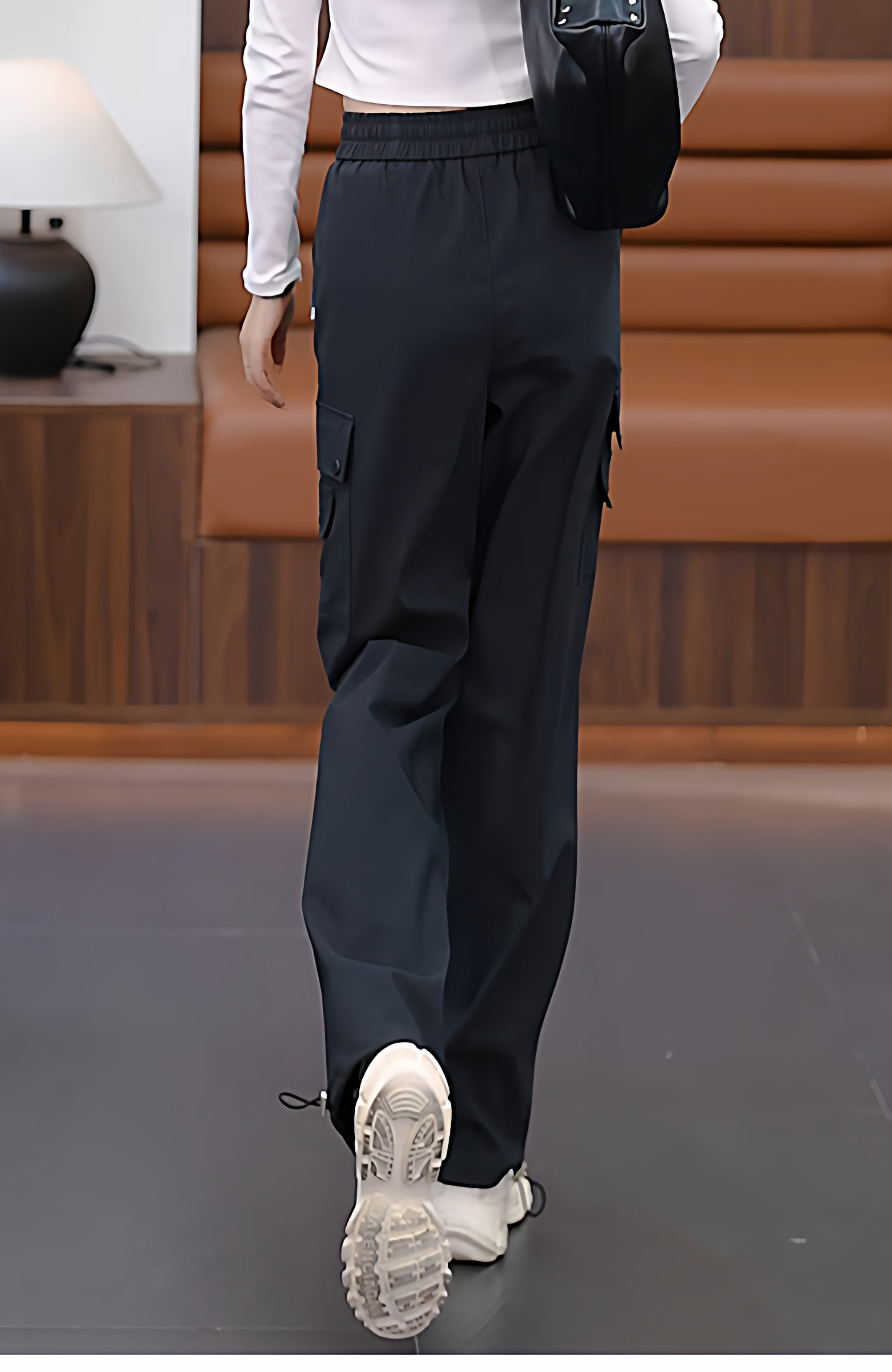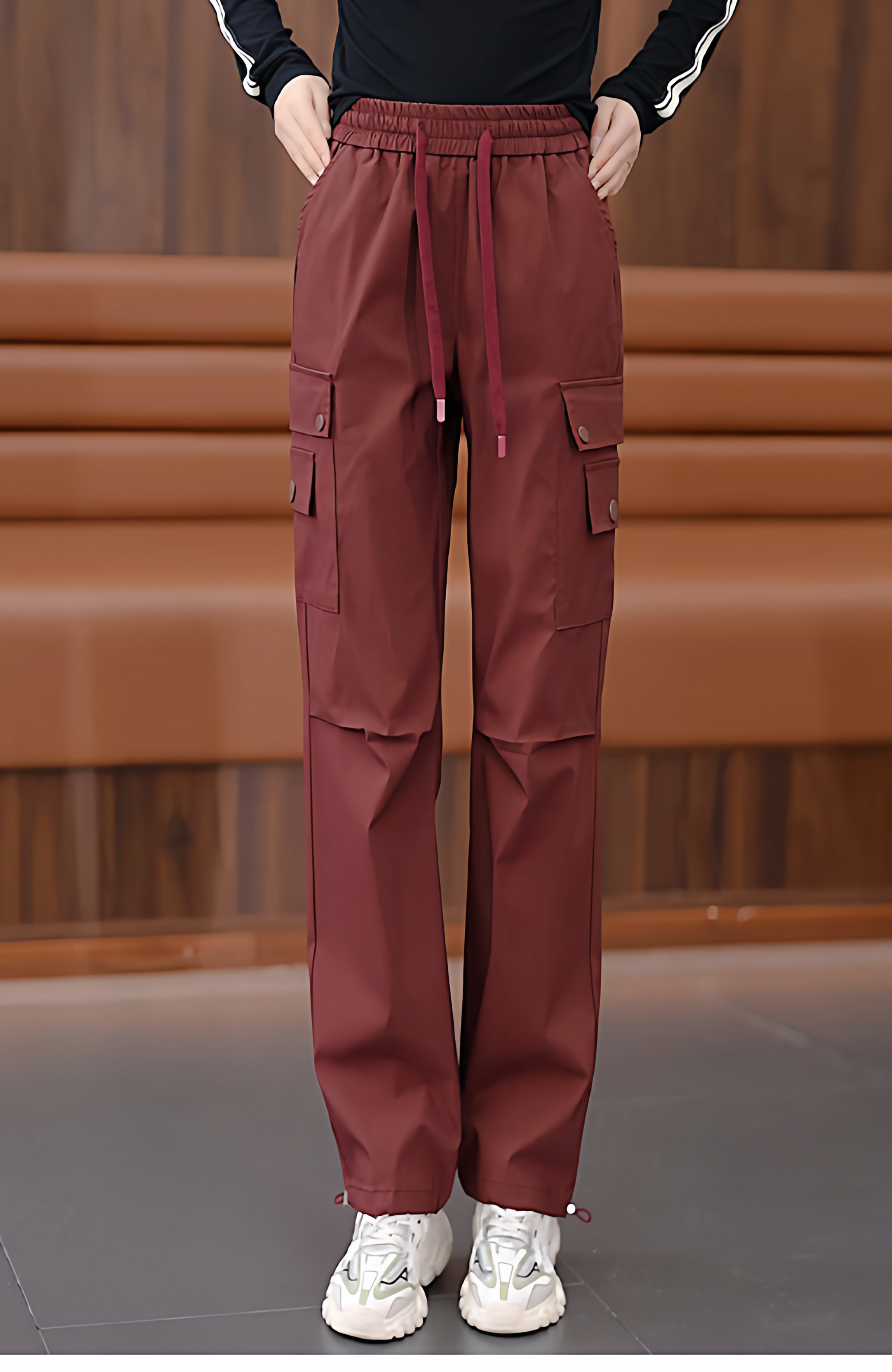 Autumn and Winter Fleece-Lined Thickened American-Style Cargo Pants for Women, Slimming Jogger Straight-Leg Pants, 2025 High-Waisted Loose Hiking Wide-Leg Pants