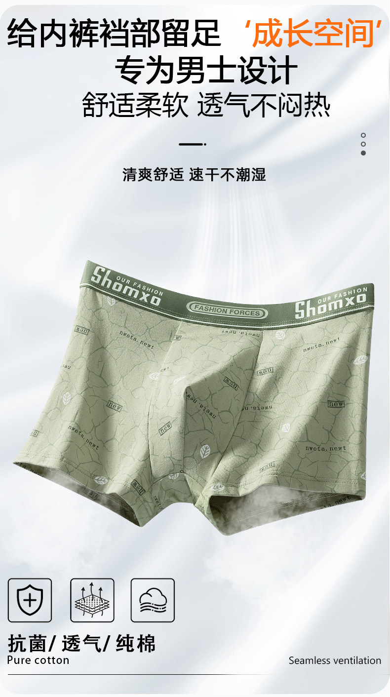 Men's Pure Cotton Underwear 10A Antibacterial Men's Boxer Shorts Modal Breathable Large Size All-Cotton Boxer Briefs