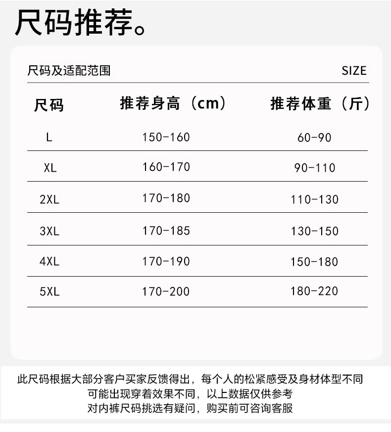 Size L [Recommendation 30-45kg],XL [Recommended 45-55kg],2XL [Recommended 55-65kg],3XL [Recommended 65-75kg],4XL [Recommended 75-90kg],5XL [Recommended 90-110kg],1.6m Contact Customer Service for Size Consultation Below