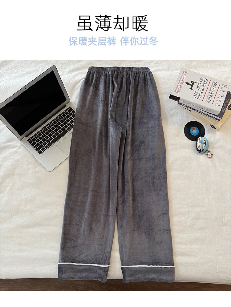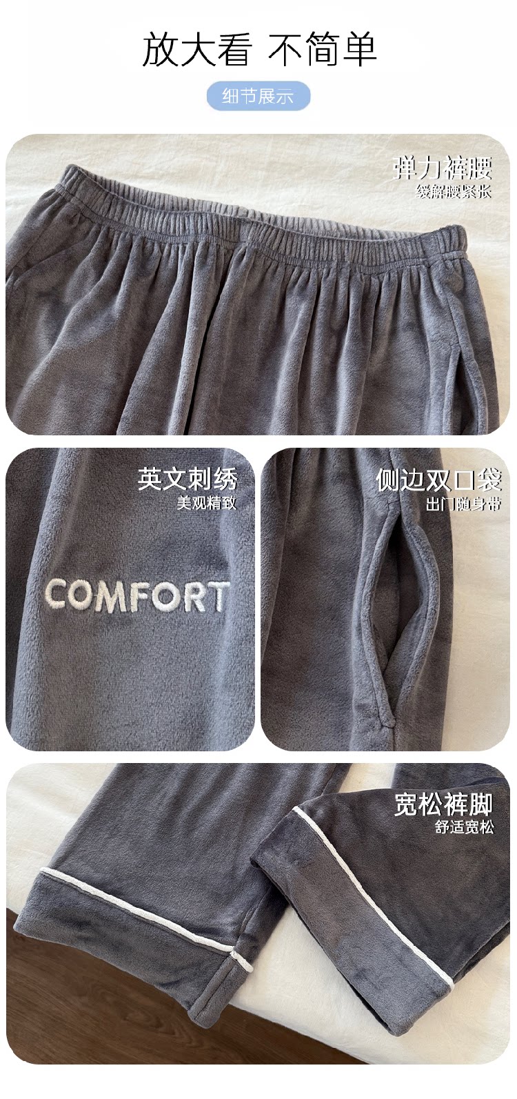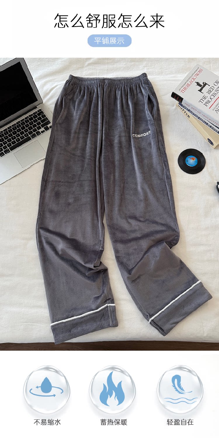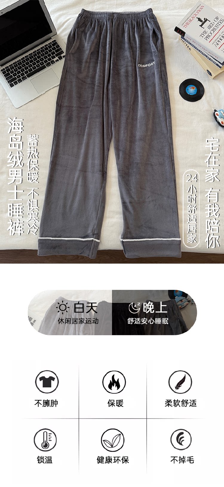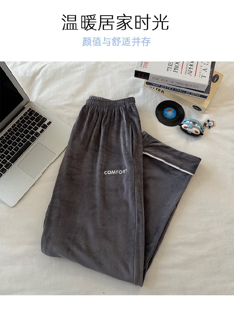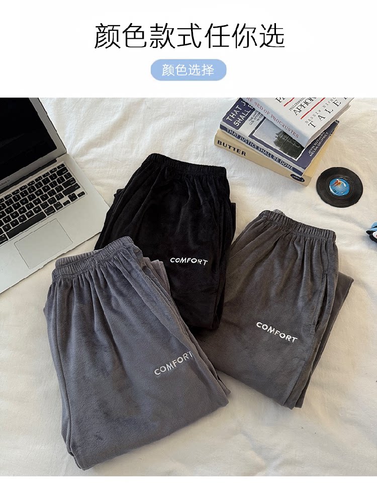 Island Velvet Pajama Pants Men's Casual Letter Straight Pants Men's Velvet Thickened Home Pants Flannel Pocket Pants