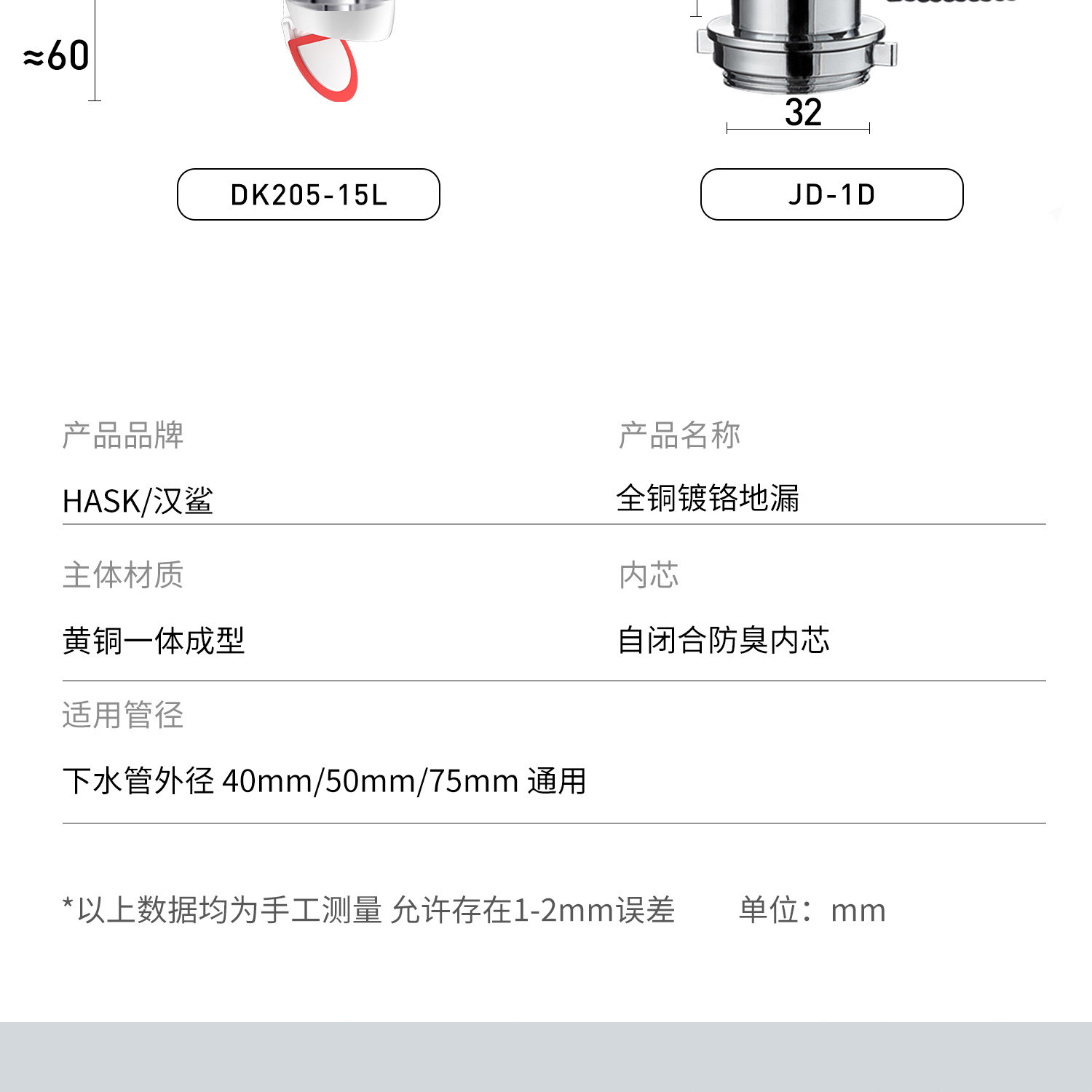 [Exclusive to Sheep Sheep Brand] Hansha All-Copper Anti-Odor Floor Drain for Bathroom, Shower Room, Washing Machine, Chrome-Plated Floor Drain