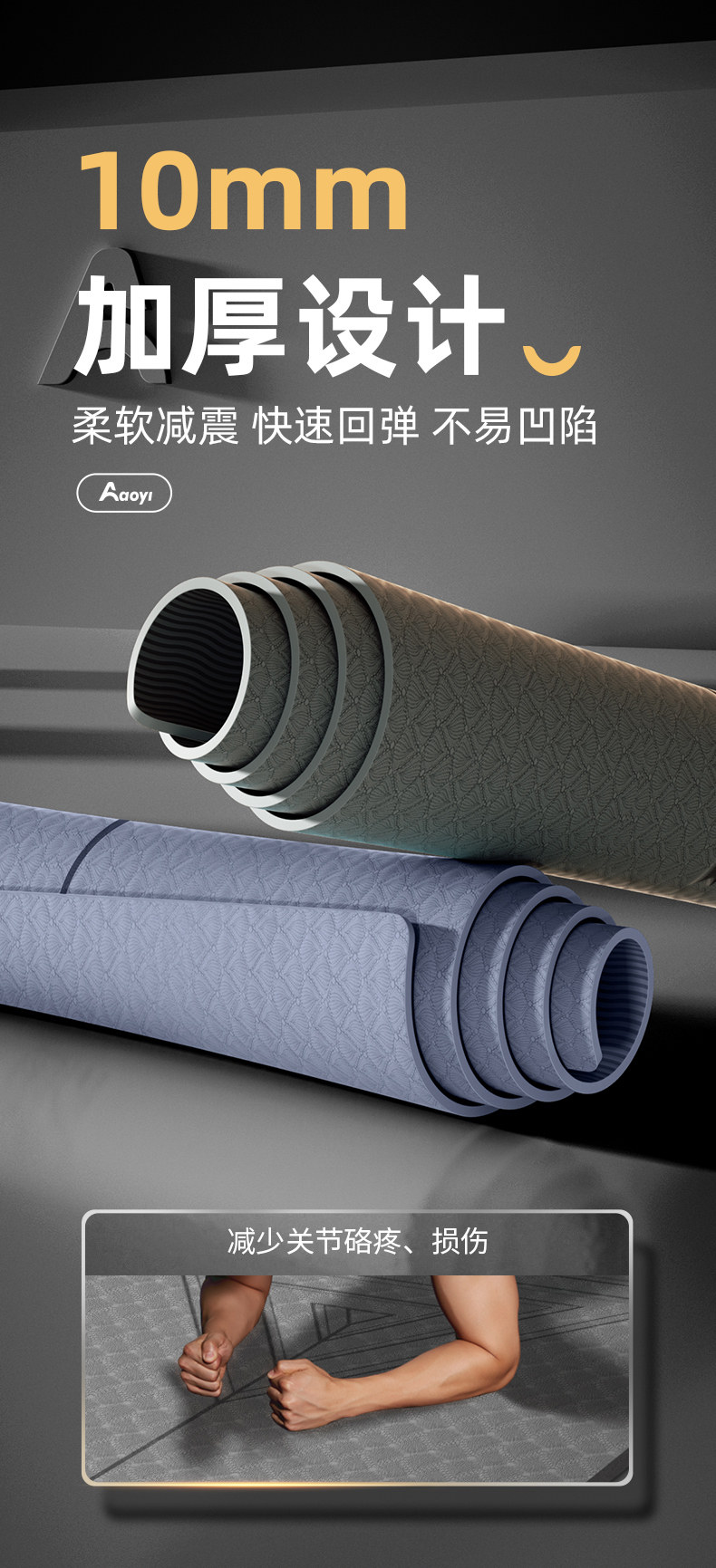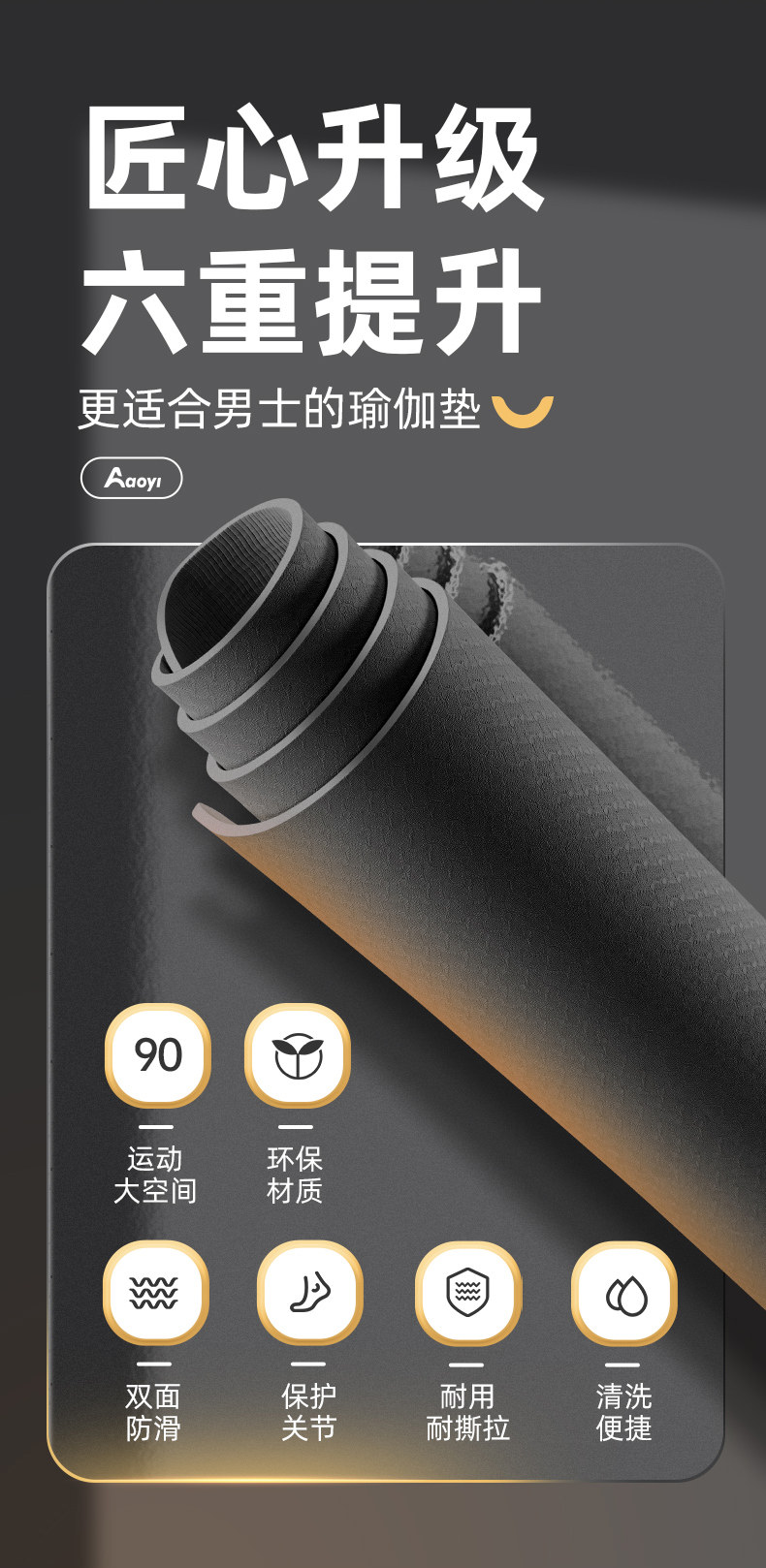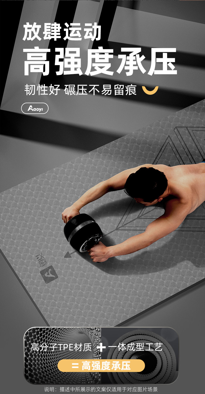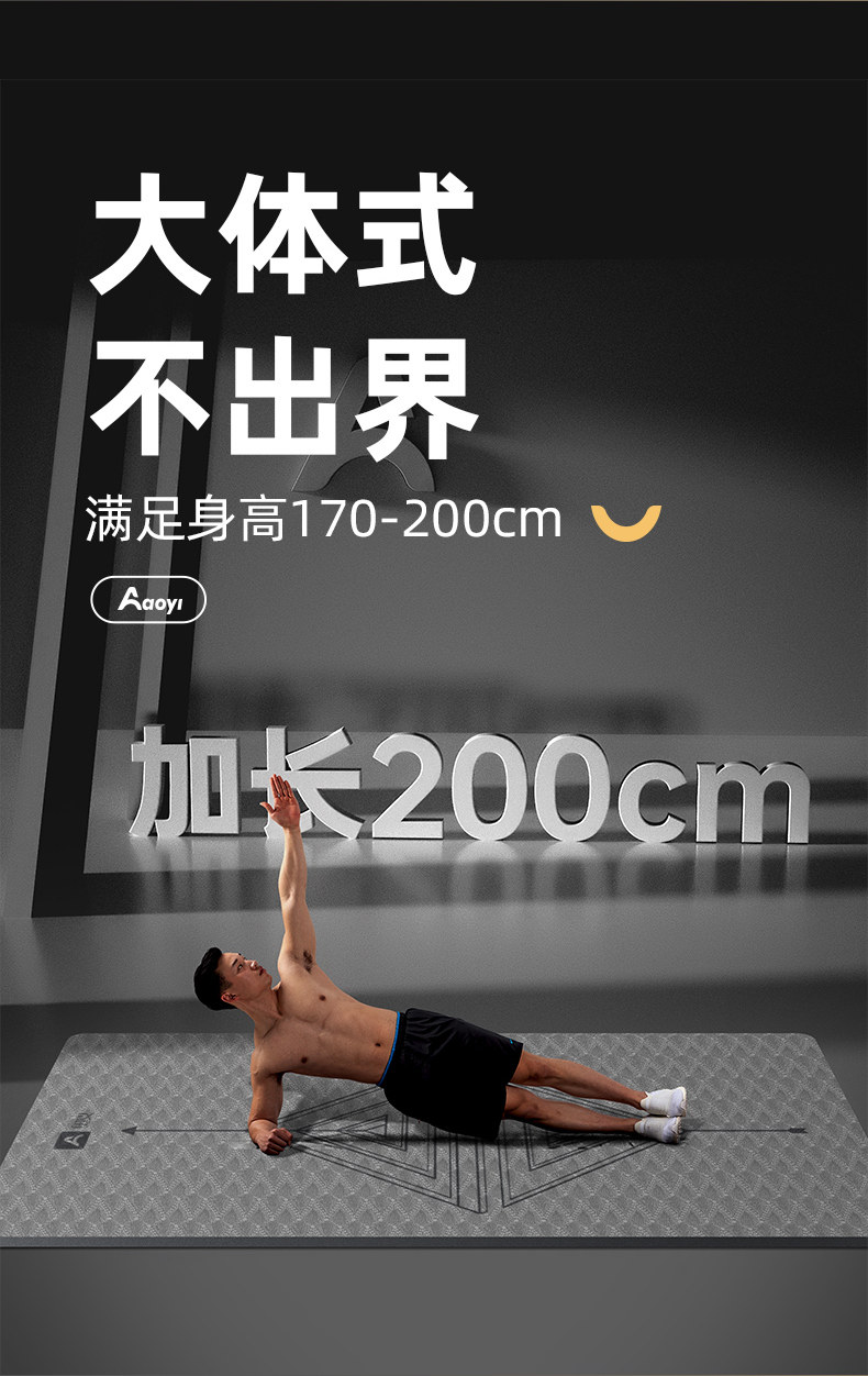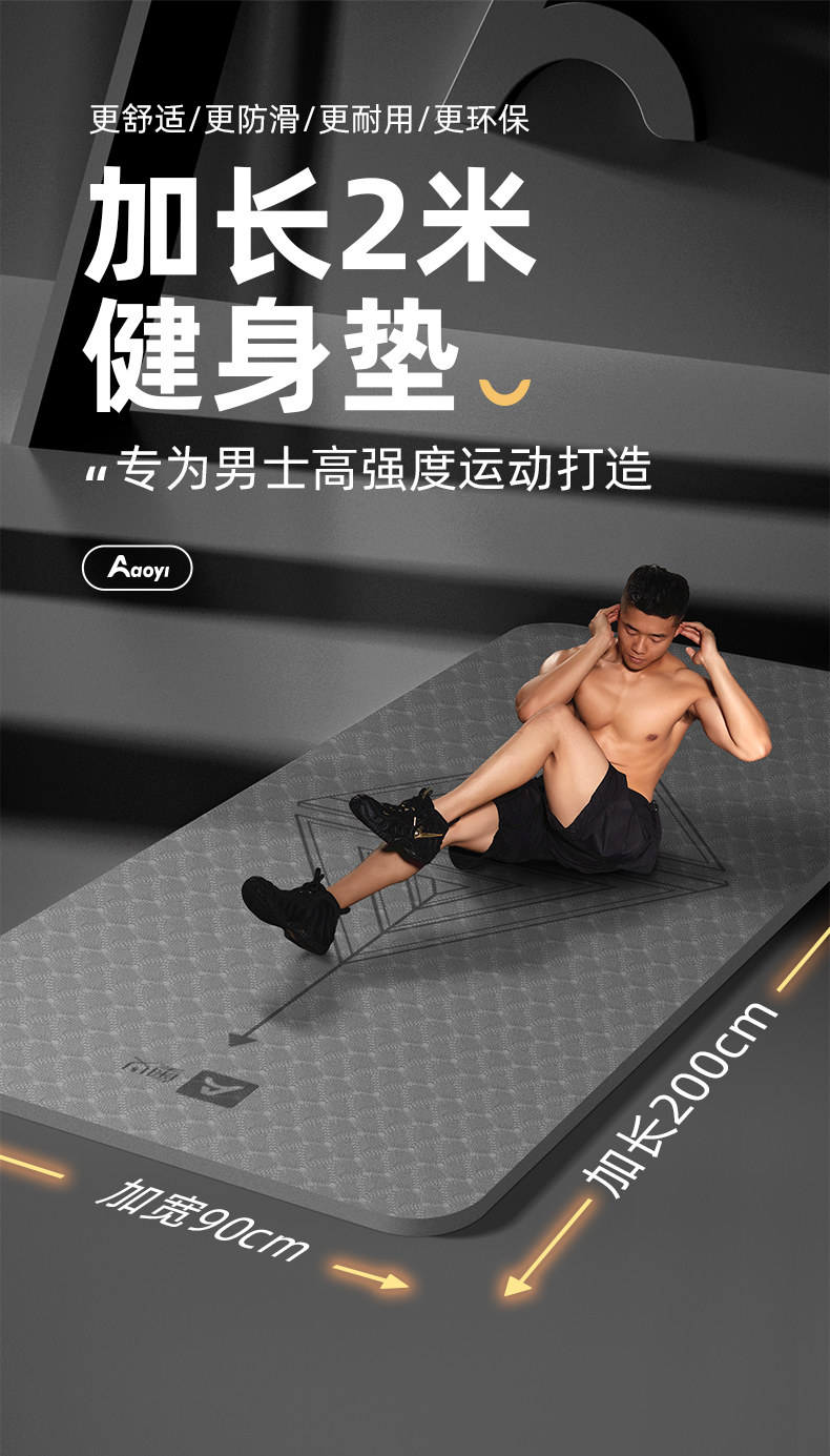 Aoyi Men's Fitness Mat, Thickened and Lengthened Yoga Mat, Floor Mat for Home Use, Jump Rope Mat, Shock-Absorbing, Non-Slip, Soundproof and Shockproof