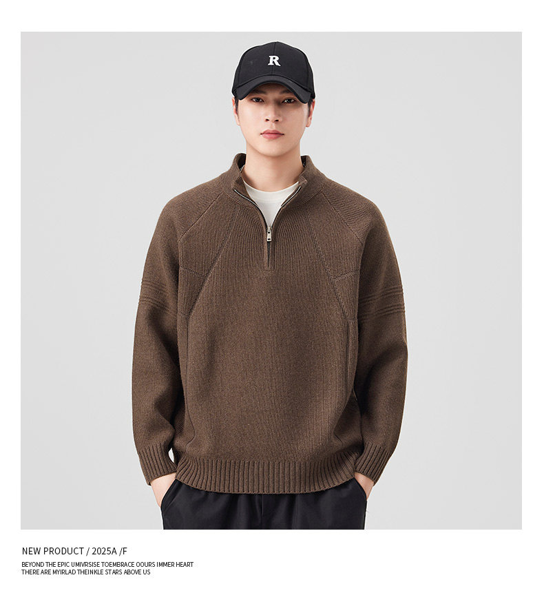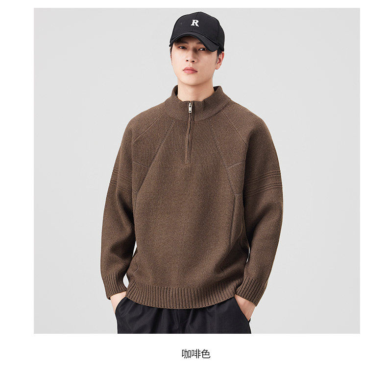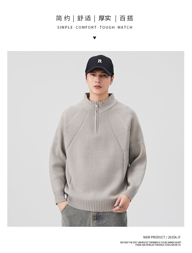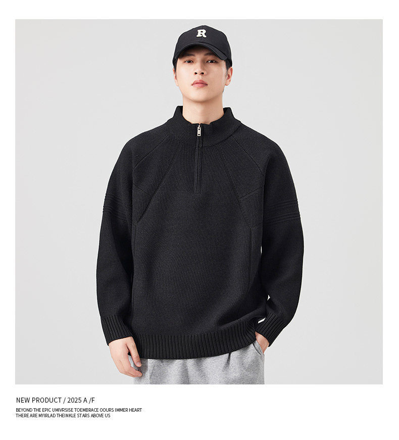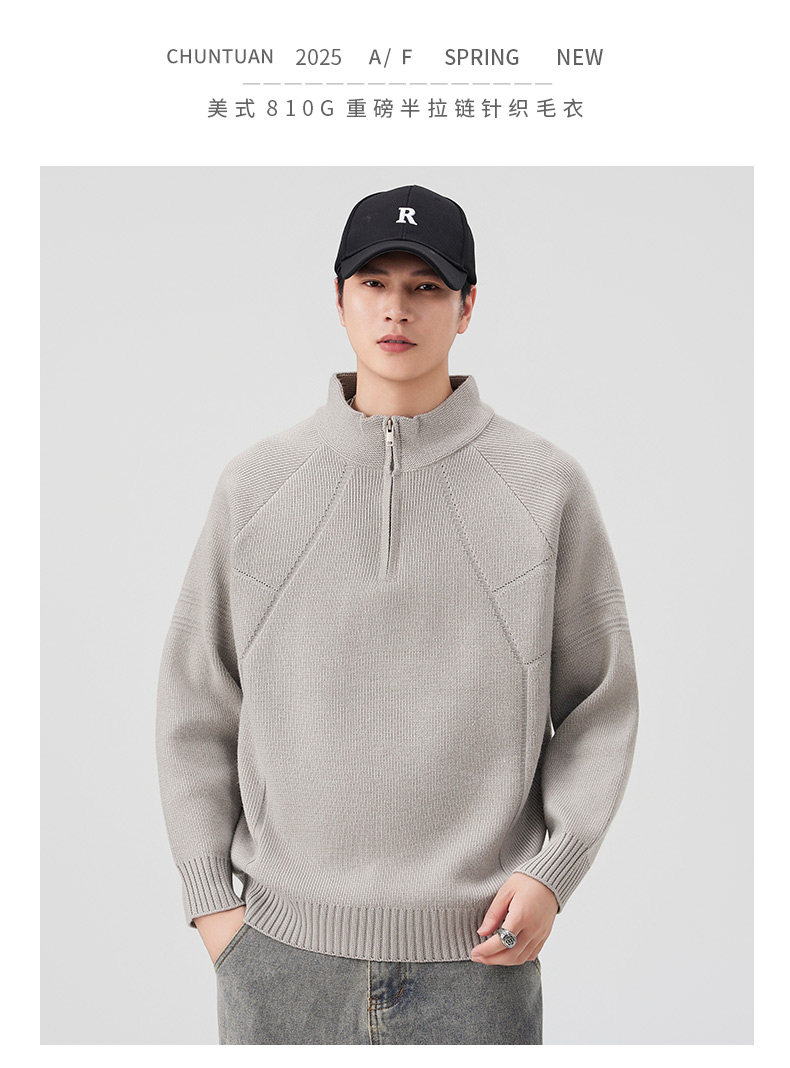 810g Heavyweight Half-Zip Sweater for Men, Winter American Style Loose Solid Color Half-High Collar Thickened Warm Knitwear Jacket
