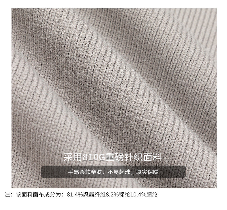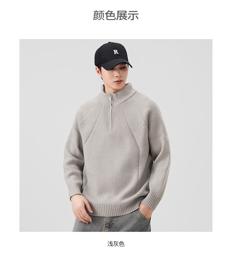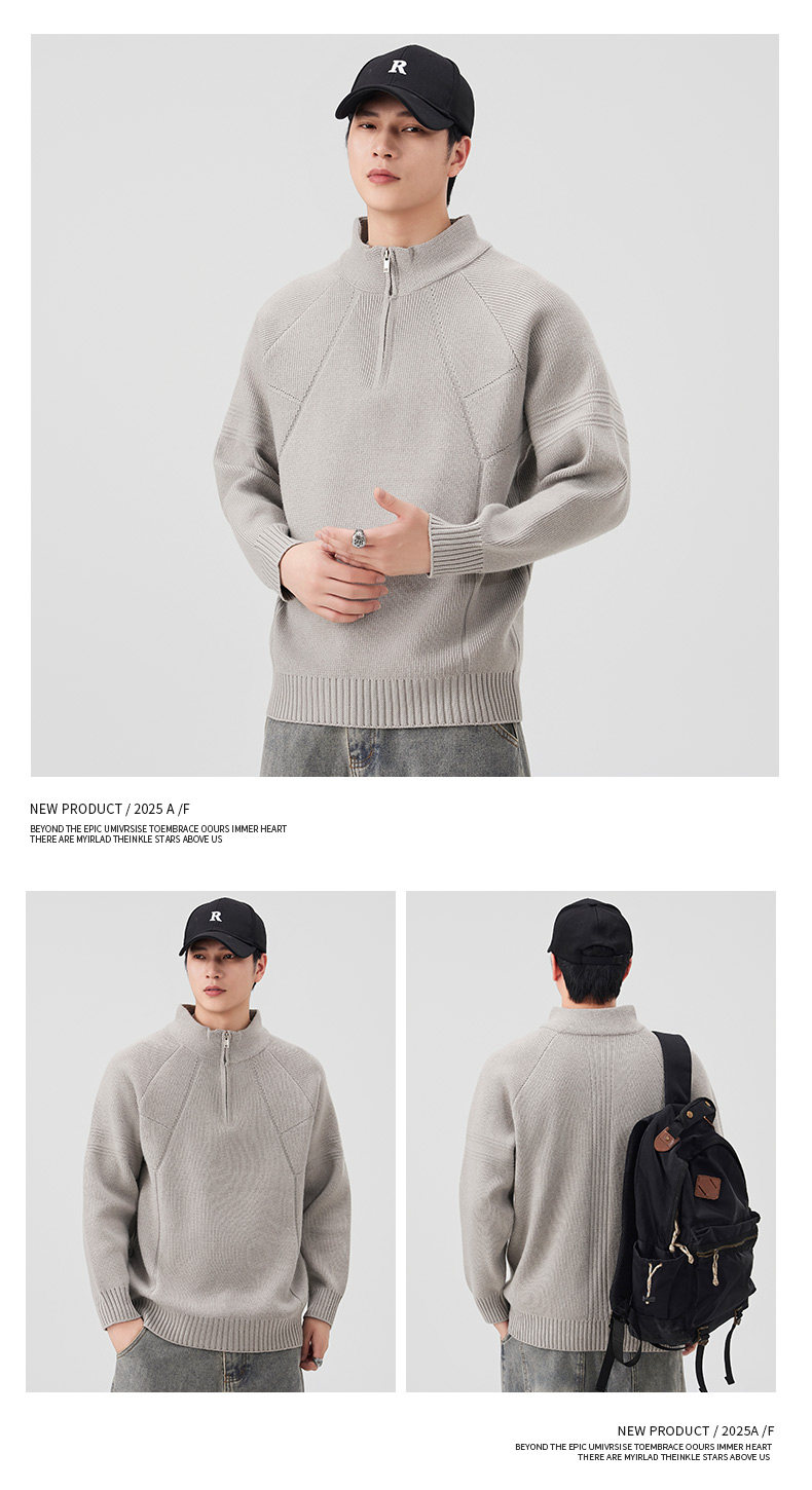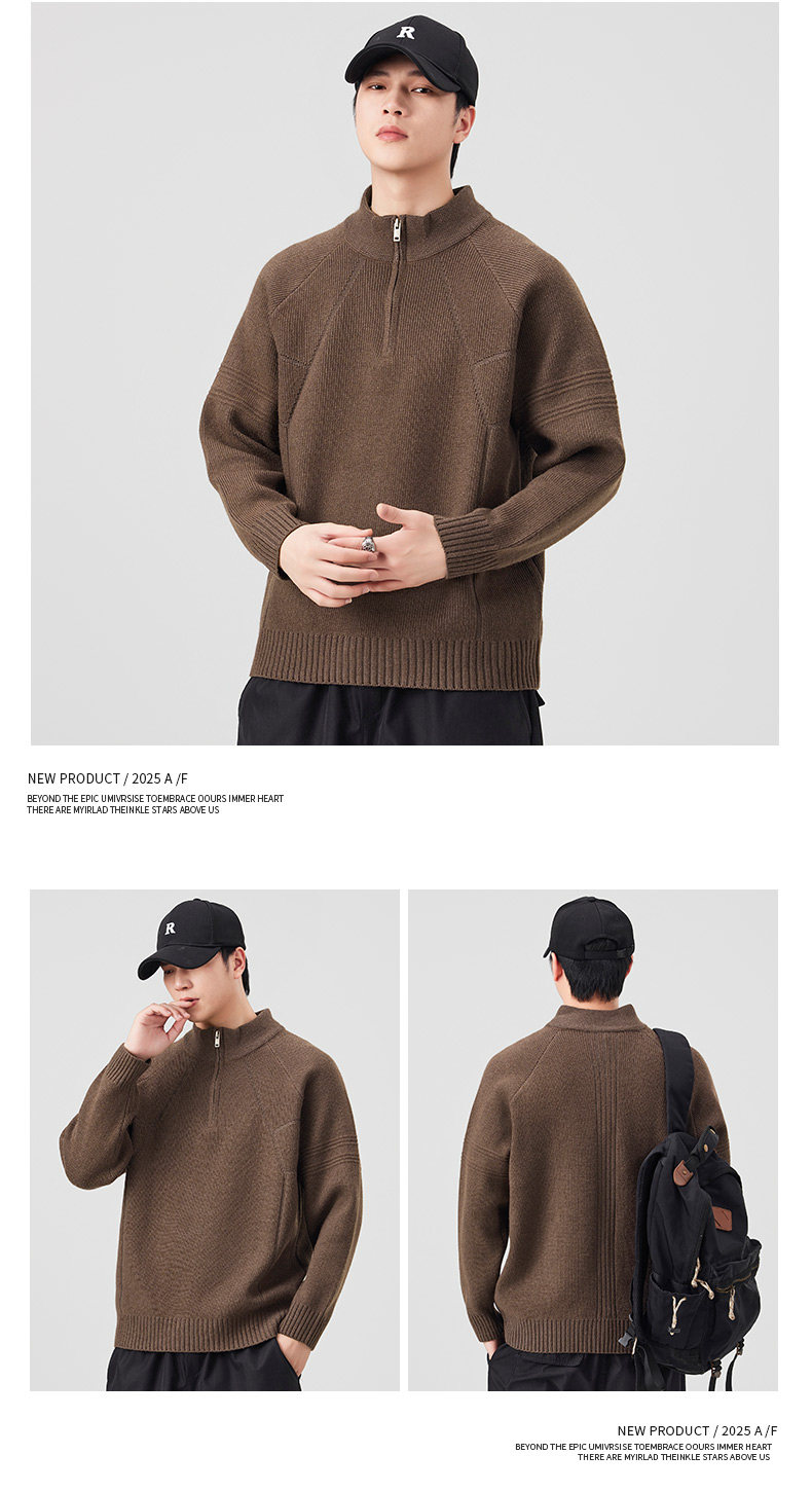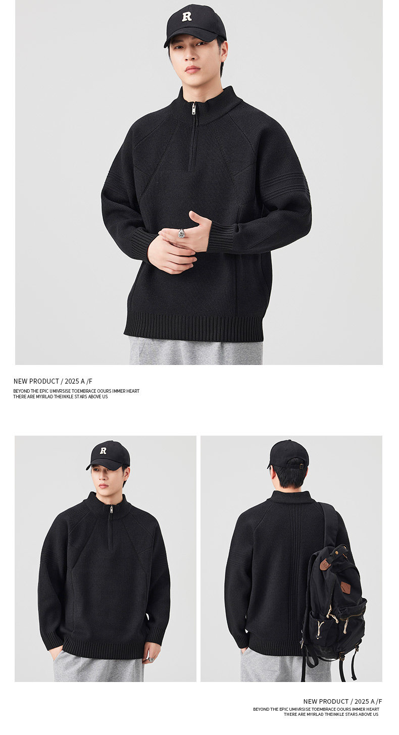 810g Heavyweight Half-Zip Sweater for Men, Winter American Style Loose Solid Color Half-High Collar Thickened Warm Knitwear Jacket