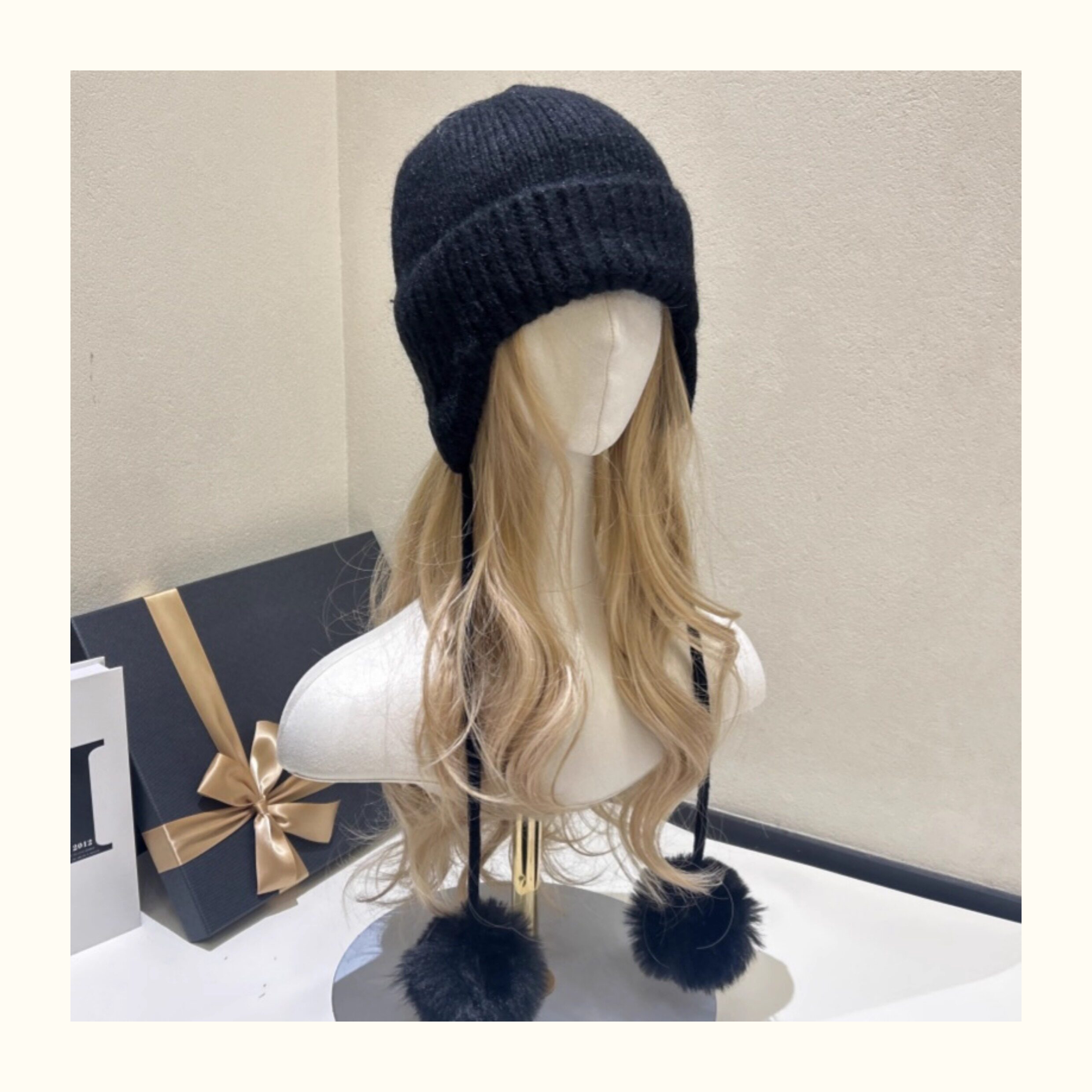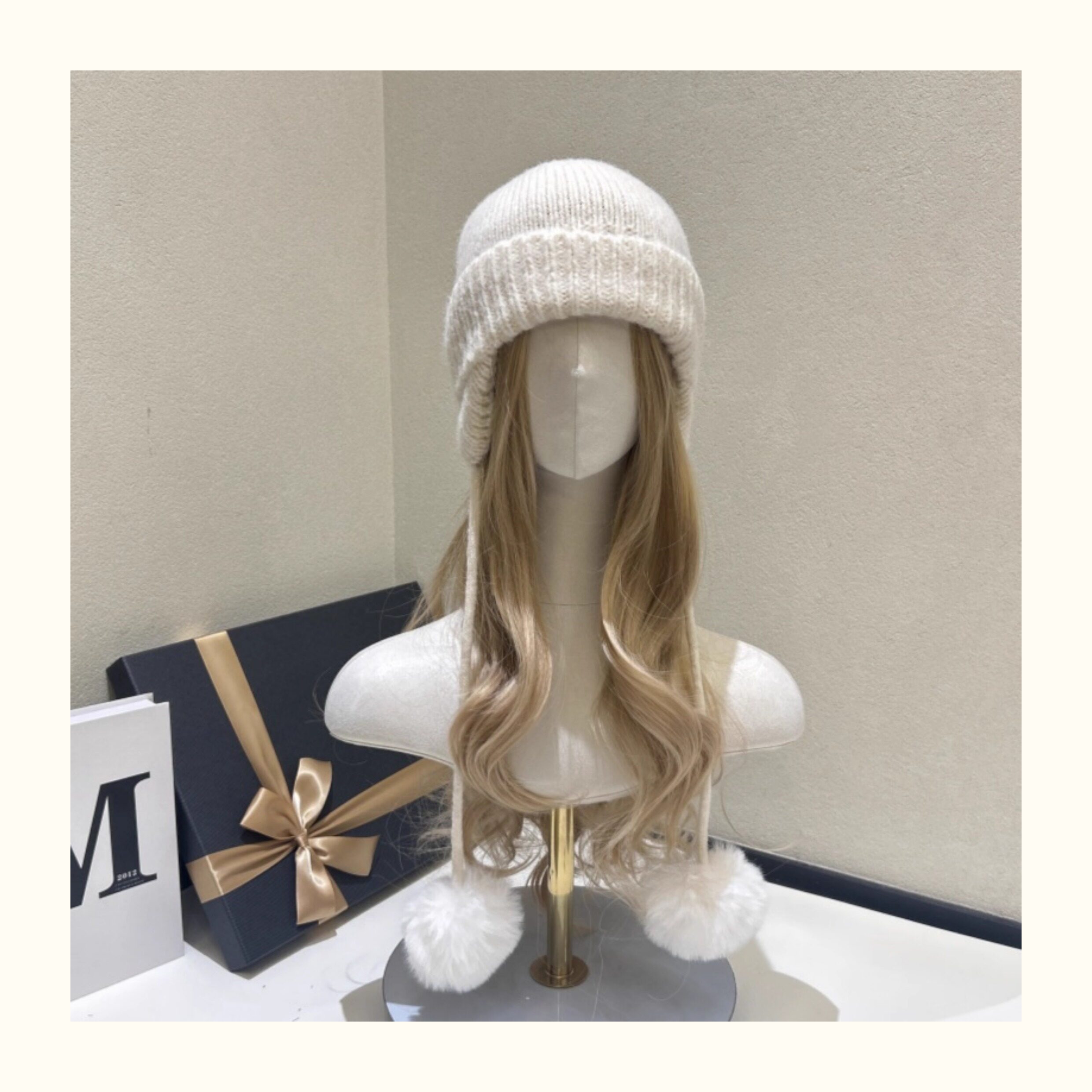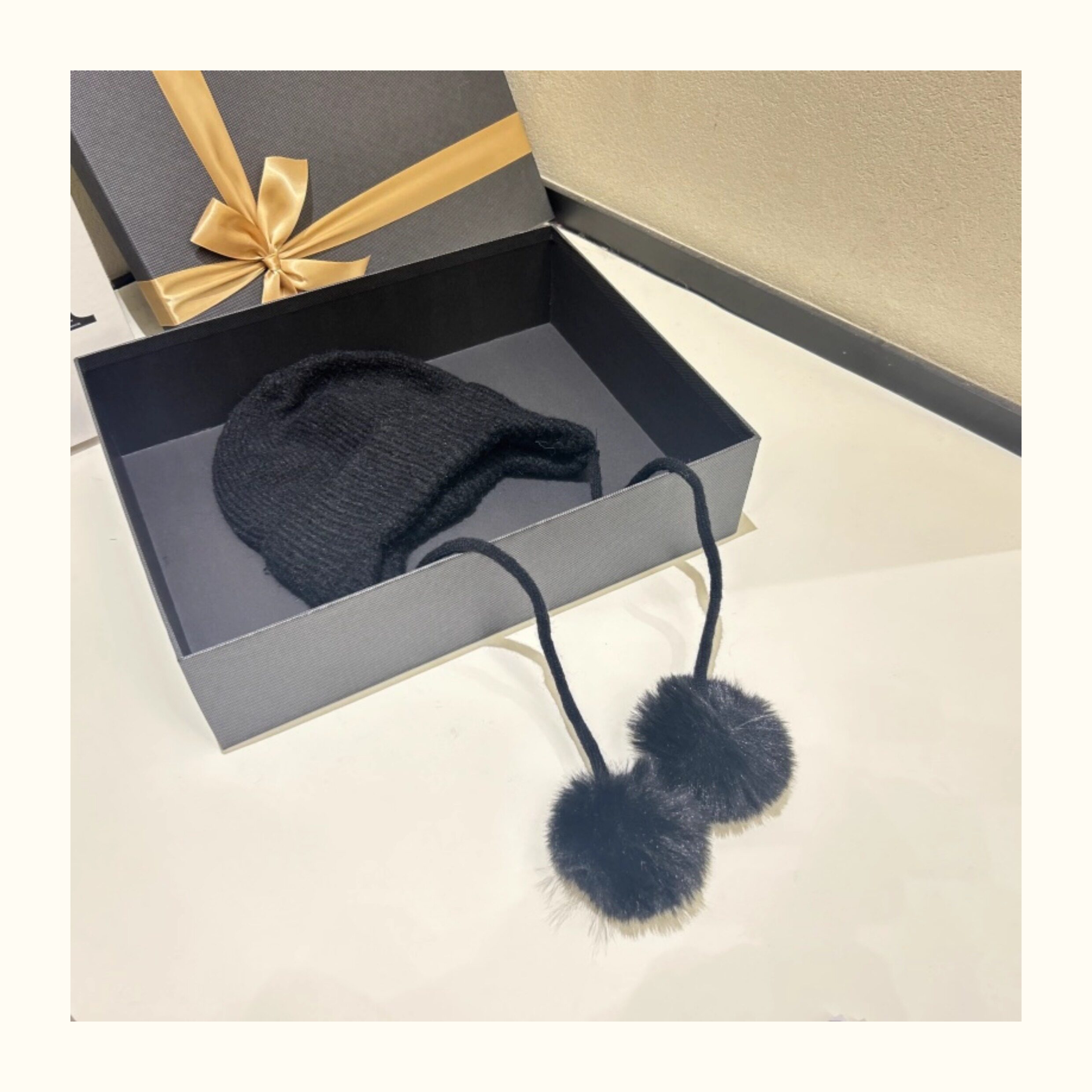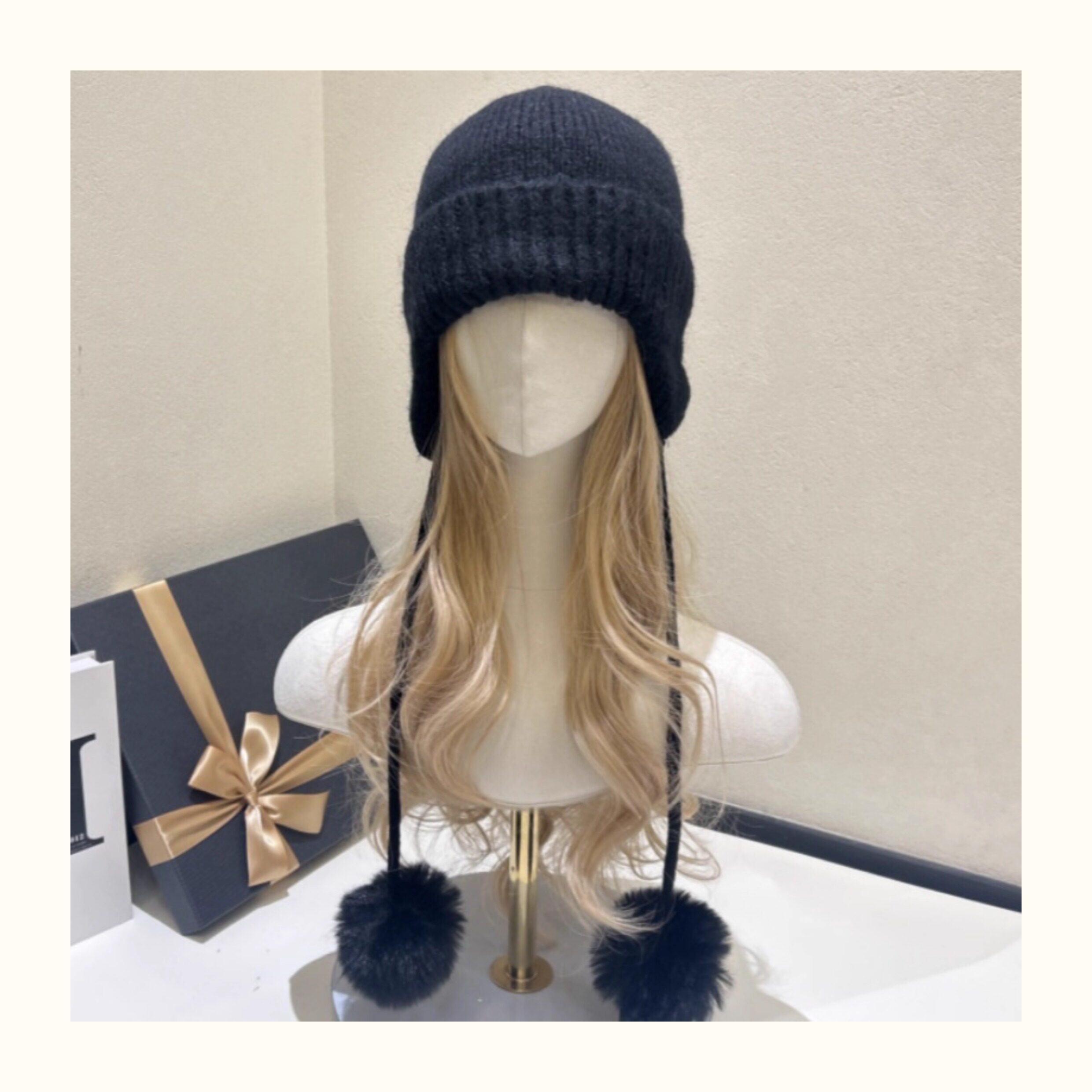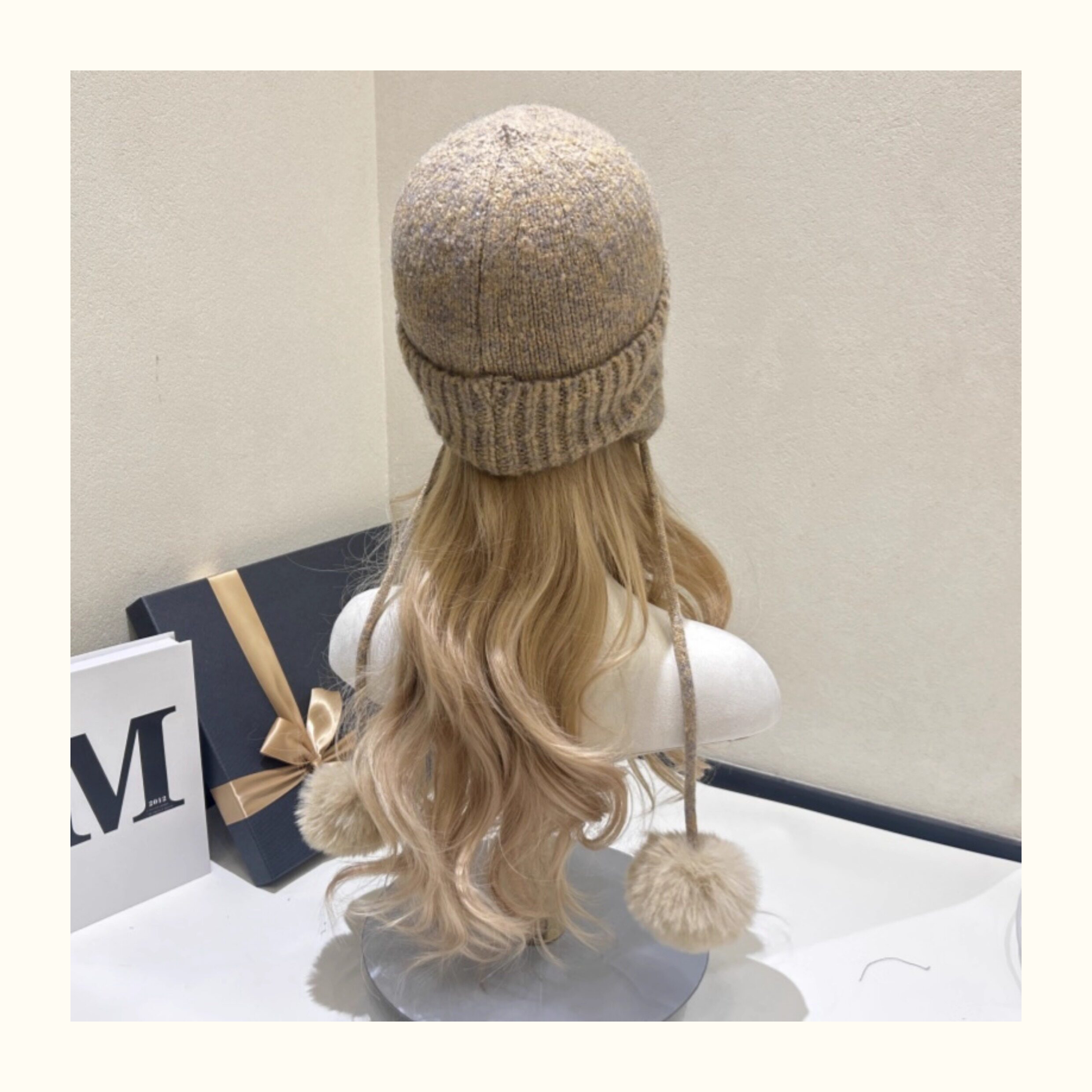 Korean Style Pom-Pom Knitted Wool Hat for Women, Thickened, Warm, Cute, Cold-Proof, Ear-Protecting Hat, Fluffy Lei Feng Hat, Winter Hat