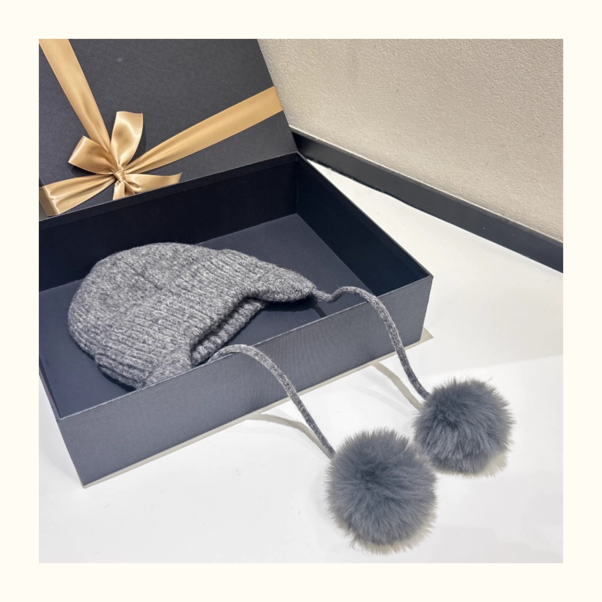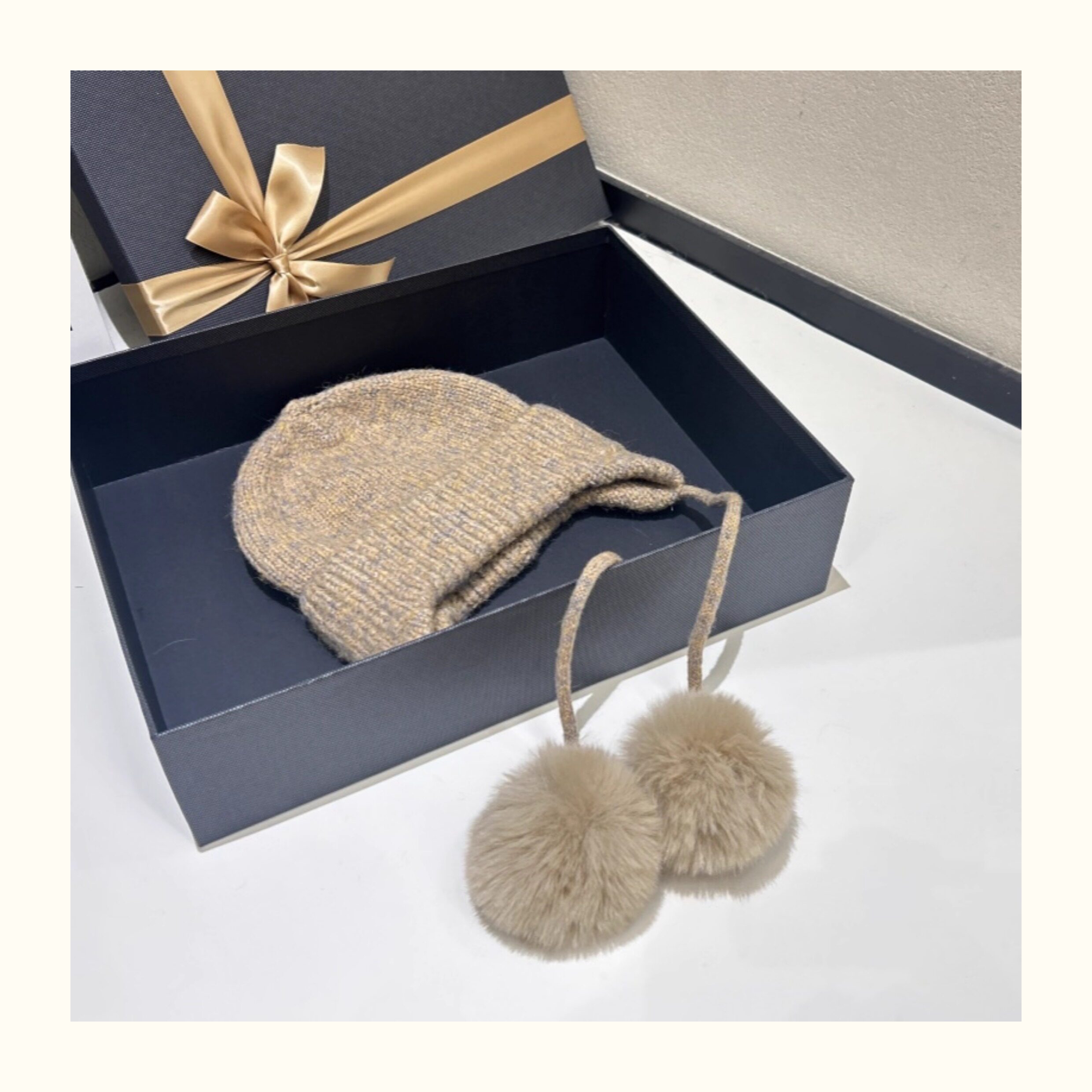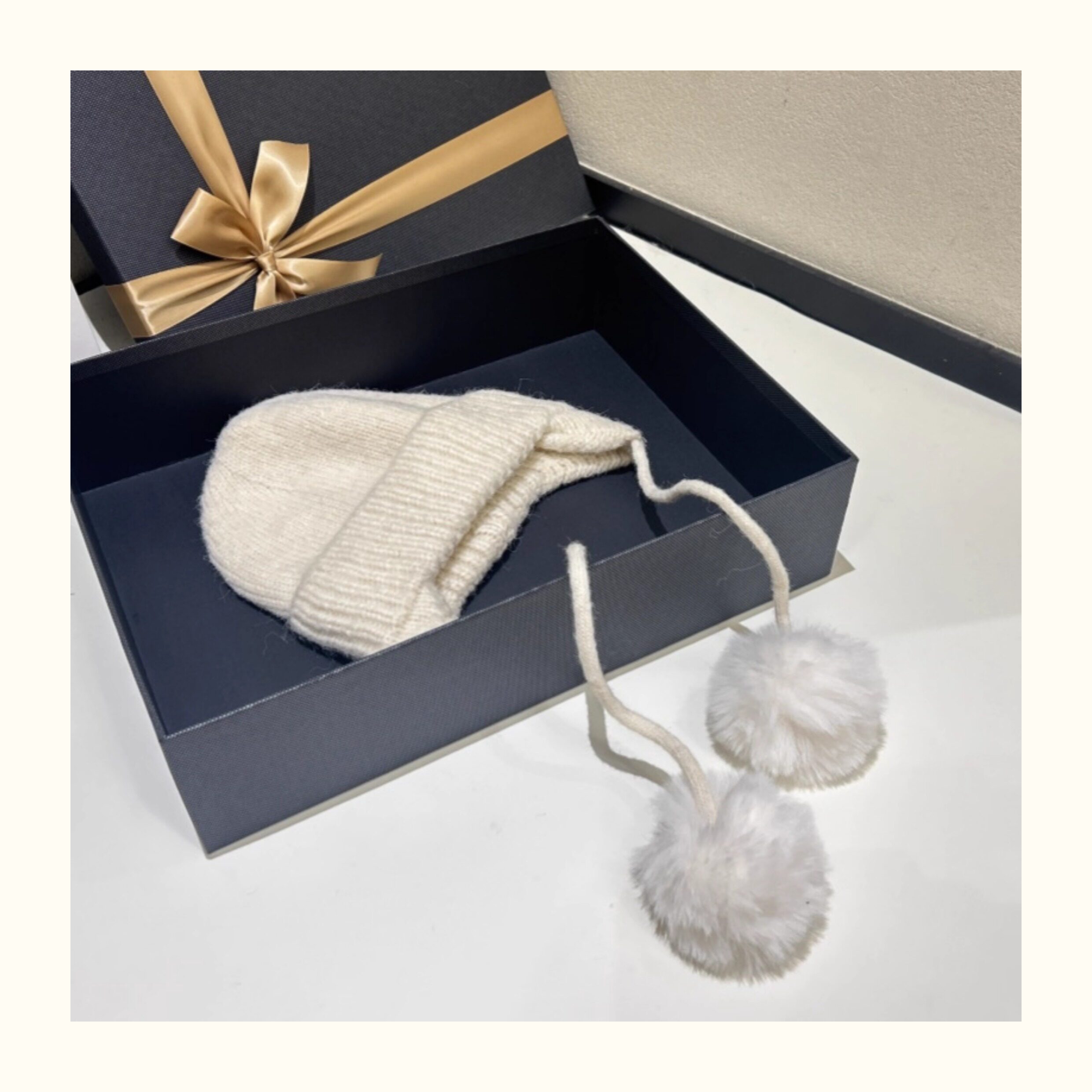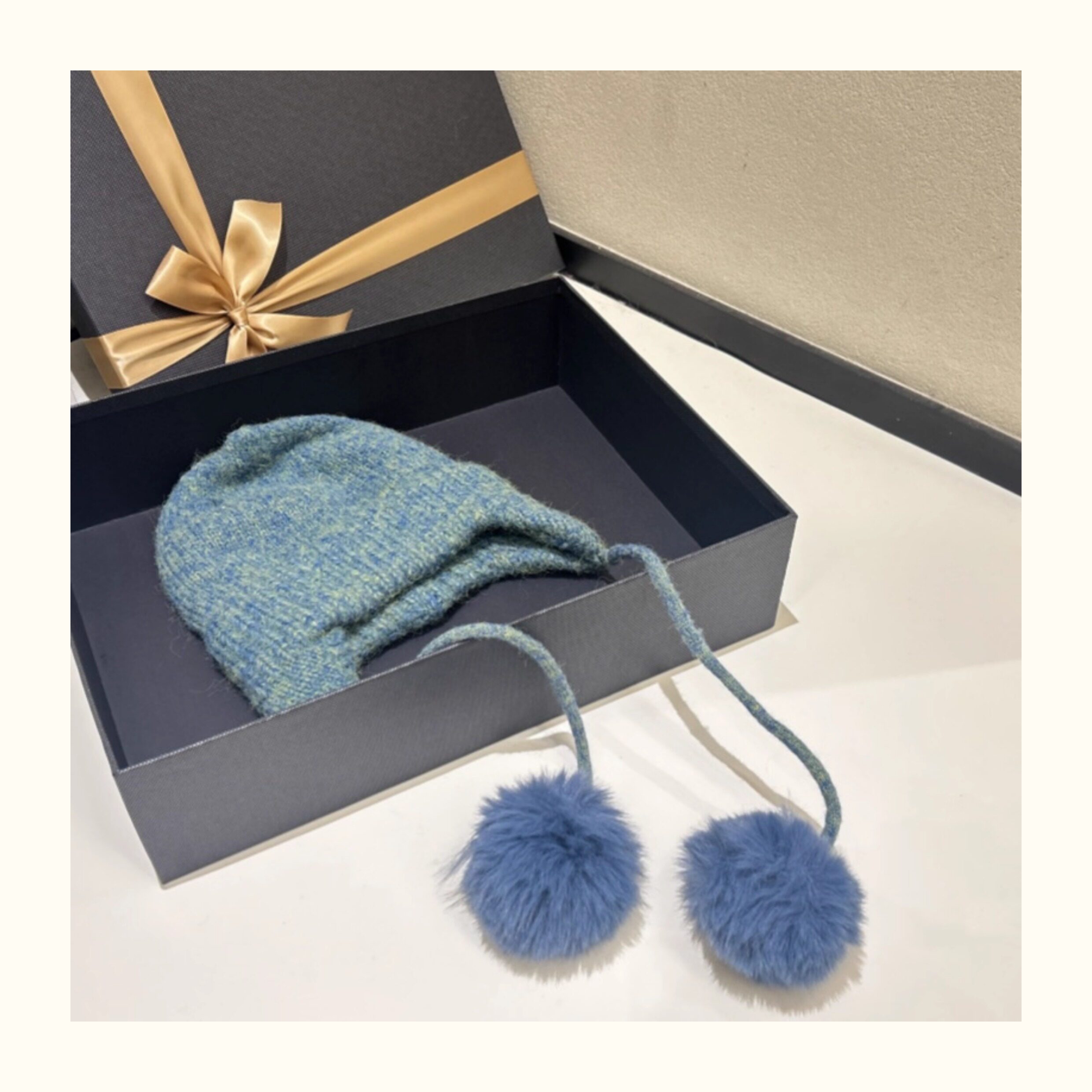Korean Style Pom-Pom Knitted Wool Hat for Women, Thickened, Warm, Cute, Cold-Proof, Ear-Protecting Hat, Fluffy Lei Feng Hat, Winter Hat