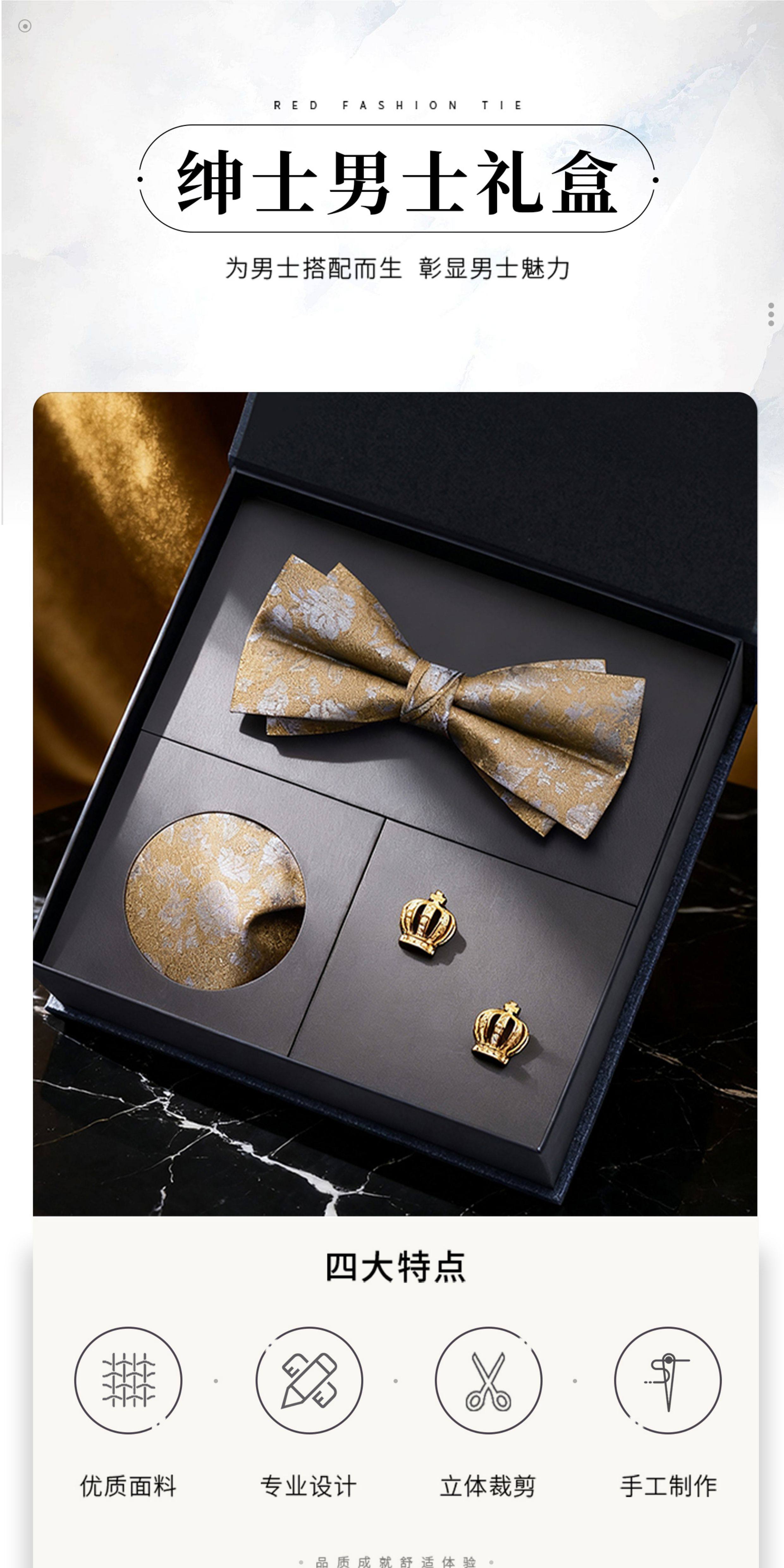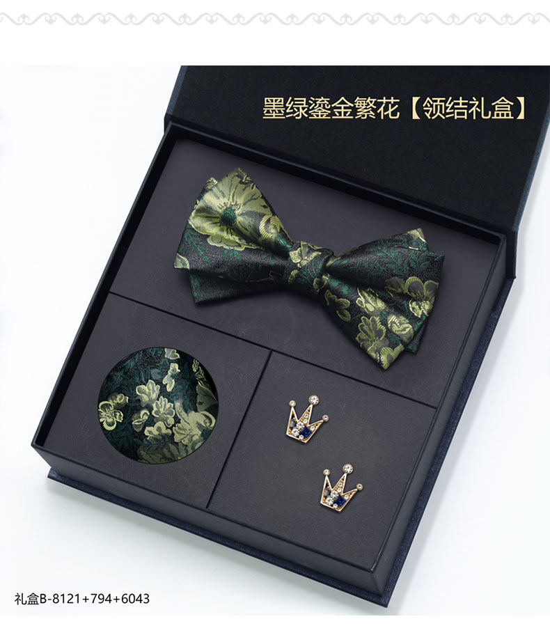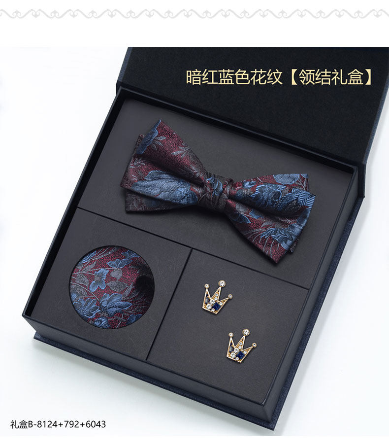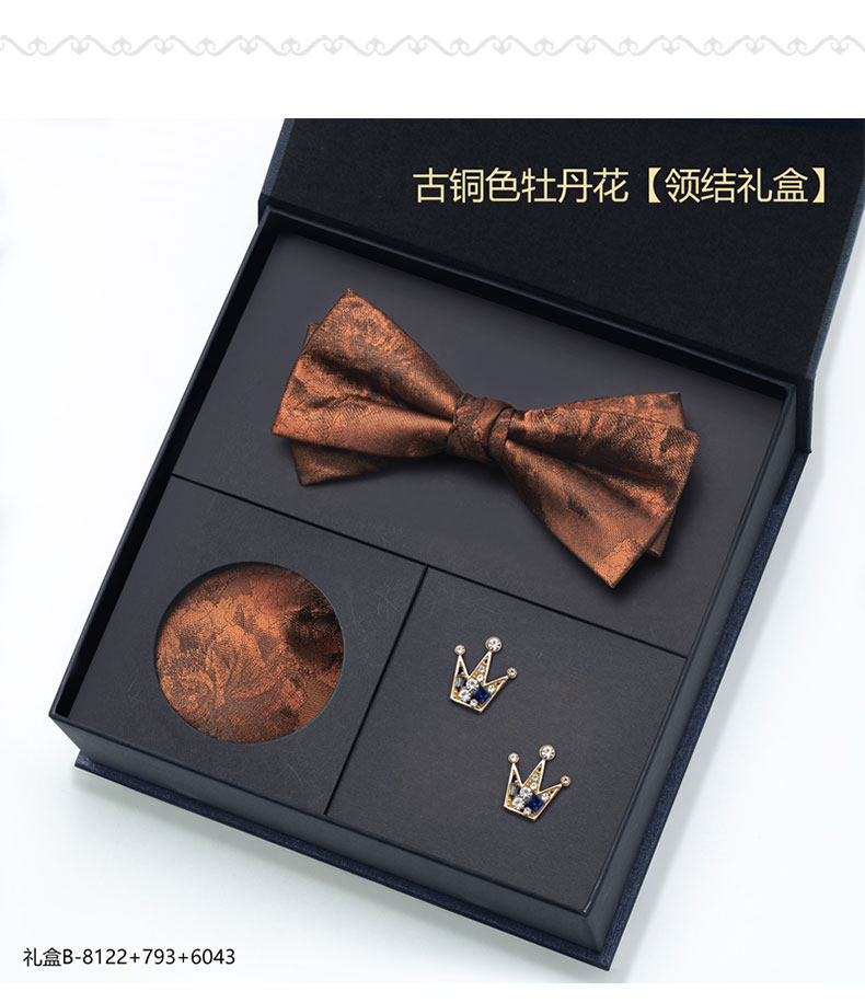 High-end bow tie, men's pocket square, brooch, gift box set, wedding groom, groomsmen's suit, bow tie accessories