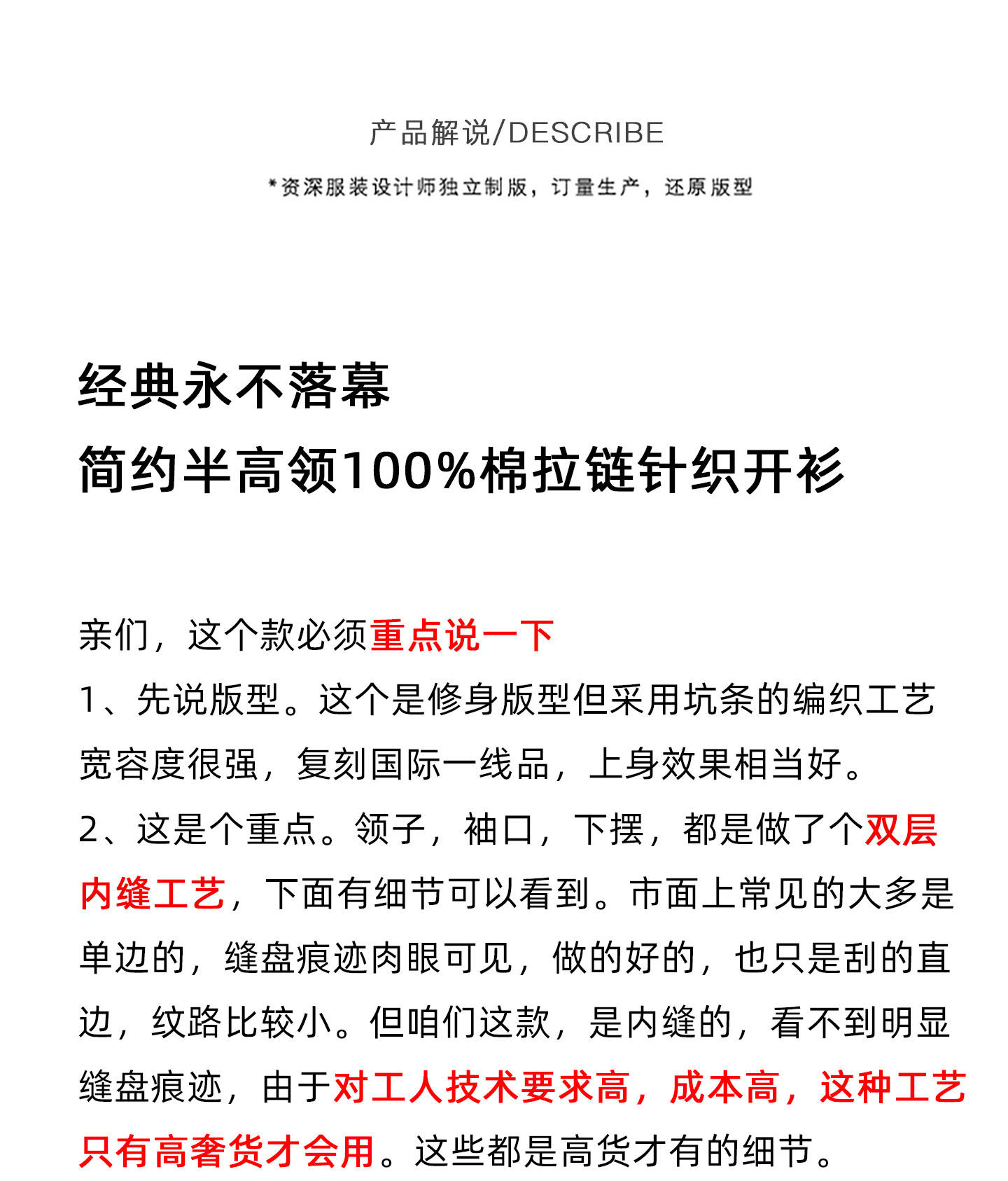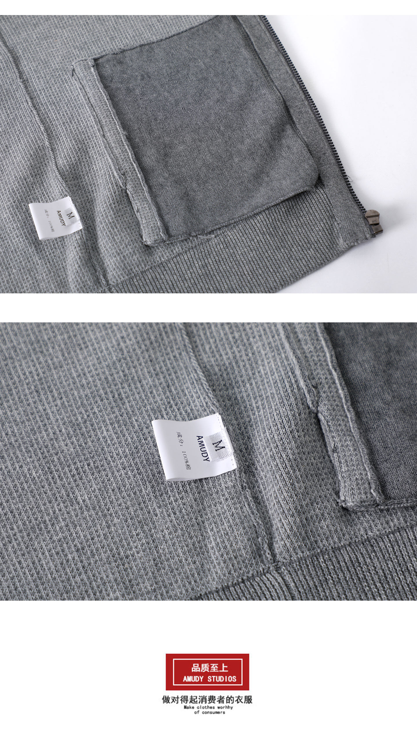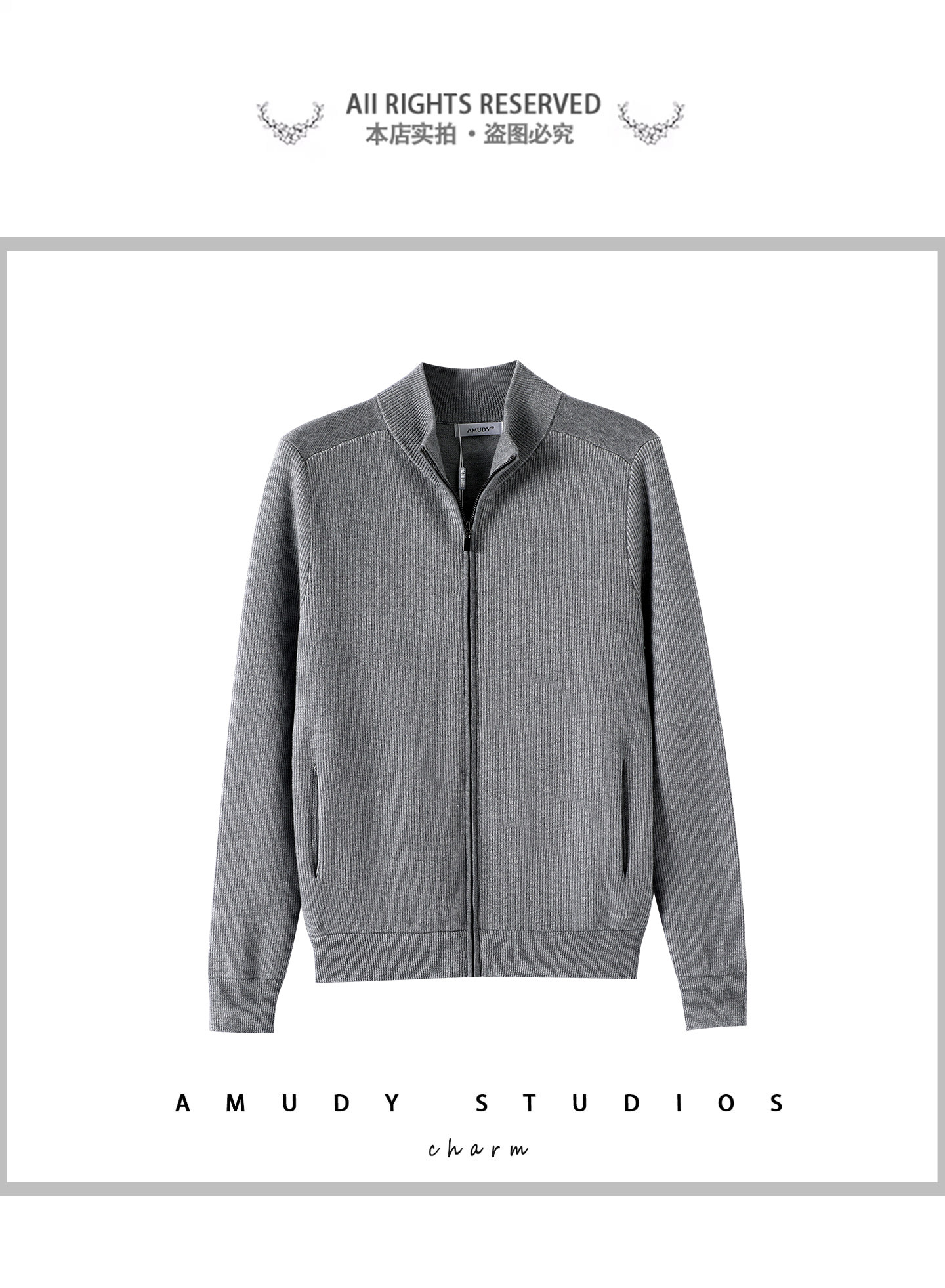 The same 100% cotton autumn and winter men's half-turtle collar zipper knitted cardigan pure cotton stand-up collar sweater jacket on the high branch cabinet