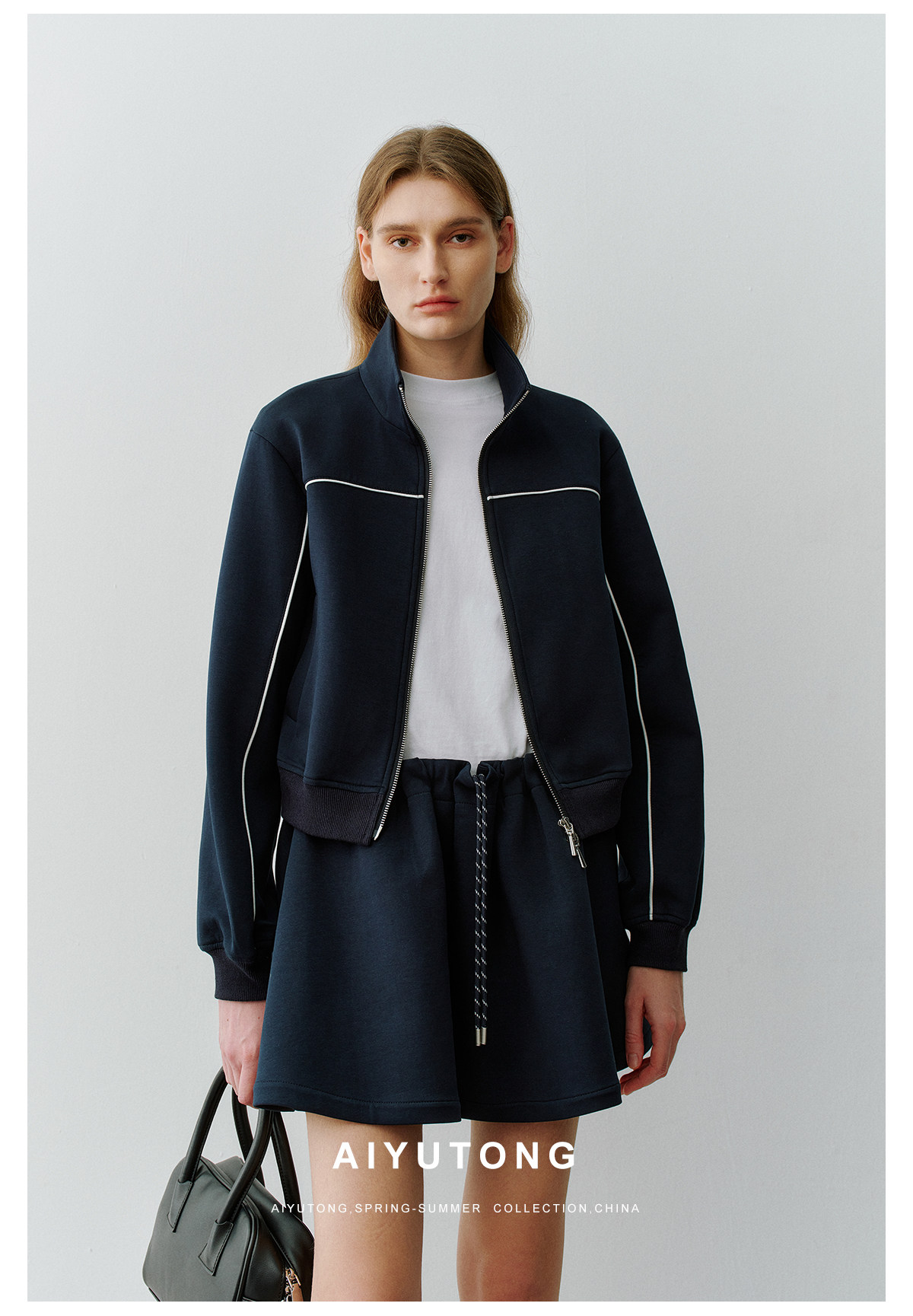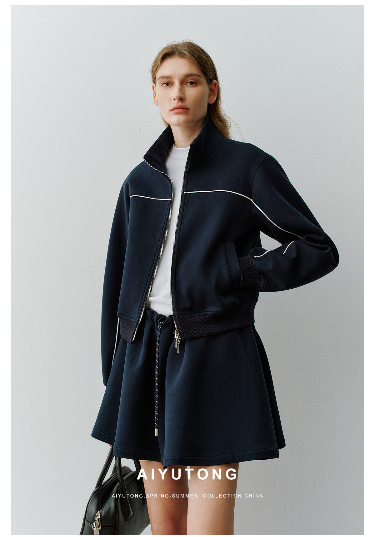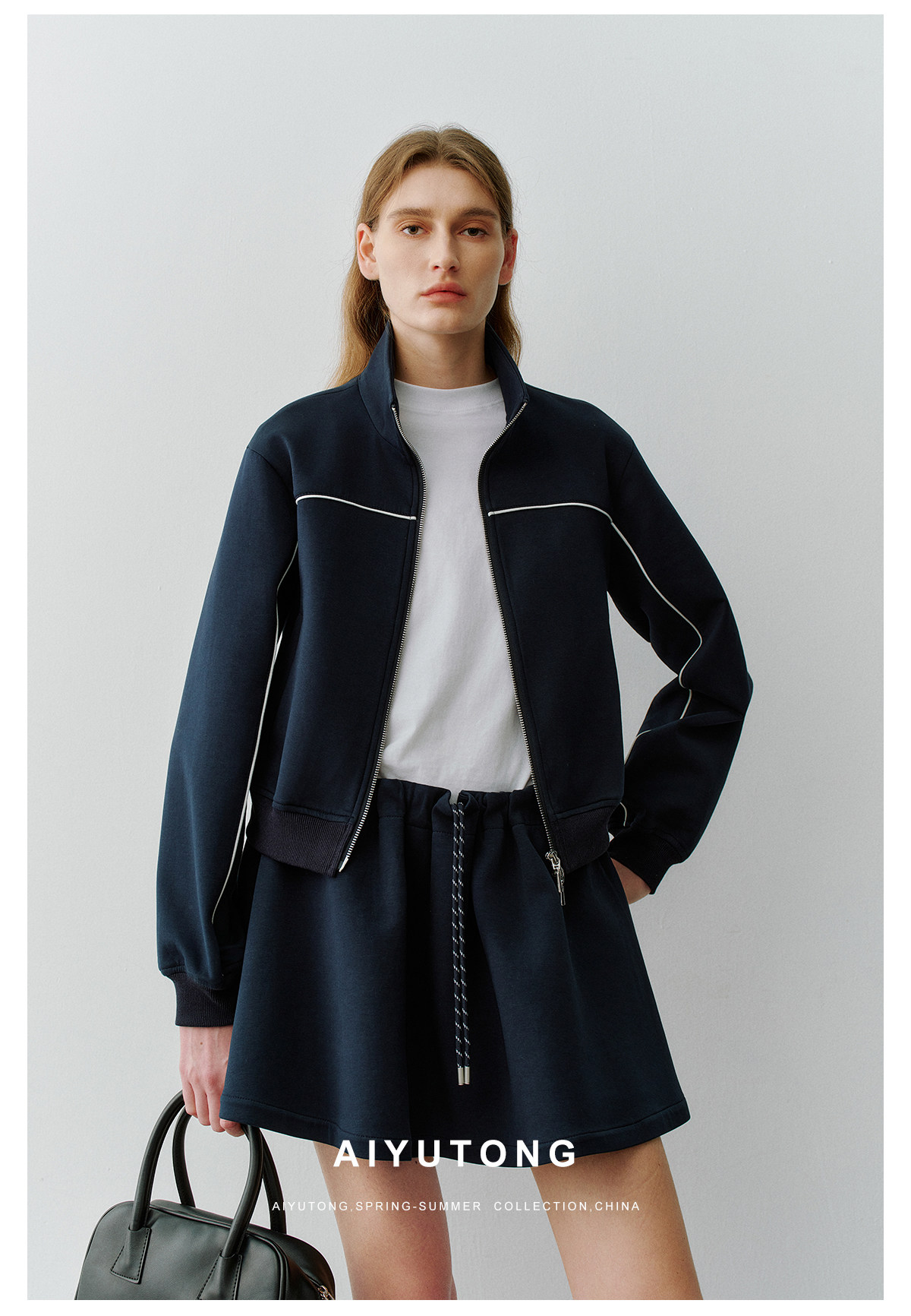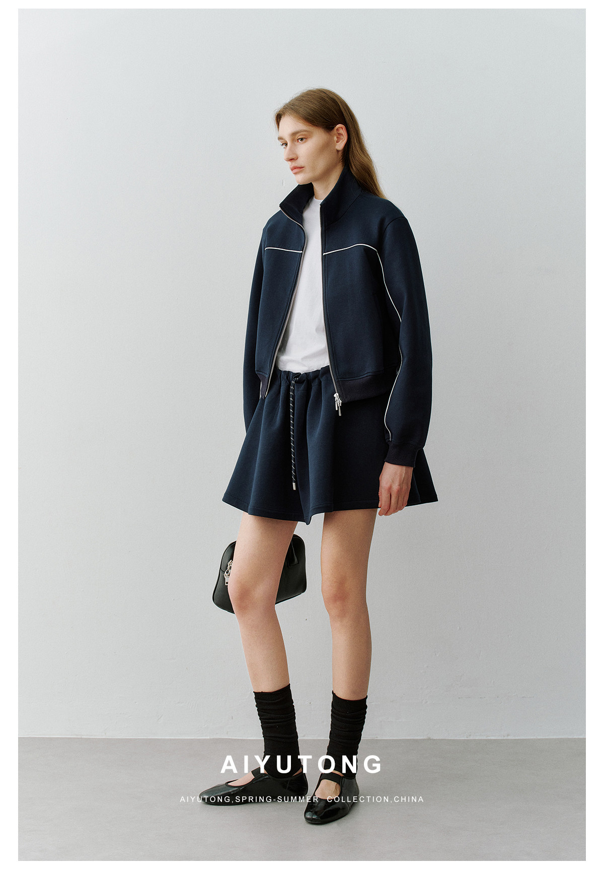 Relaxed and comfortable/Spring and Autumn small stand-up collar zipper sweatshirt jacket for women/skirt/trousers/sporty three-piece suit