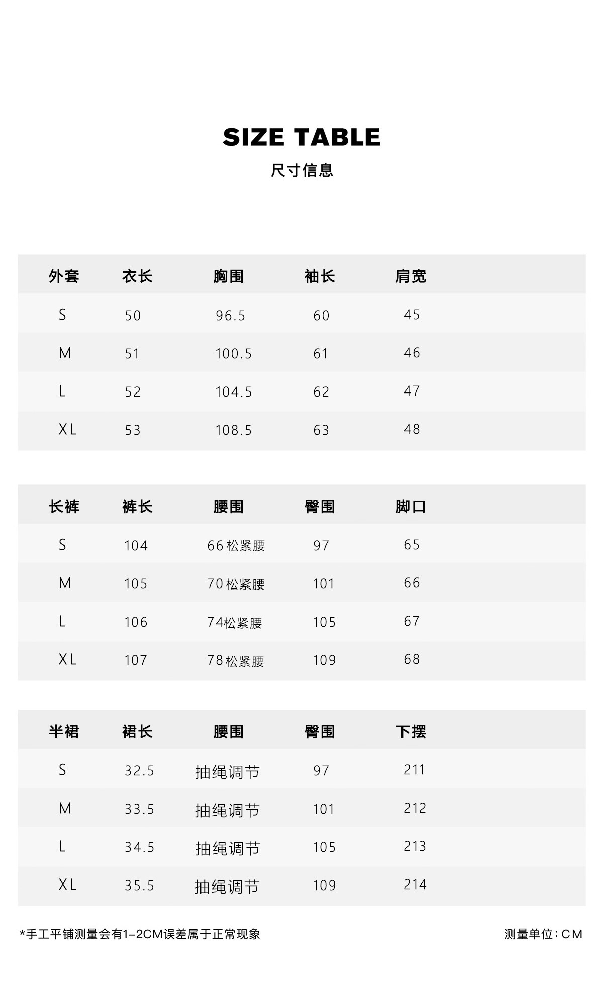 Outseam (cm) 99 cm 101.5 cm 104 cm 106.5 cm 109 cm