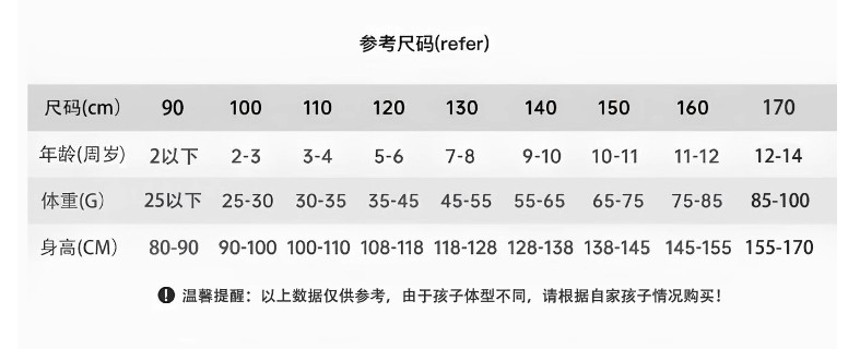 China (cm) 165 / 88-90 170 / 96-98 175 / 108-110 180 / 118-122 185 / 126-130