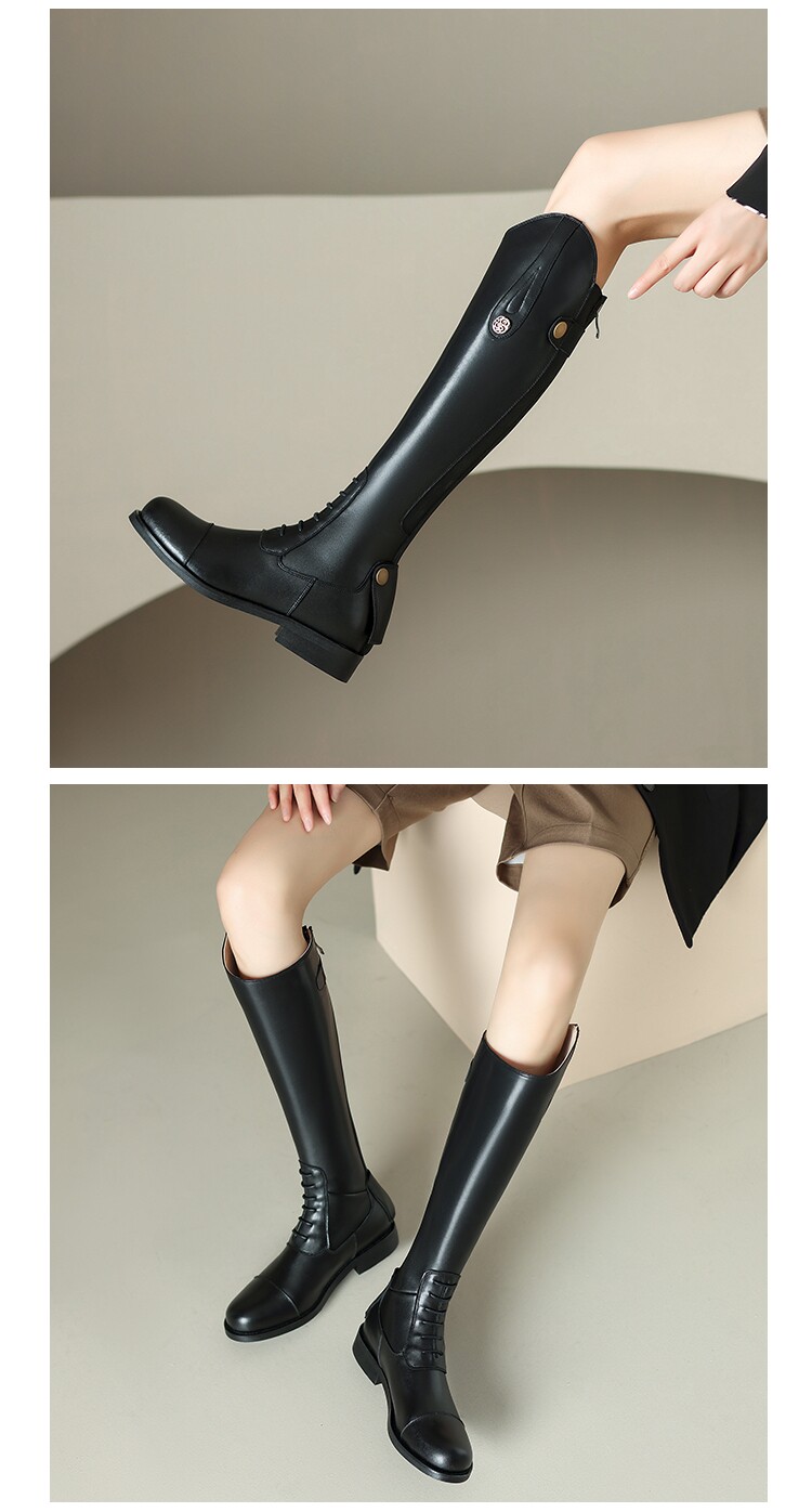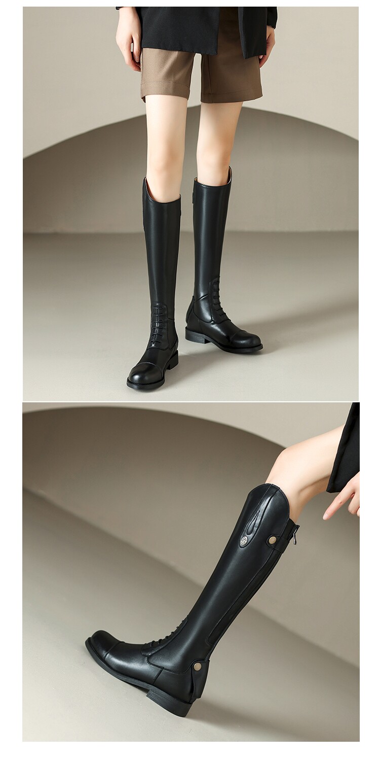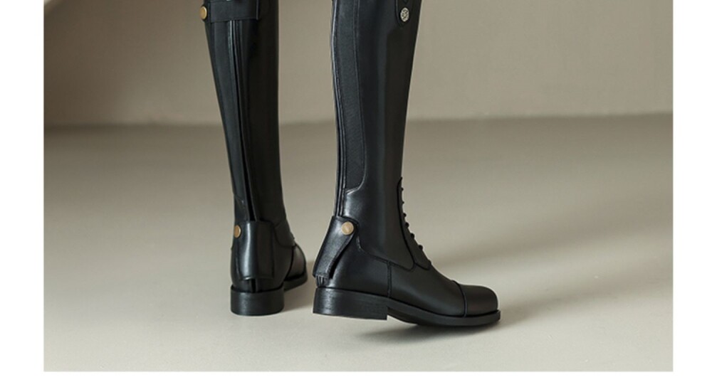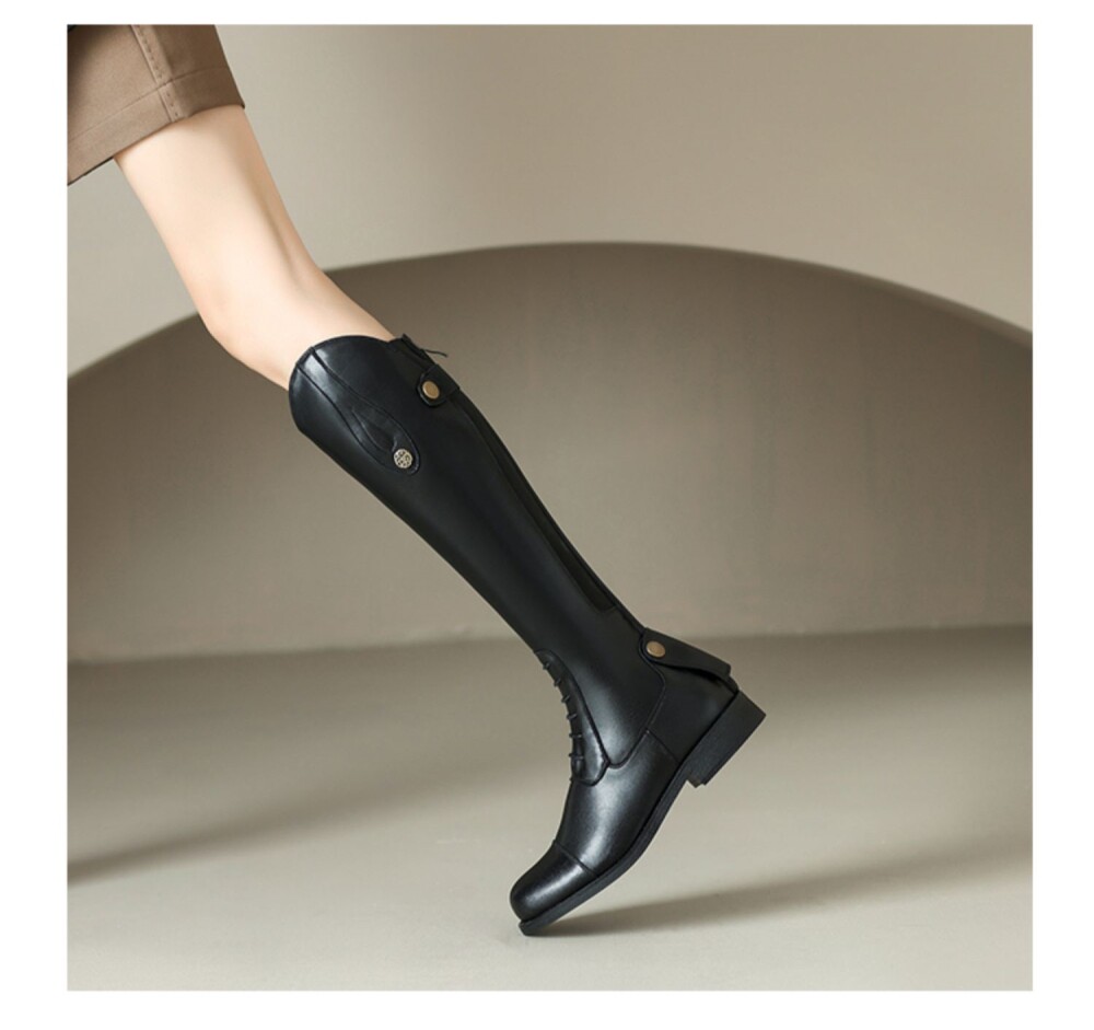 Italy Corso Venezia~Equestrian Boots, Long Boots for Women, No More Than Knee-High, Genuine Leather, Studded High-Top Riding Boots