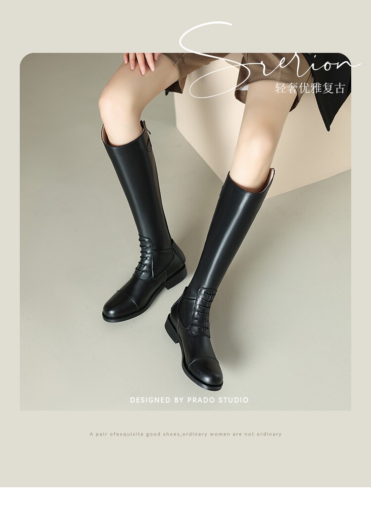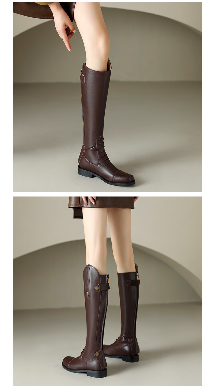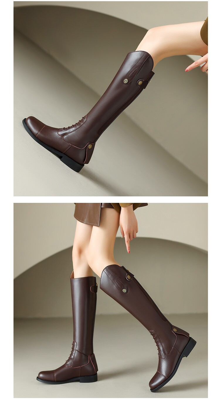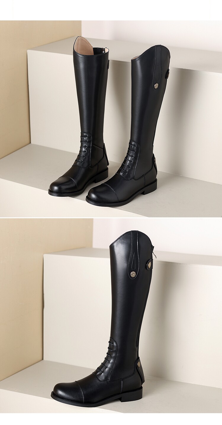 Italy Corso Venezia~Equestrian Boots, Long Boots for Women, No More Than Knee-High, Genuine Leather, Studded High-Top Riding Boots