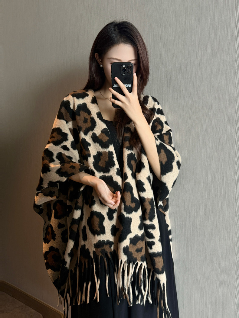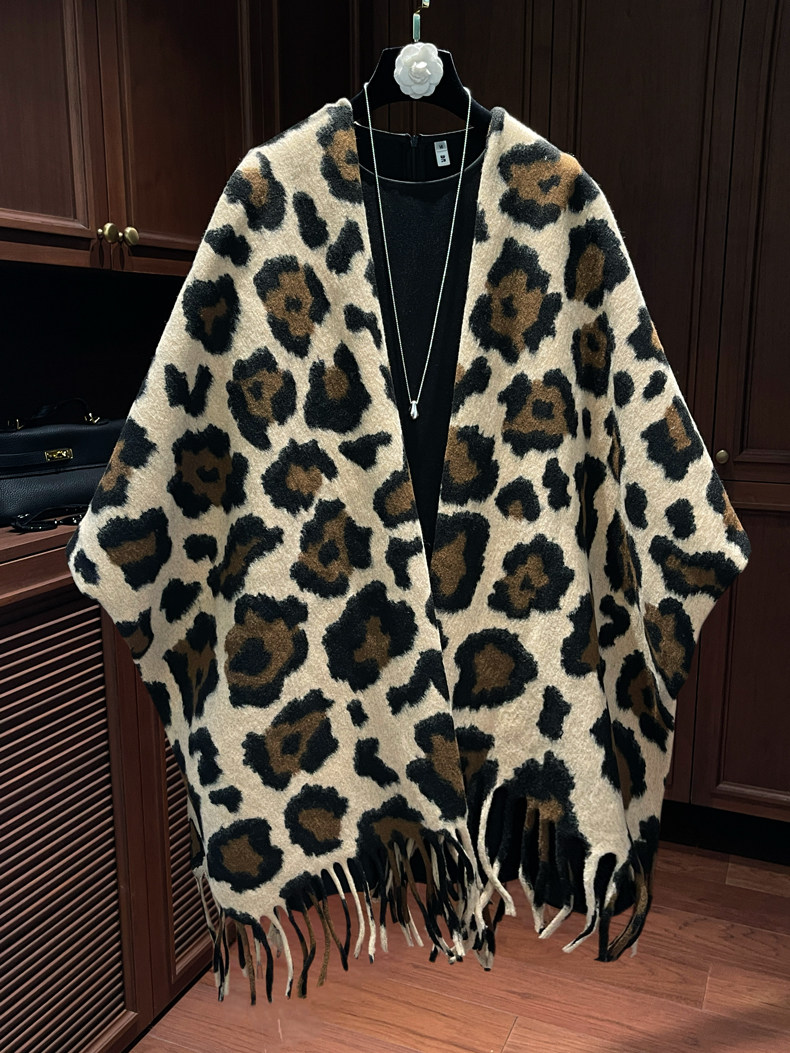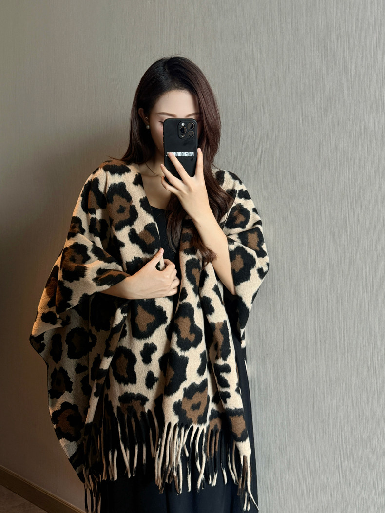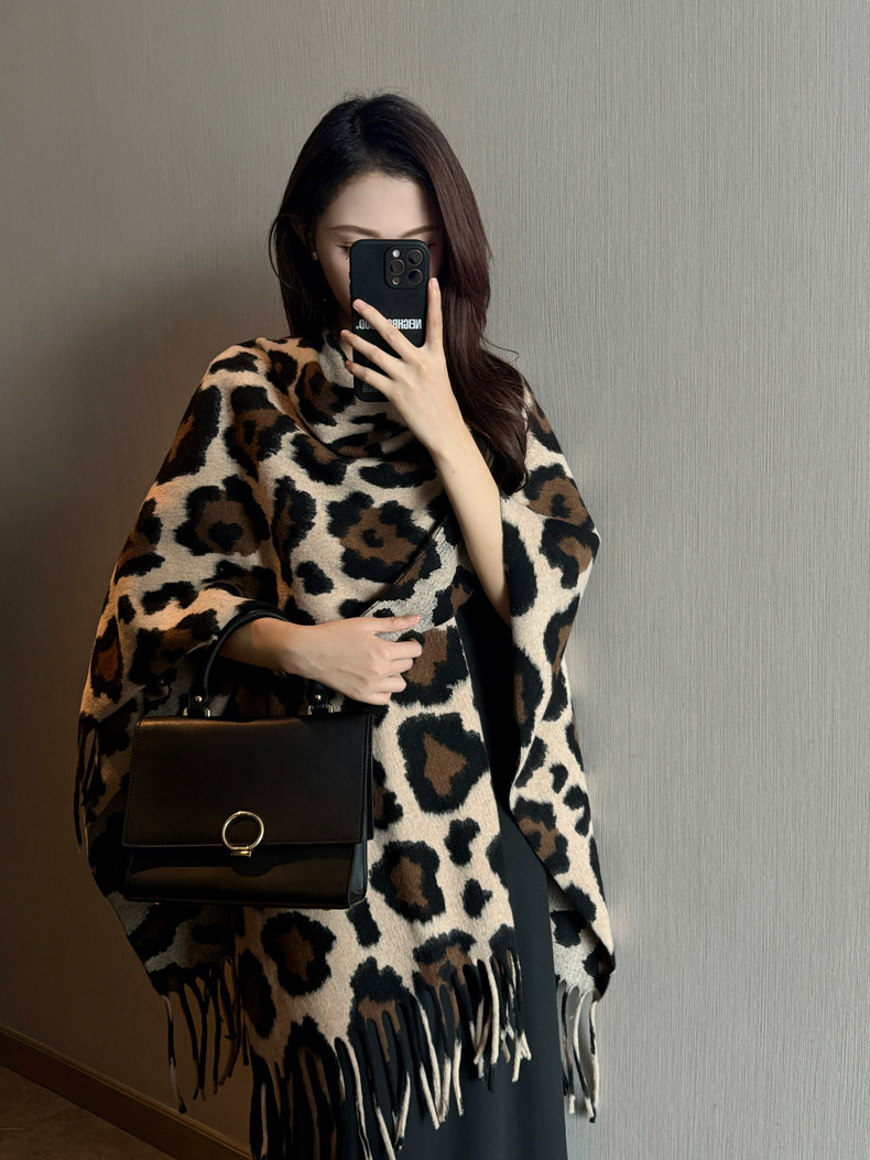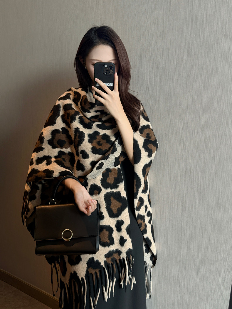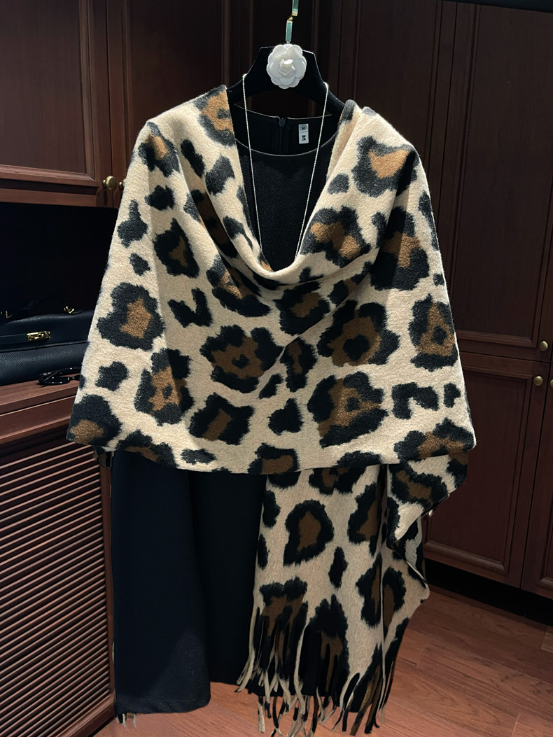Jiaolingzi Leopard Print Scarf for Women 2025 New Autumn and Winter Tassel Shawl Thickened Warm Millennial Hot Girl Style Neck Scarf