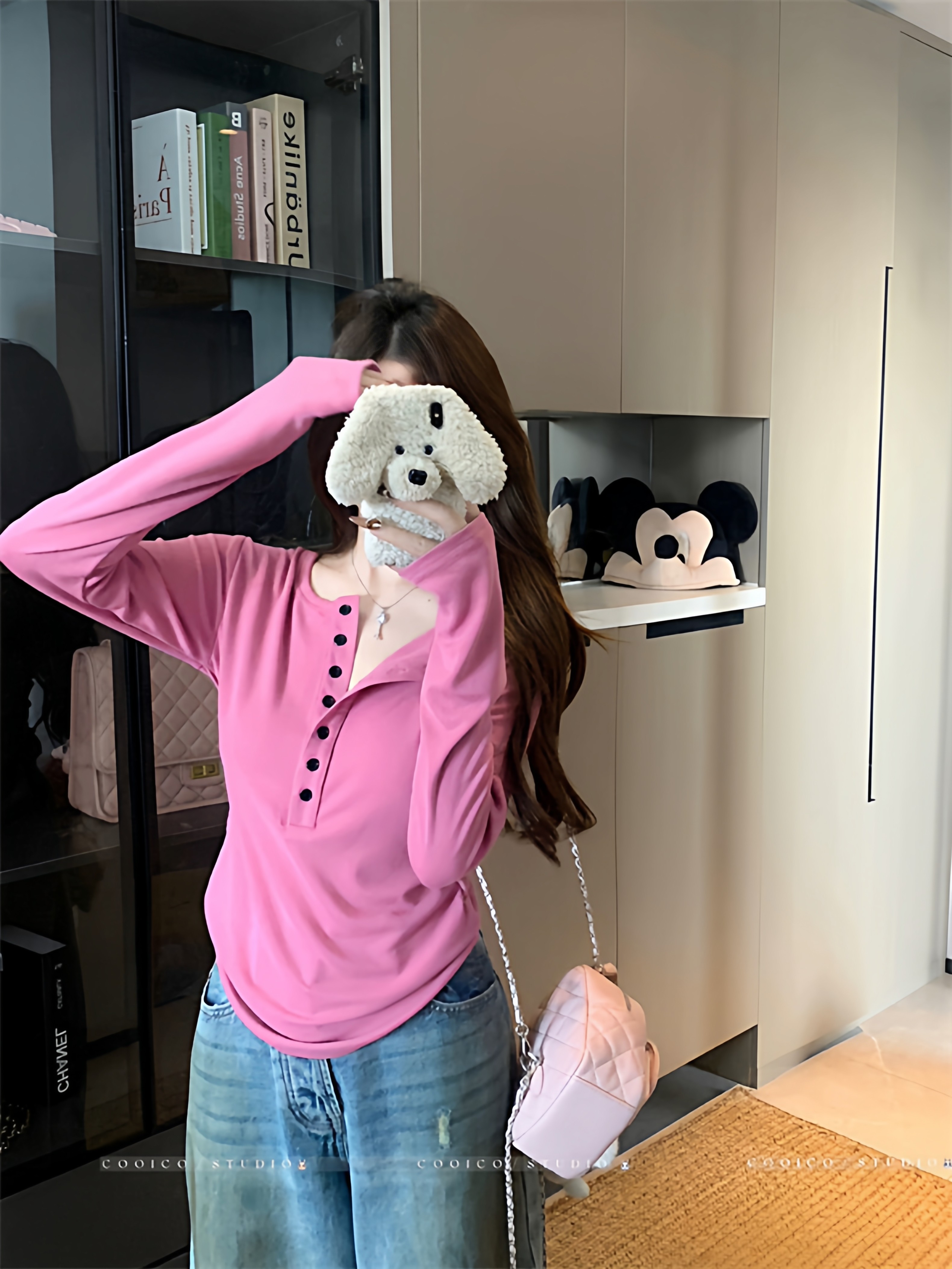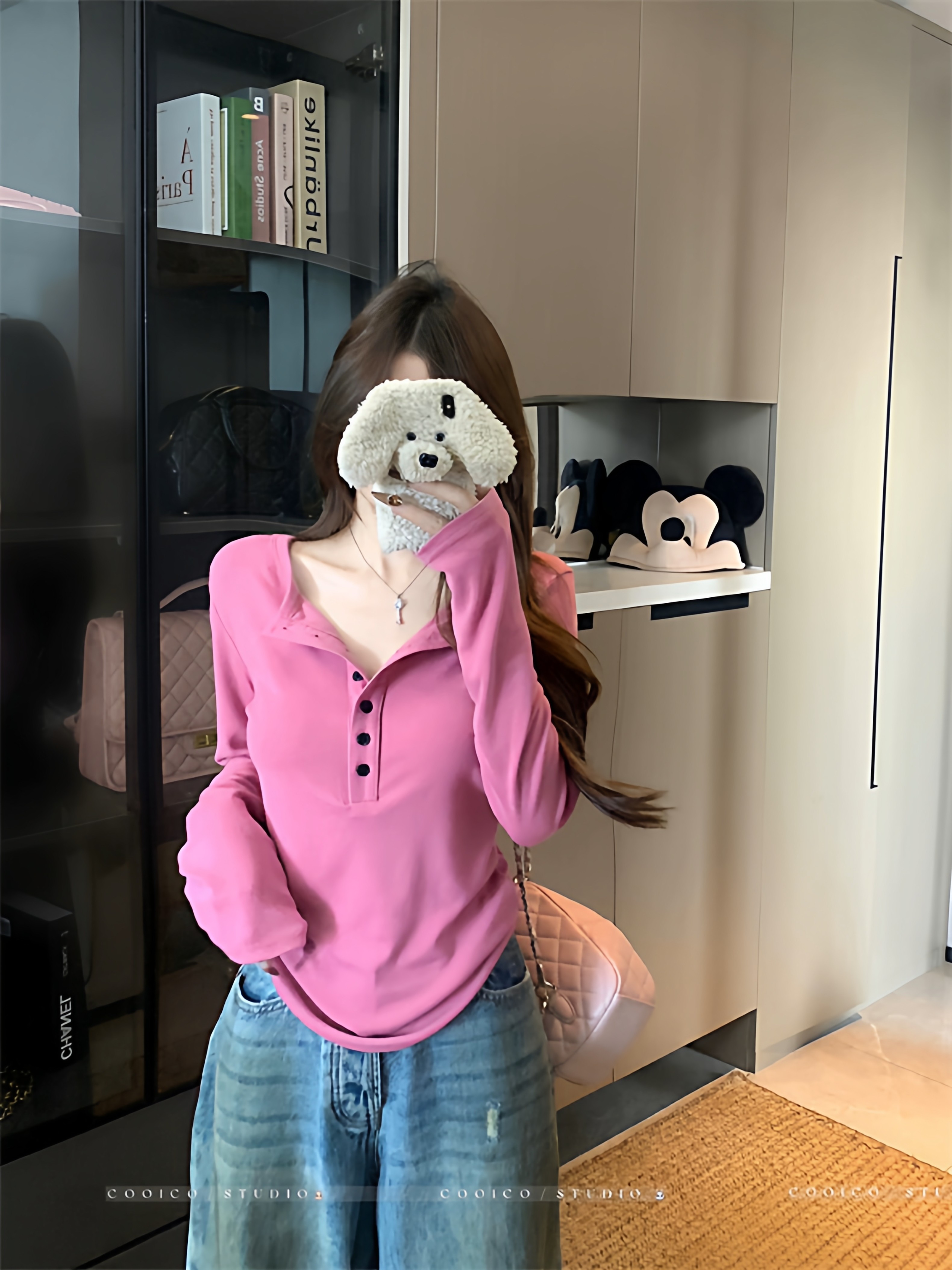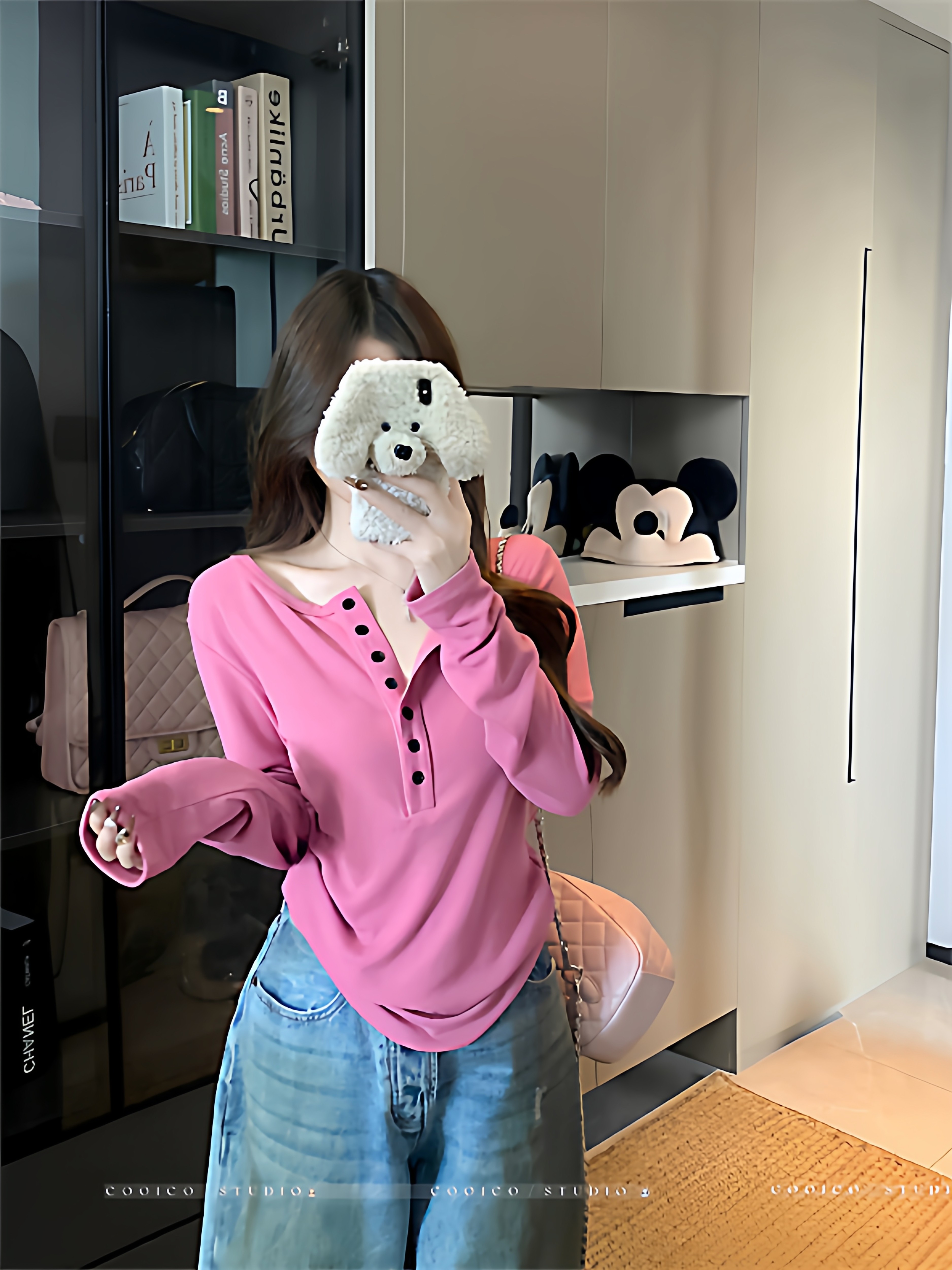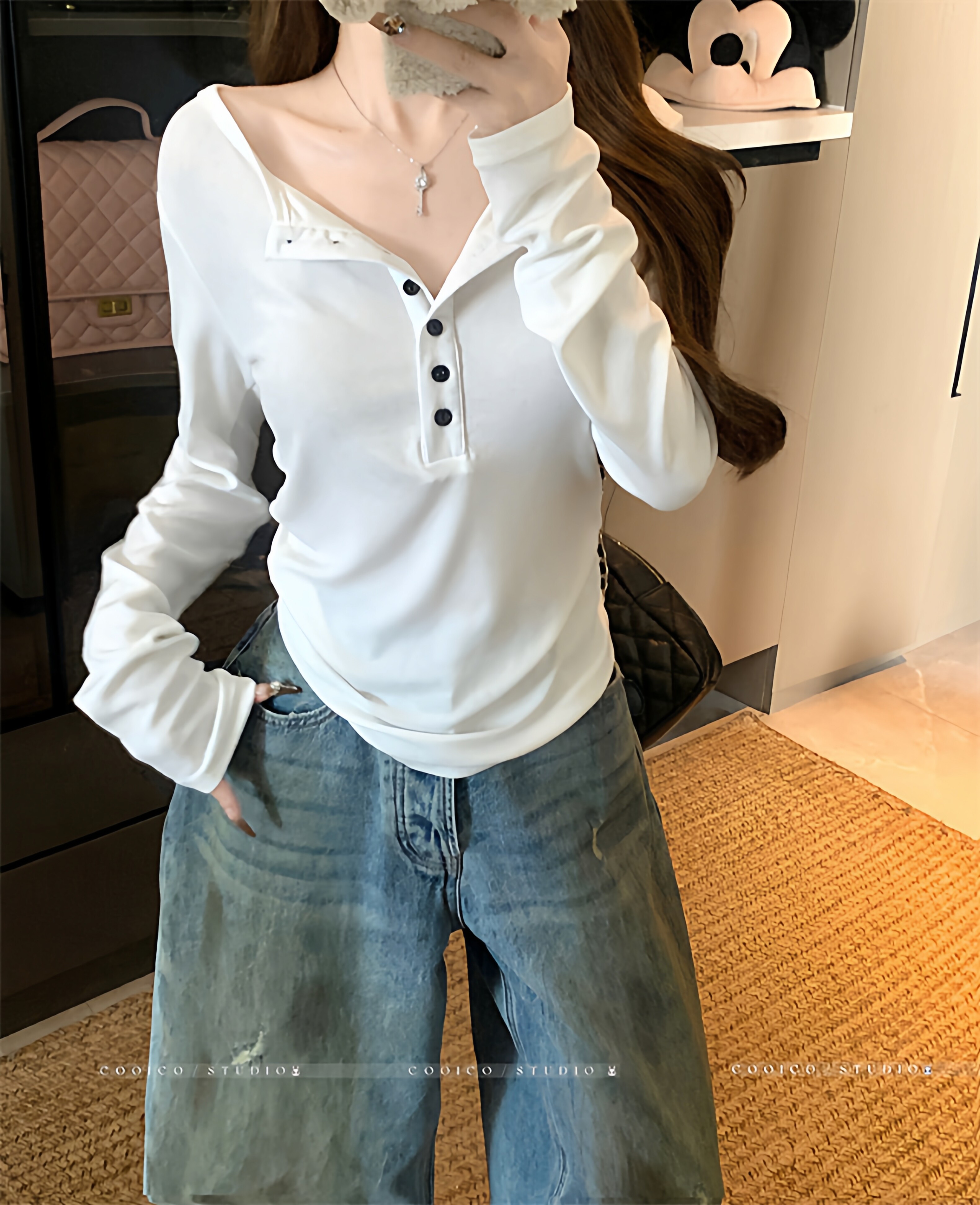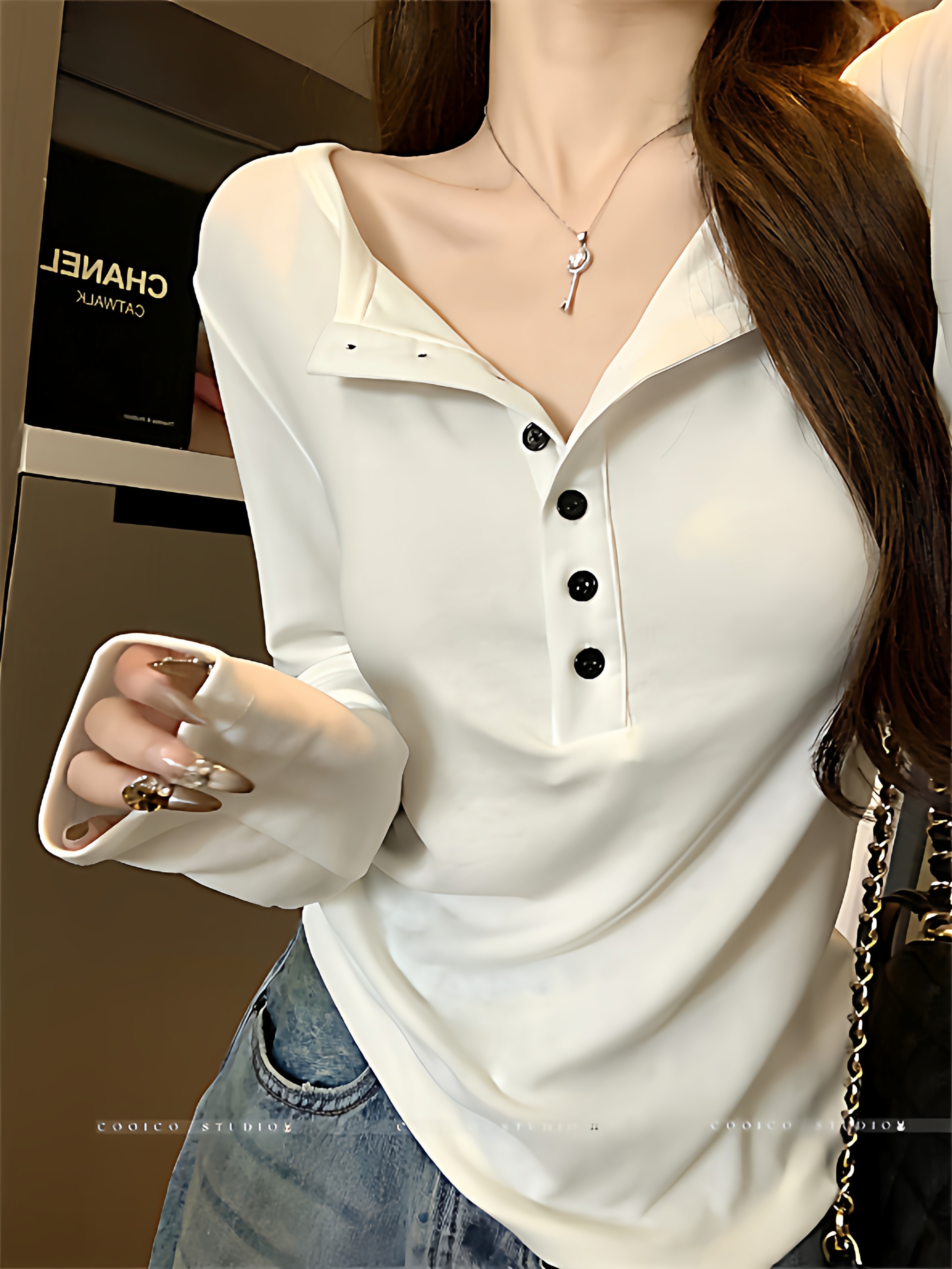 2025 New Spring and Autumn Korean Style Loose Slimming Versatile Casual Stylish Long-Sleeve Button Design Top for Women