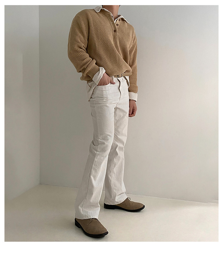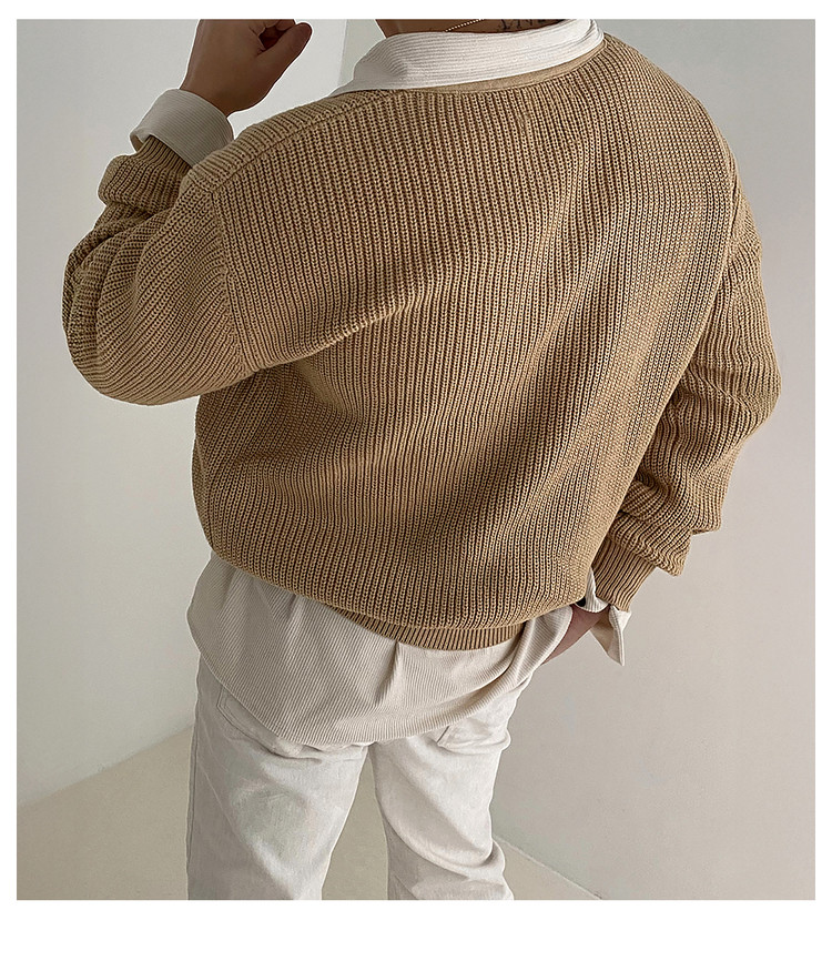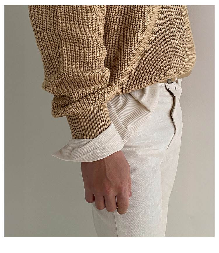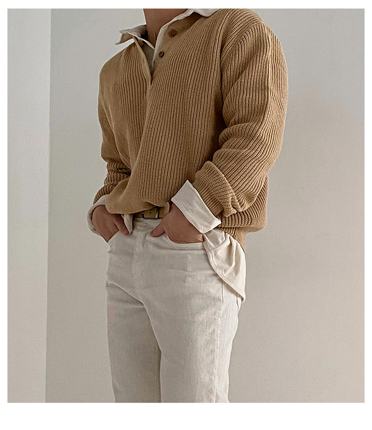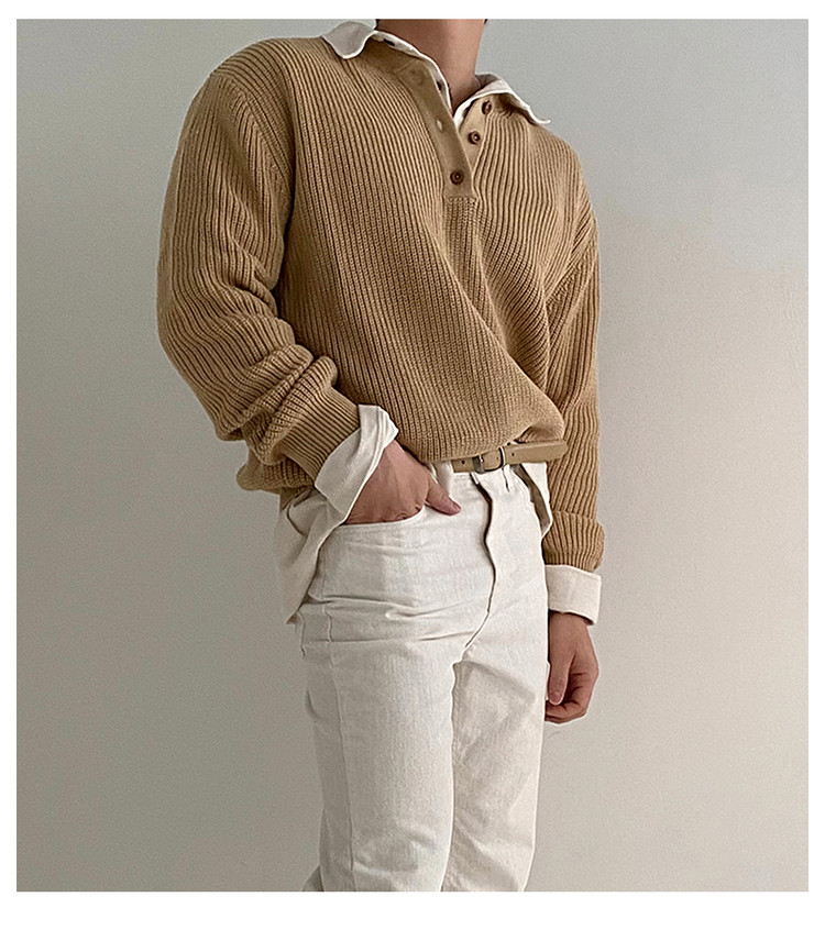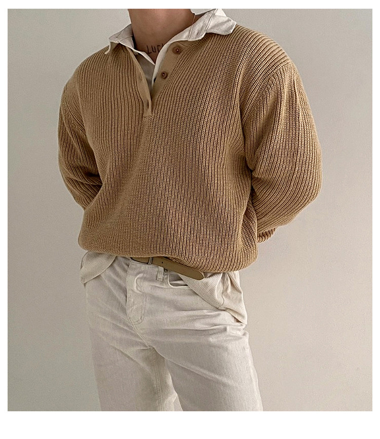 Henry collar sweater men's spring and autumn American retro old money style casual sweater high-end half-buttoned sweater