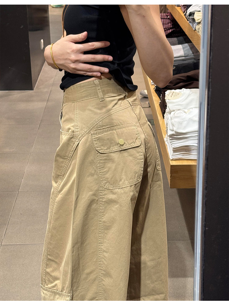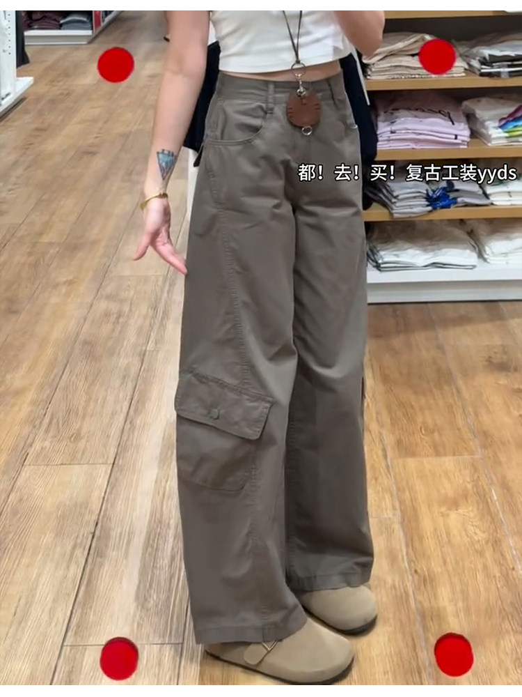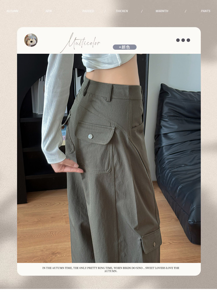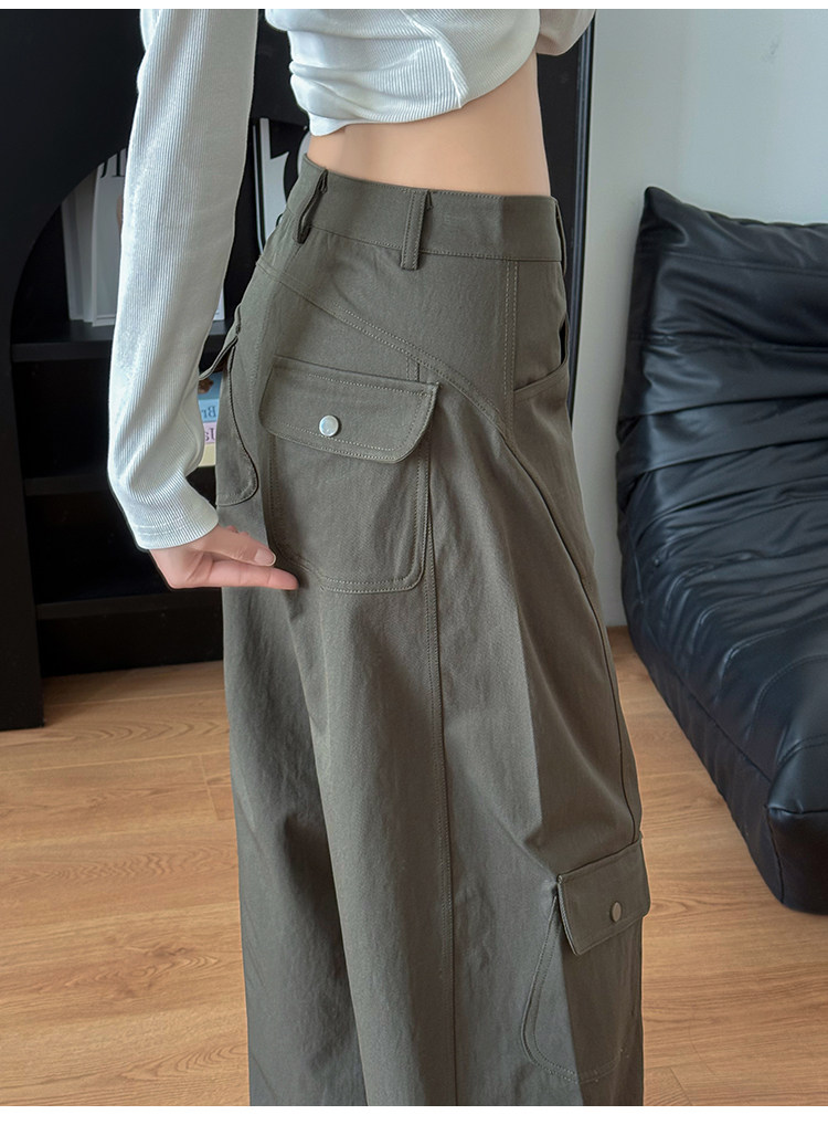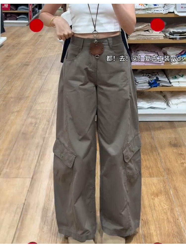 Retro Gray Green Scimitar Overalls Women's Autumn 2025 New High Waist Slim Small Sports Casual Wide Leg Pants