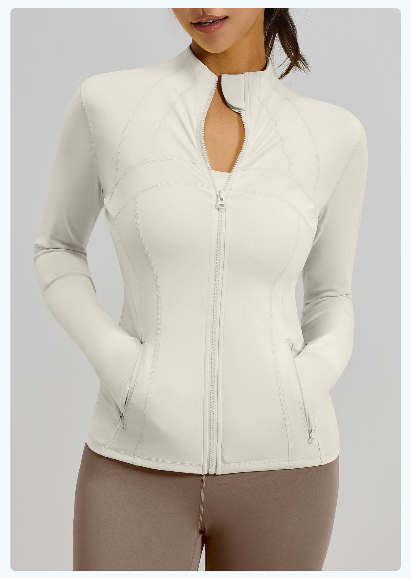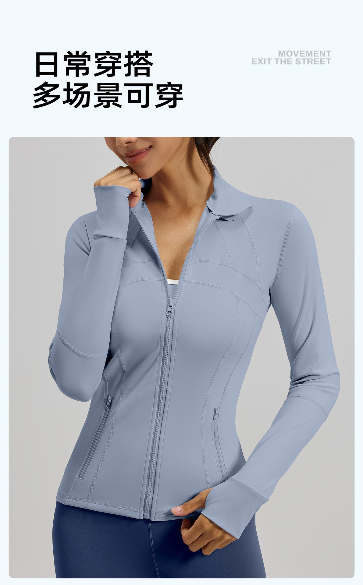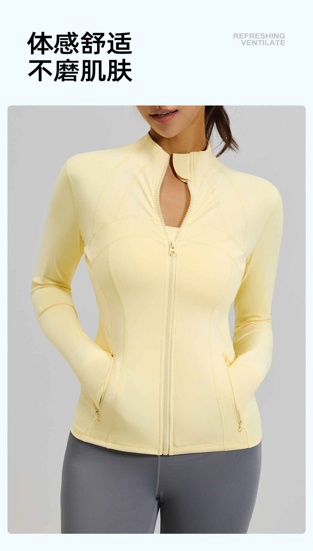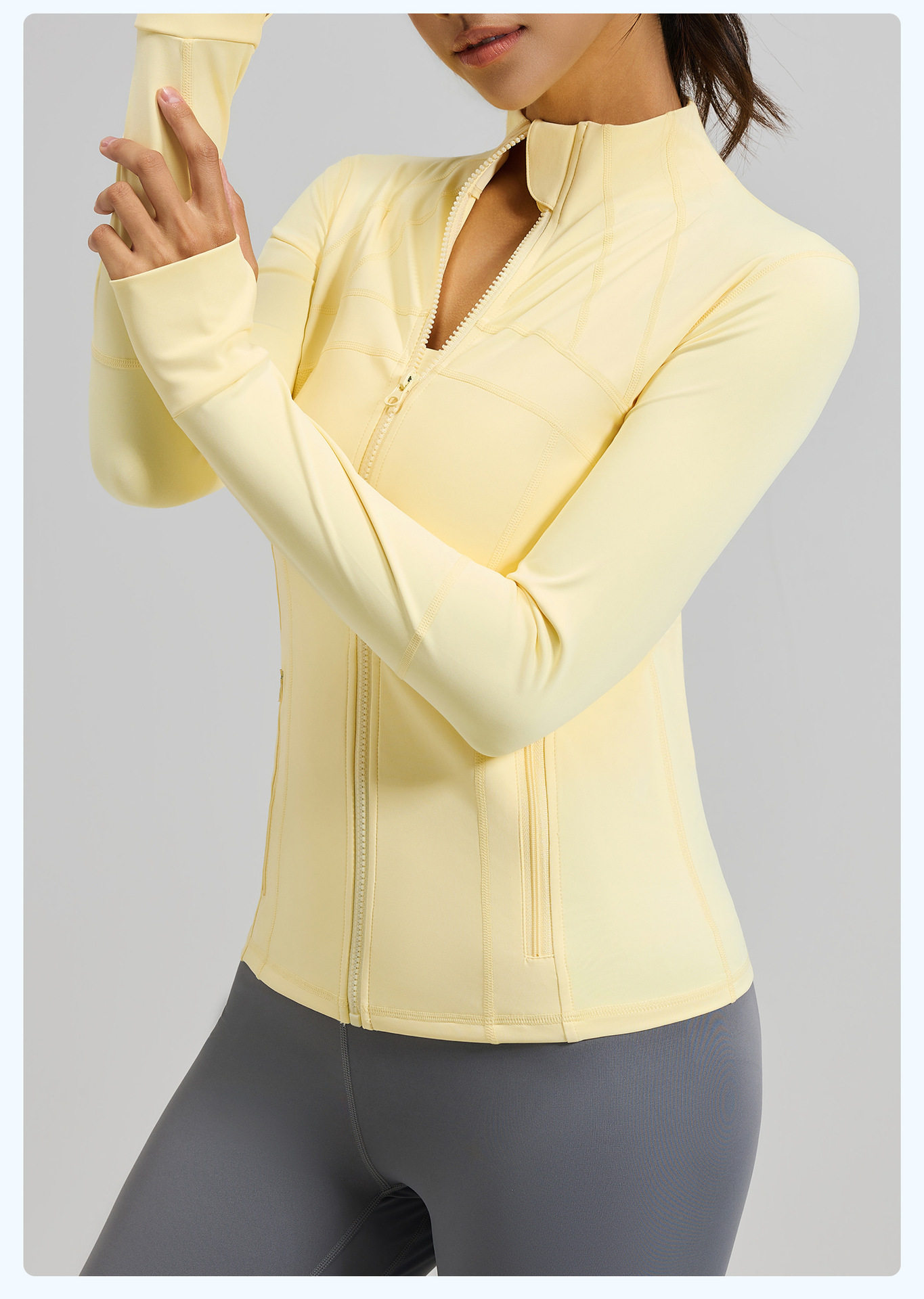 Spring and Autumn New Yoga Wear Jacket Women's Spliced ​​Slim Top Breathable Stretch Pocket Running Sports Fitness Jacket