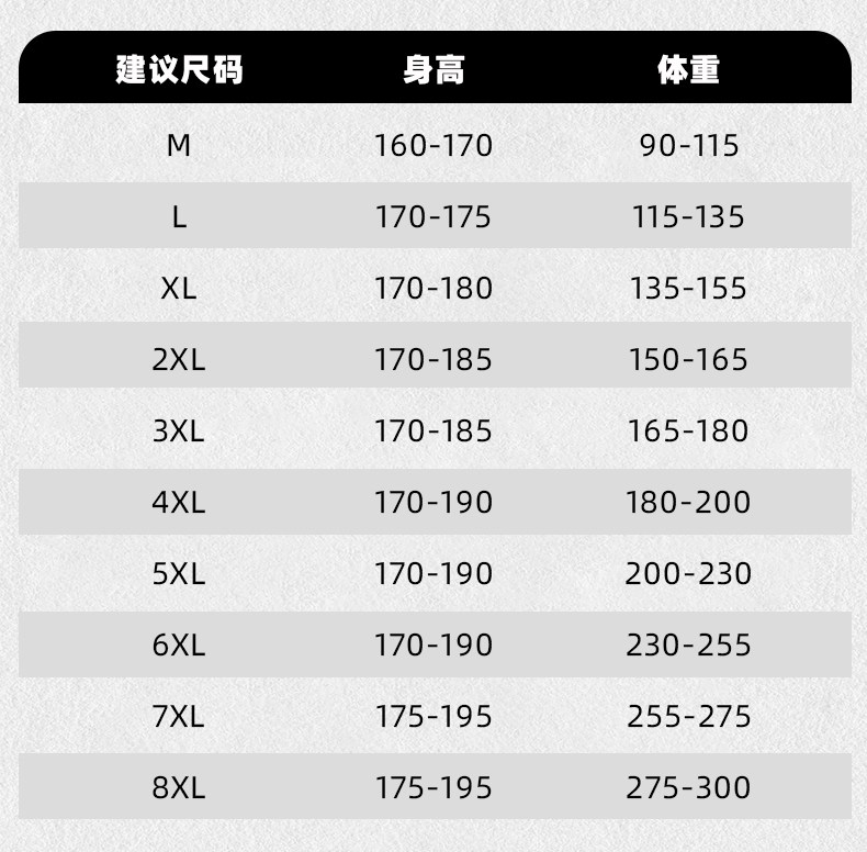 Size 3XL,7XL,2XL,4XL,XL,8XL,6XL,5XL,M,L