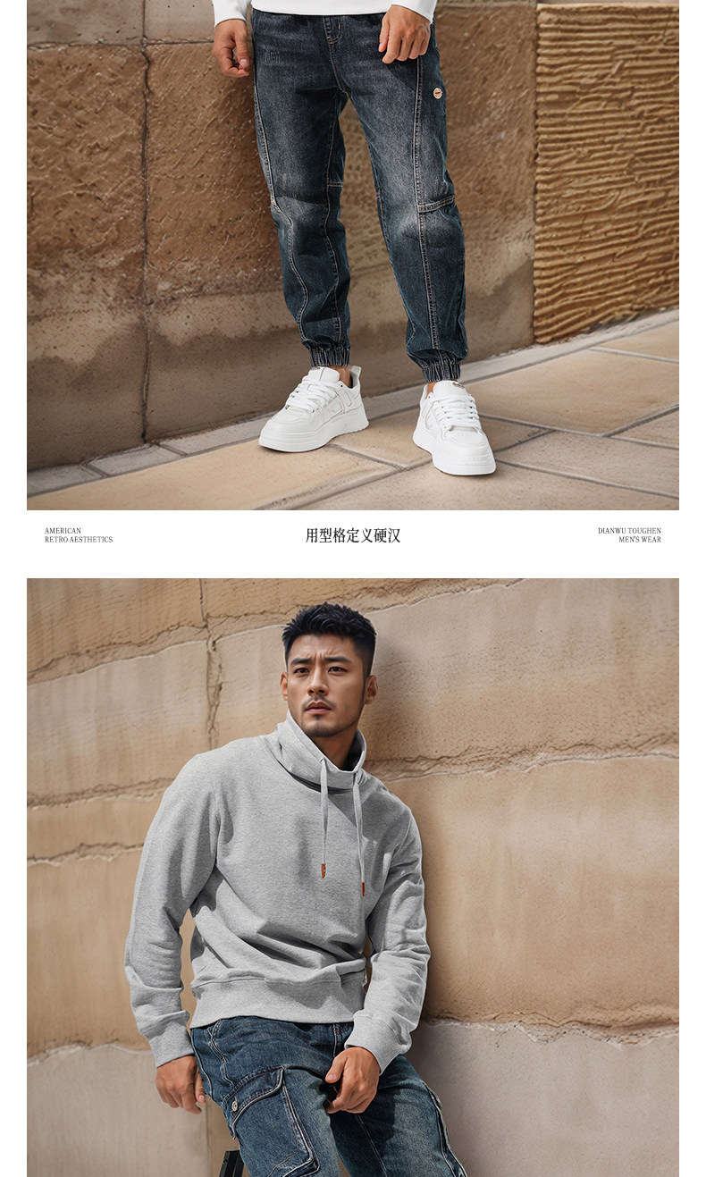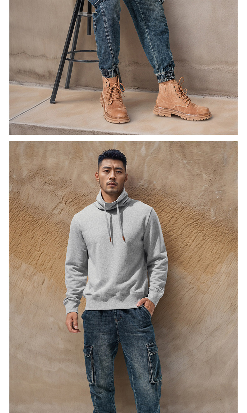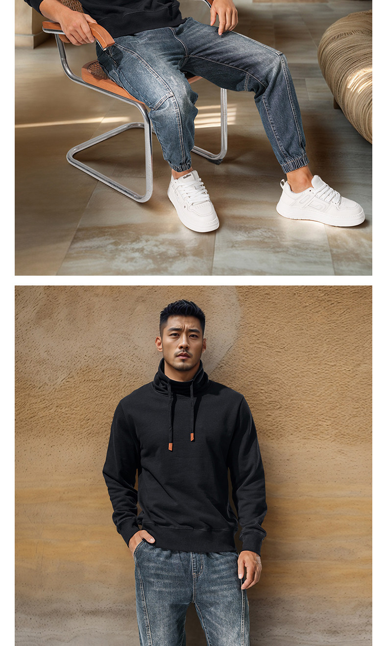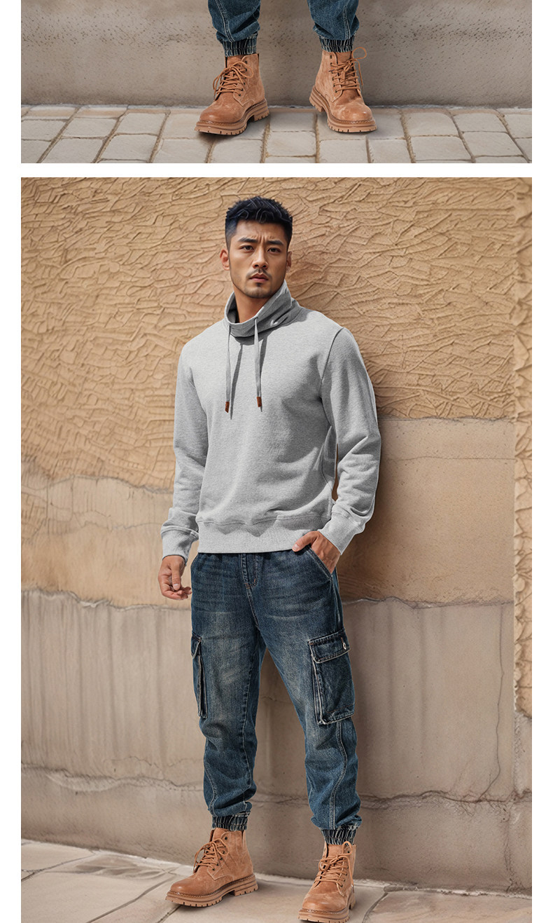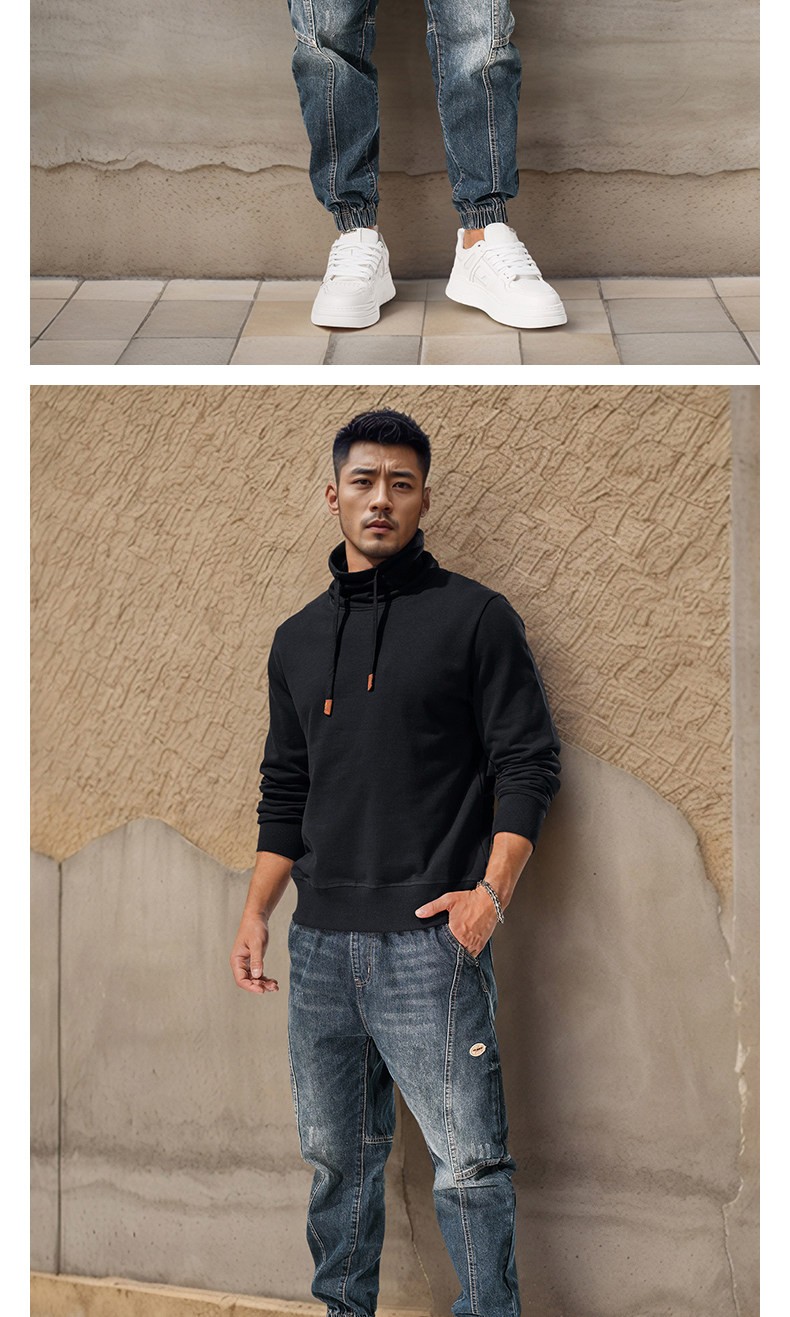 Autumn and winter turtleneck sweatshirt for men, stand-up collar, sports and leisure, stiff, thick, windproof and warm top, jacket, high-end