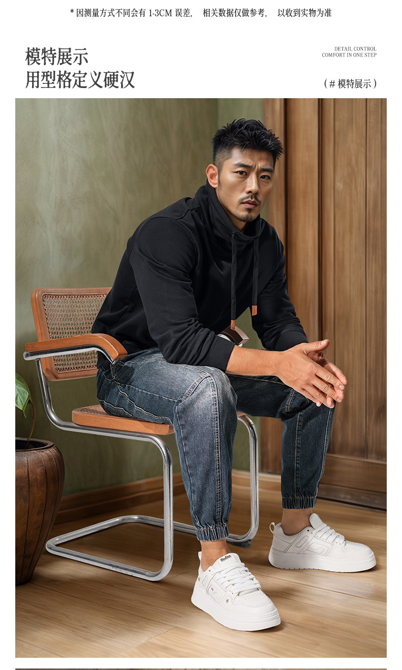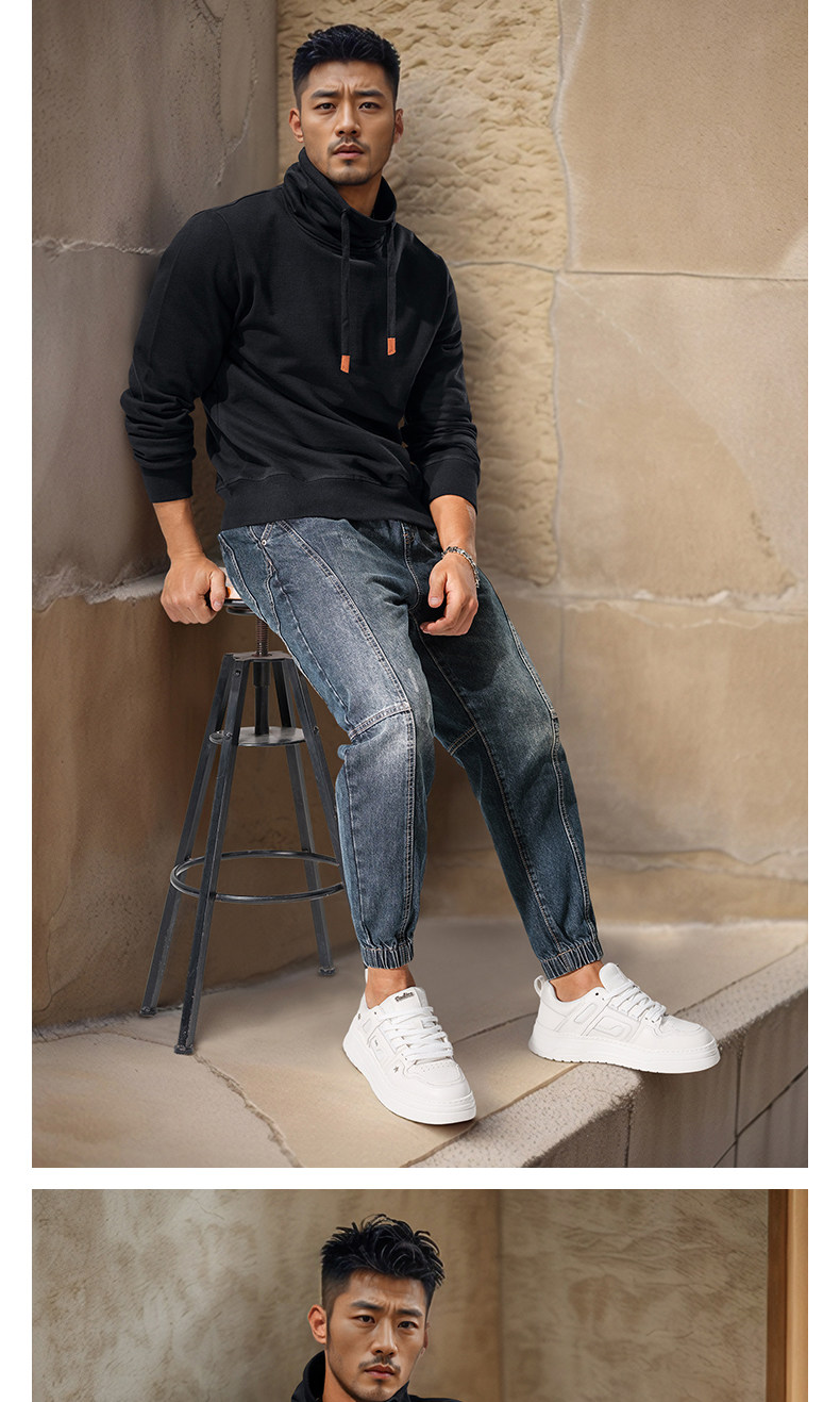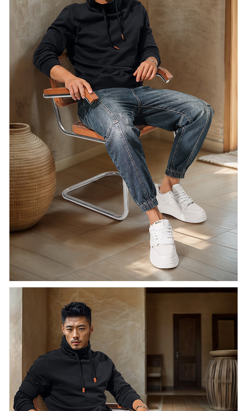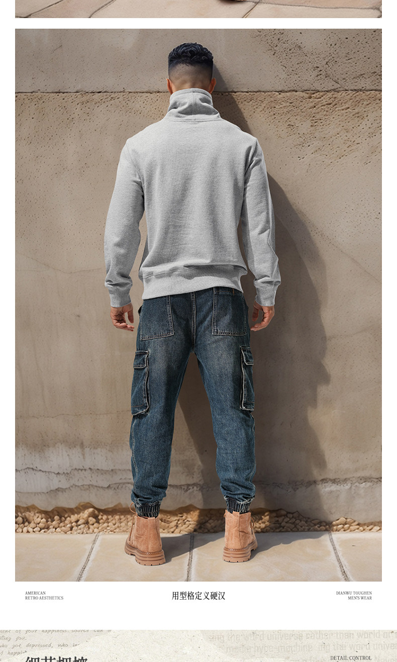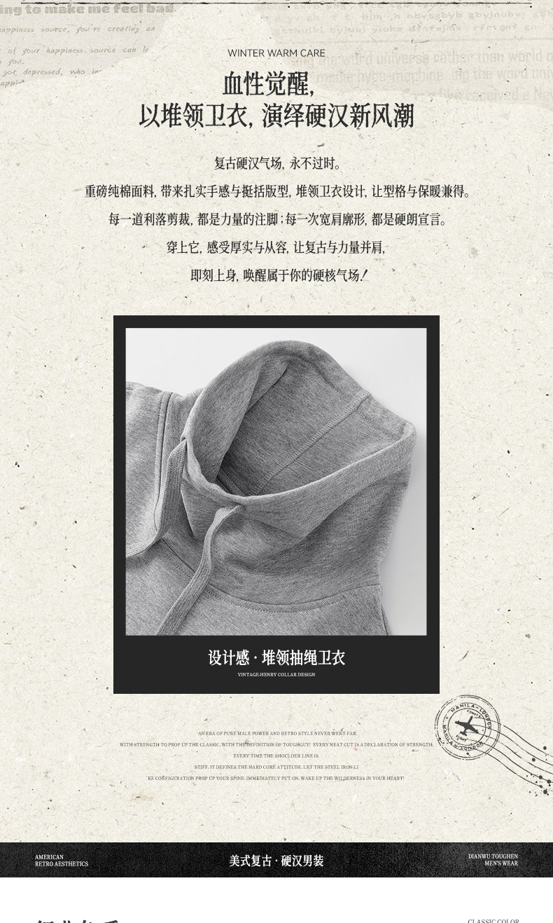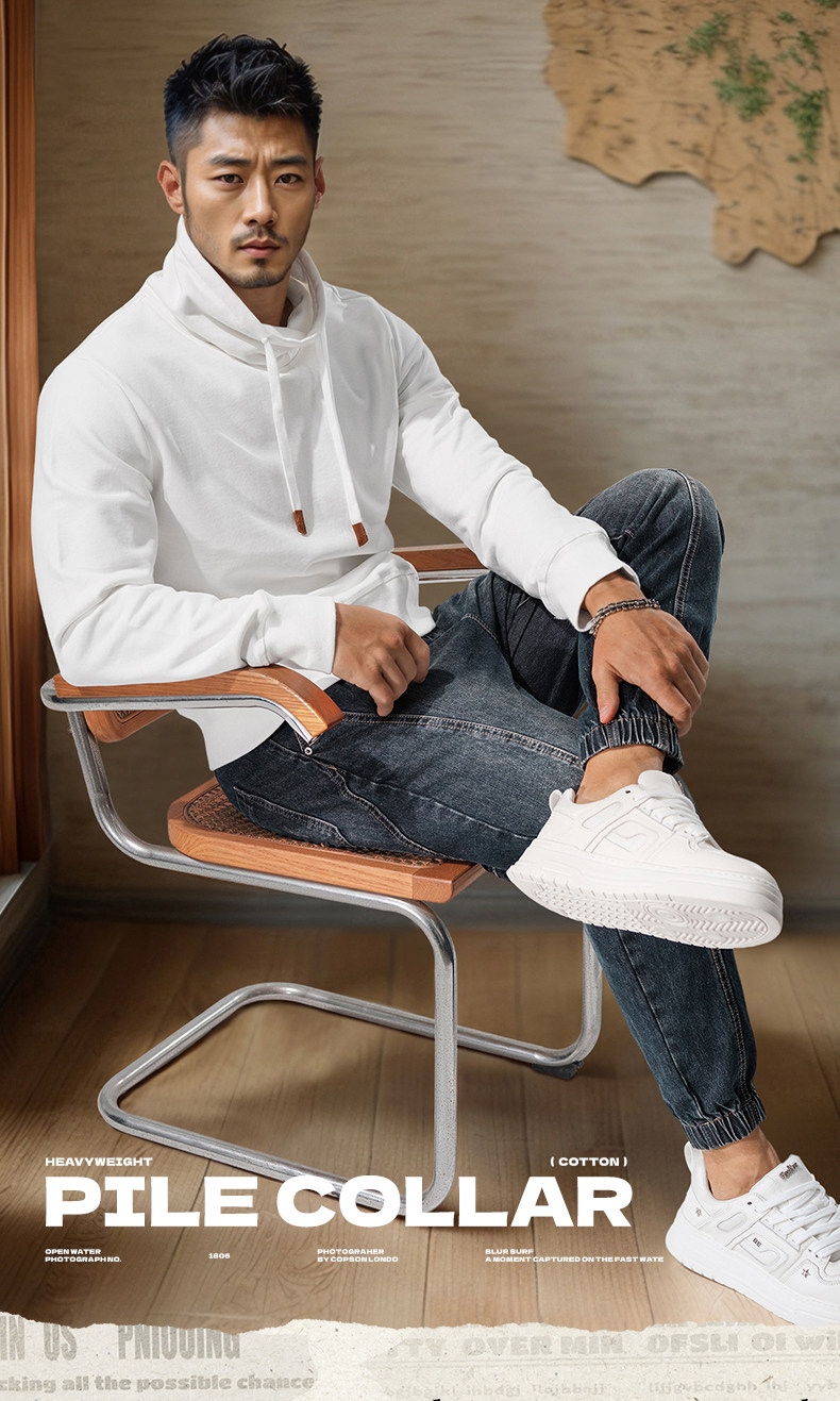 Autumn and winter turtleneck sweatshirt for men, stand-up collar, sports and leisure, stiff, thick, windproof and warm top, jacket, high-end