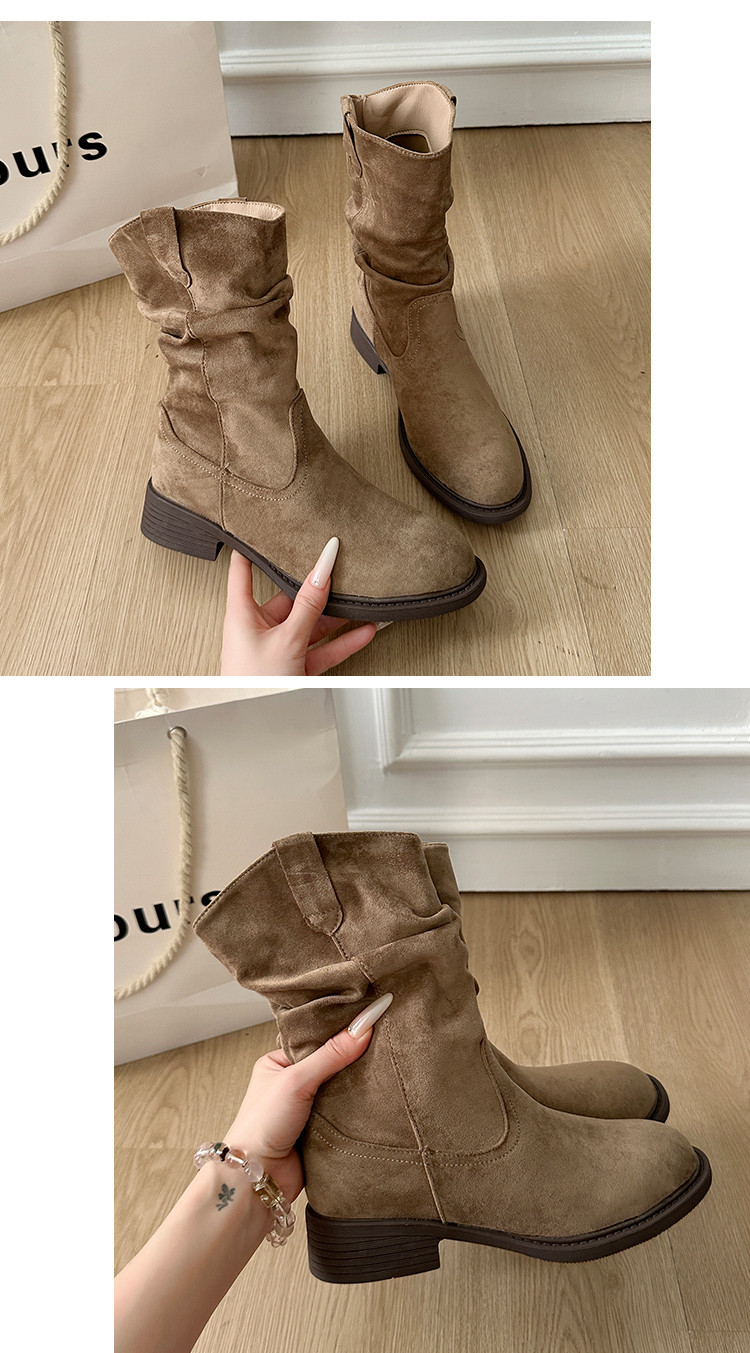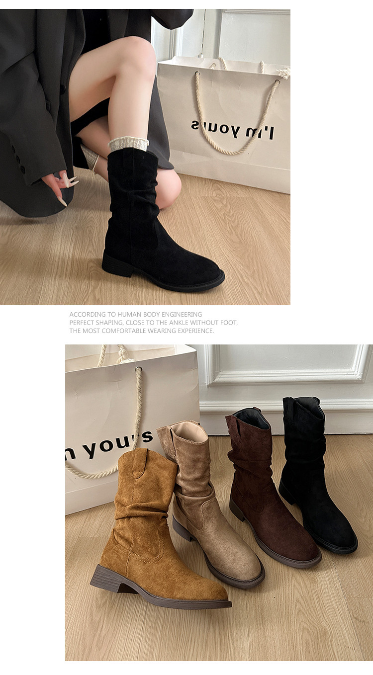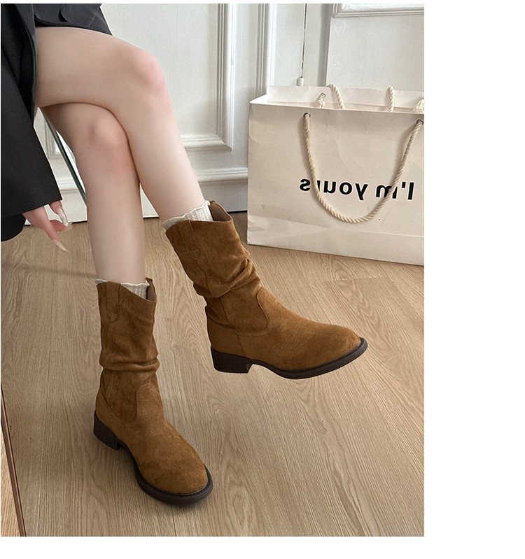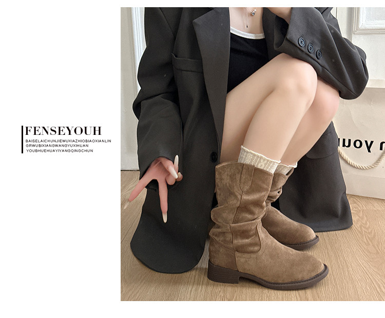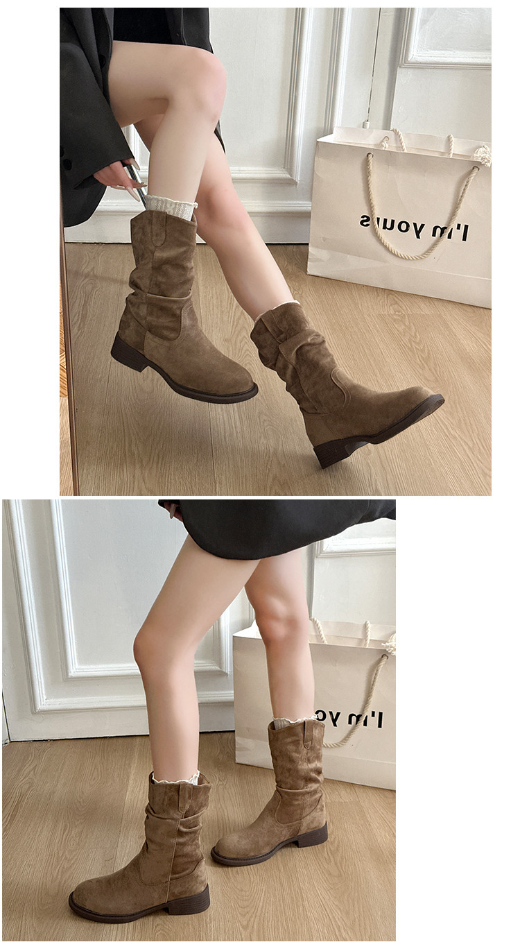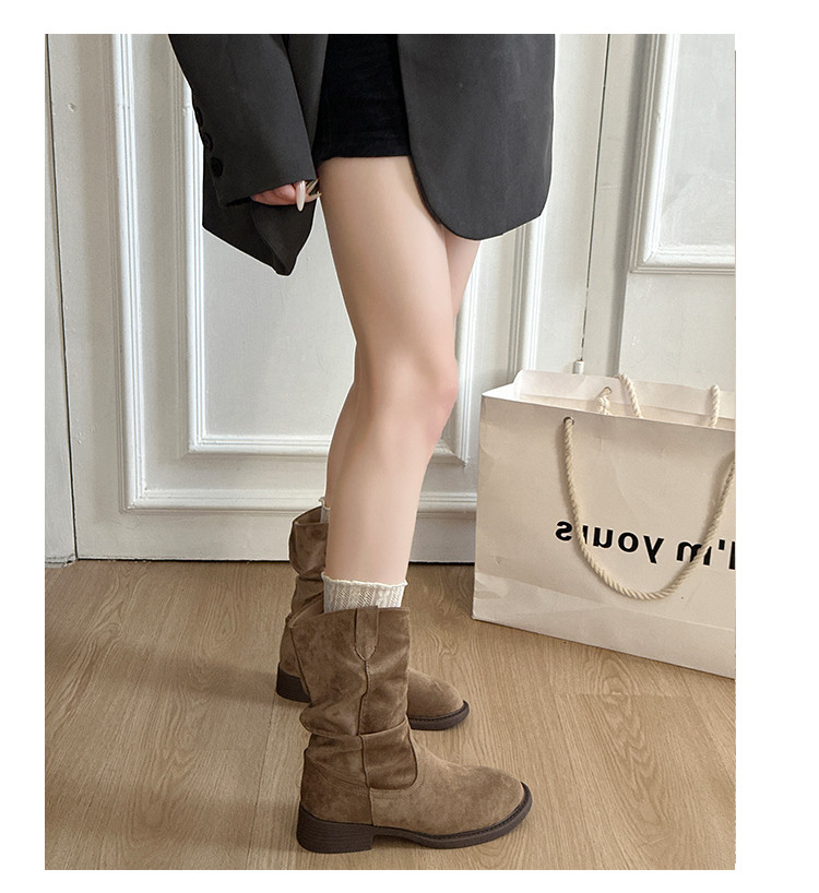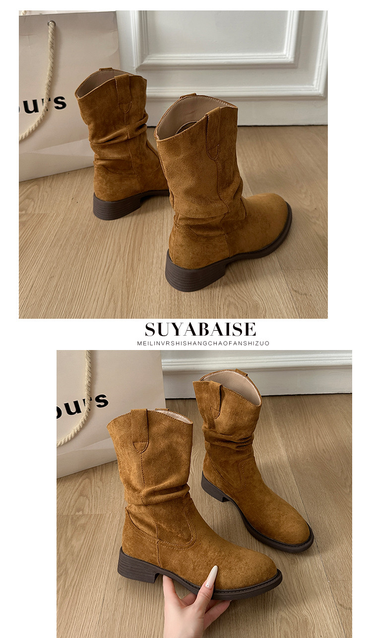 Wasteland style Maillard mid-calf boots for women 2025 new autumn western denim boots Birkenstock short boots Martin boots