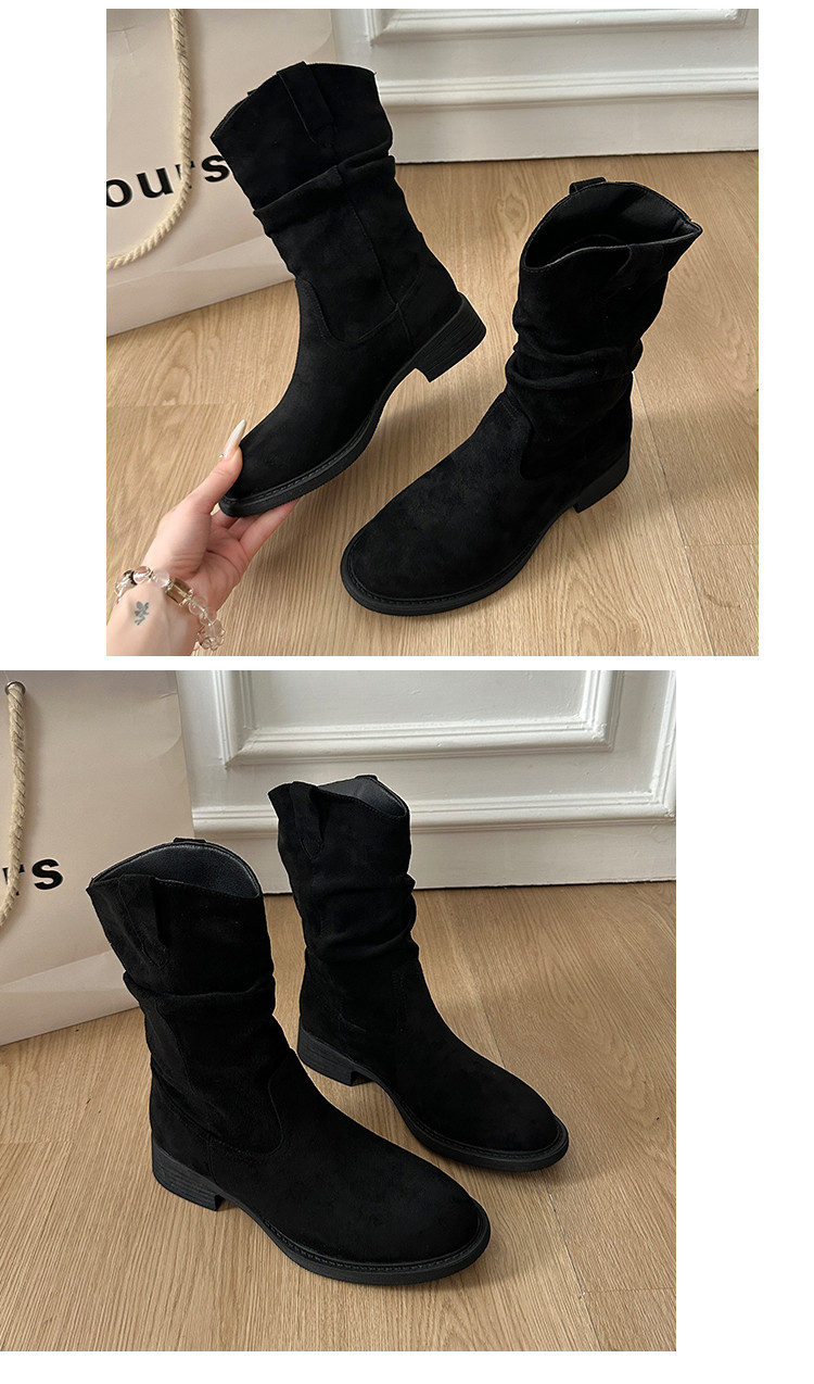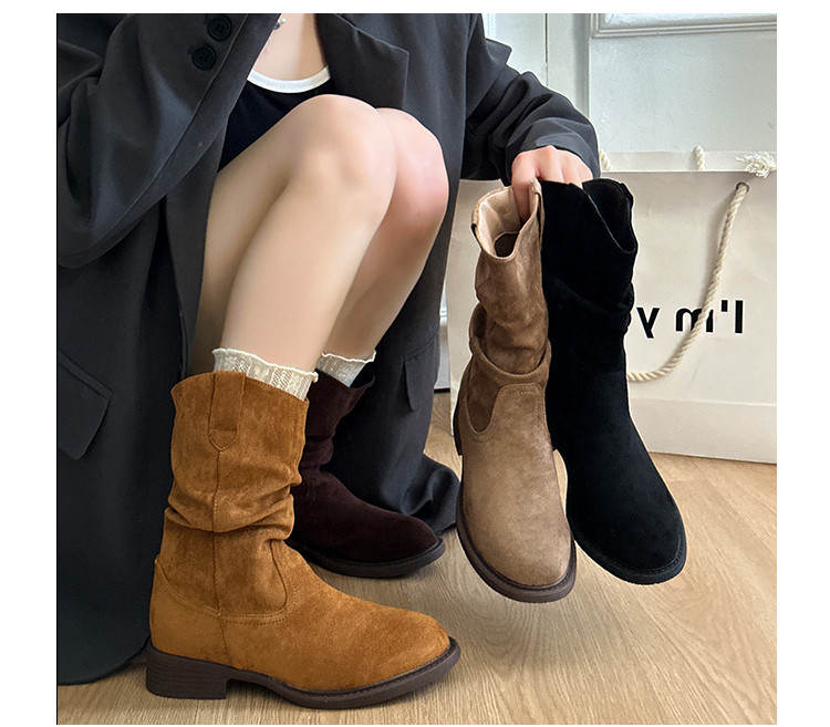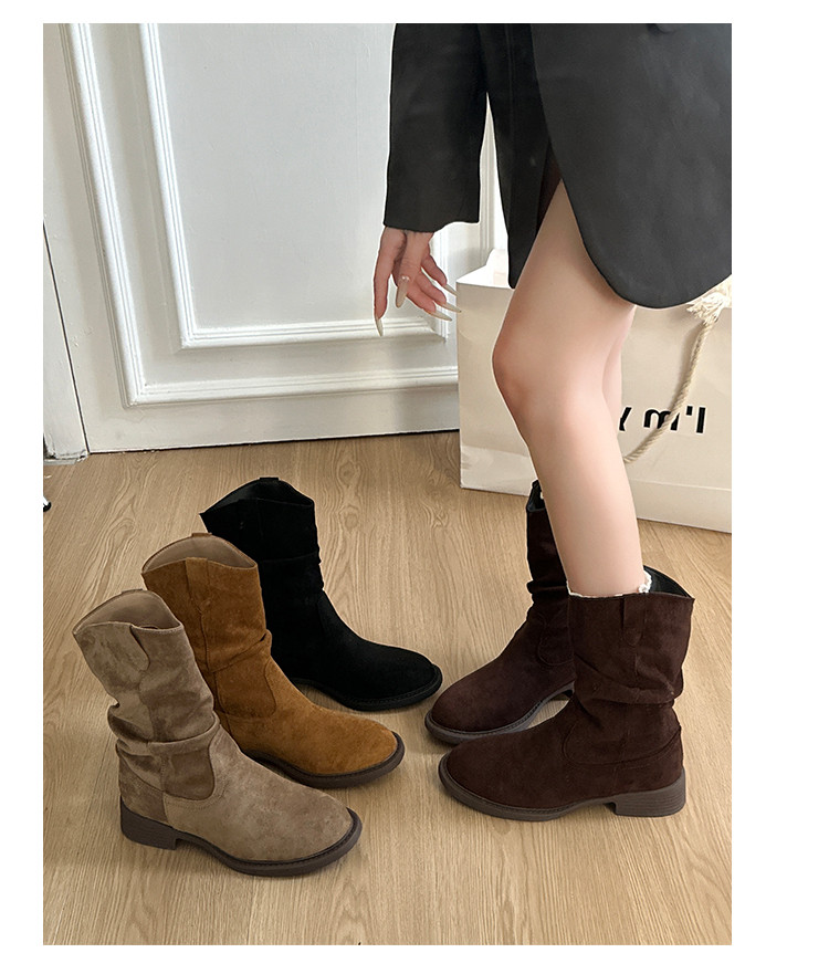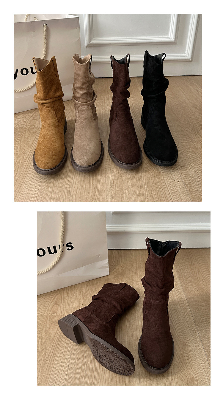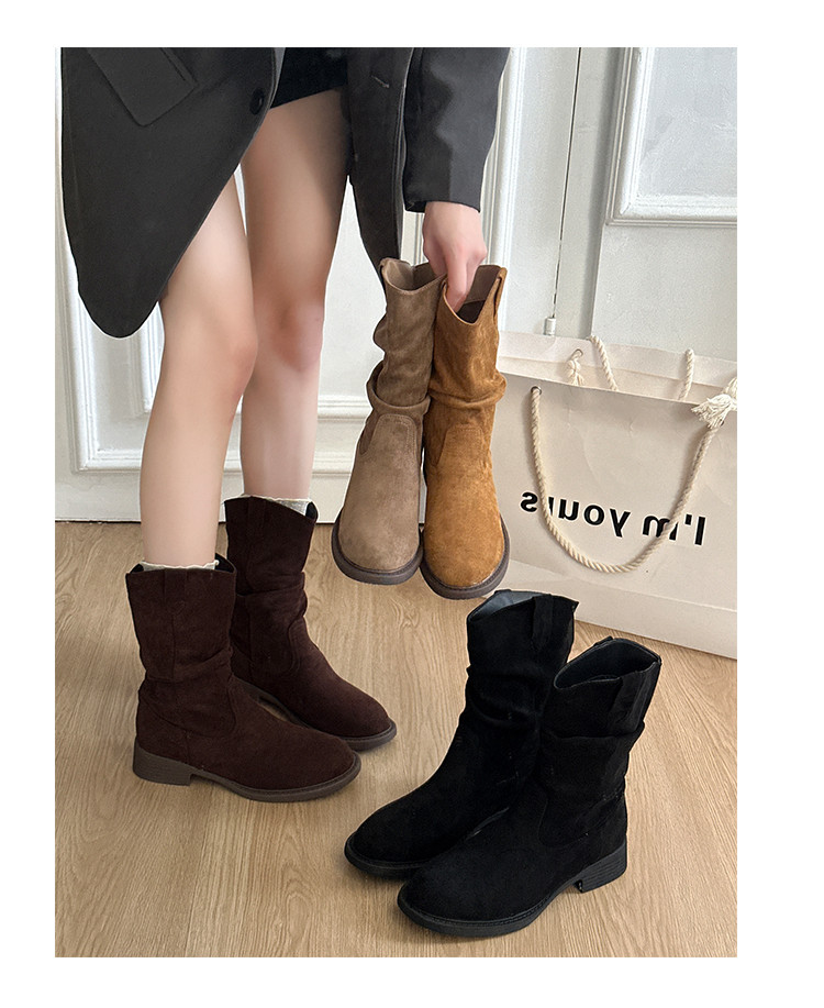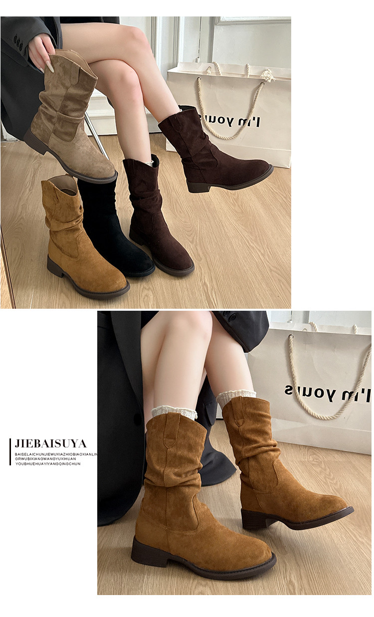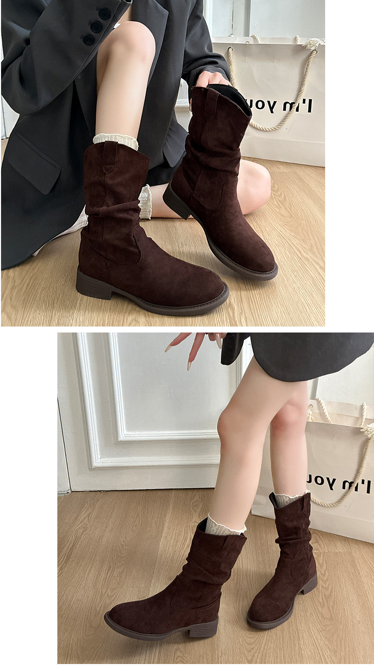 Wasteland style Maillard mid-calf boots for women 2025 new autumn western denim boots Birkenstock short boots Martin boots