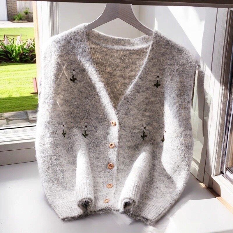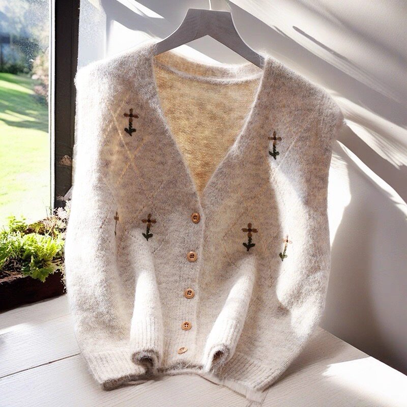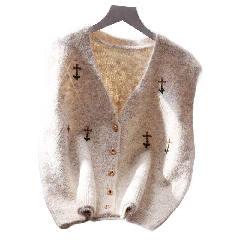 Authentic brother's new 2025 autumn and winter Korean handmade floral V-neck wool knitted vest vest and sweater
