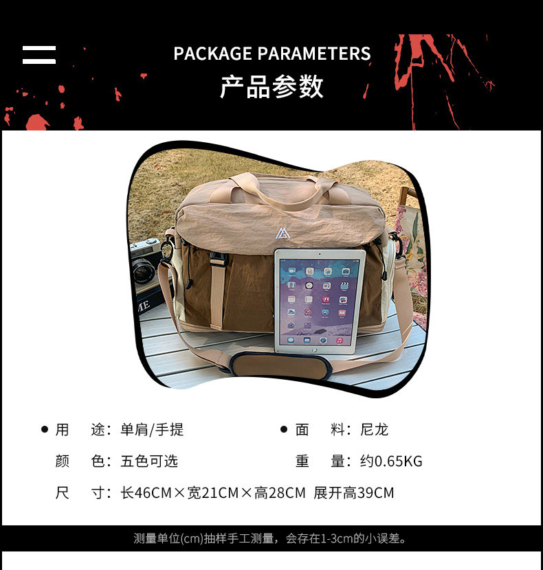 Hand-held short-distance travel bag, women's large-capacity travel luggage bag, multifunctional bag that can be hung in a trolley case, waterproof