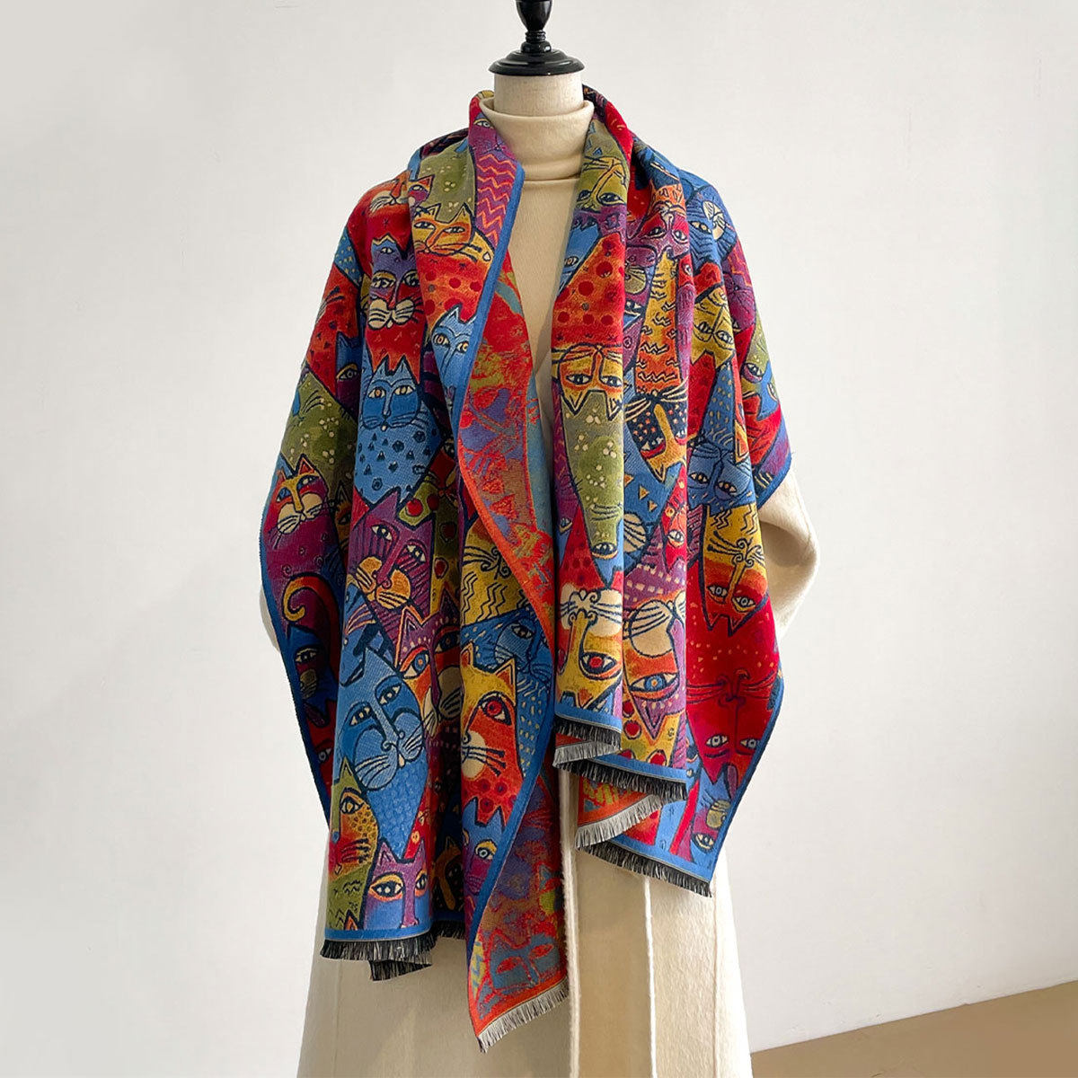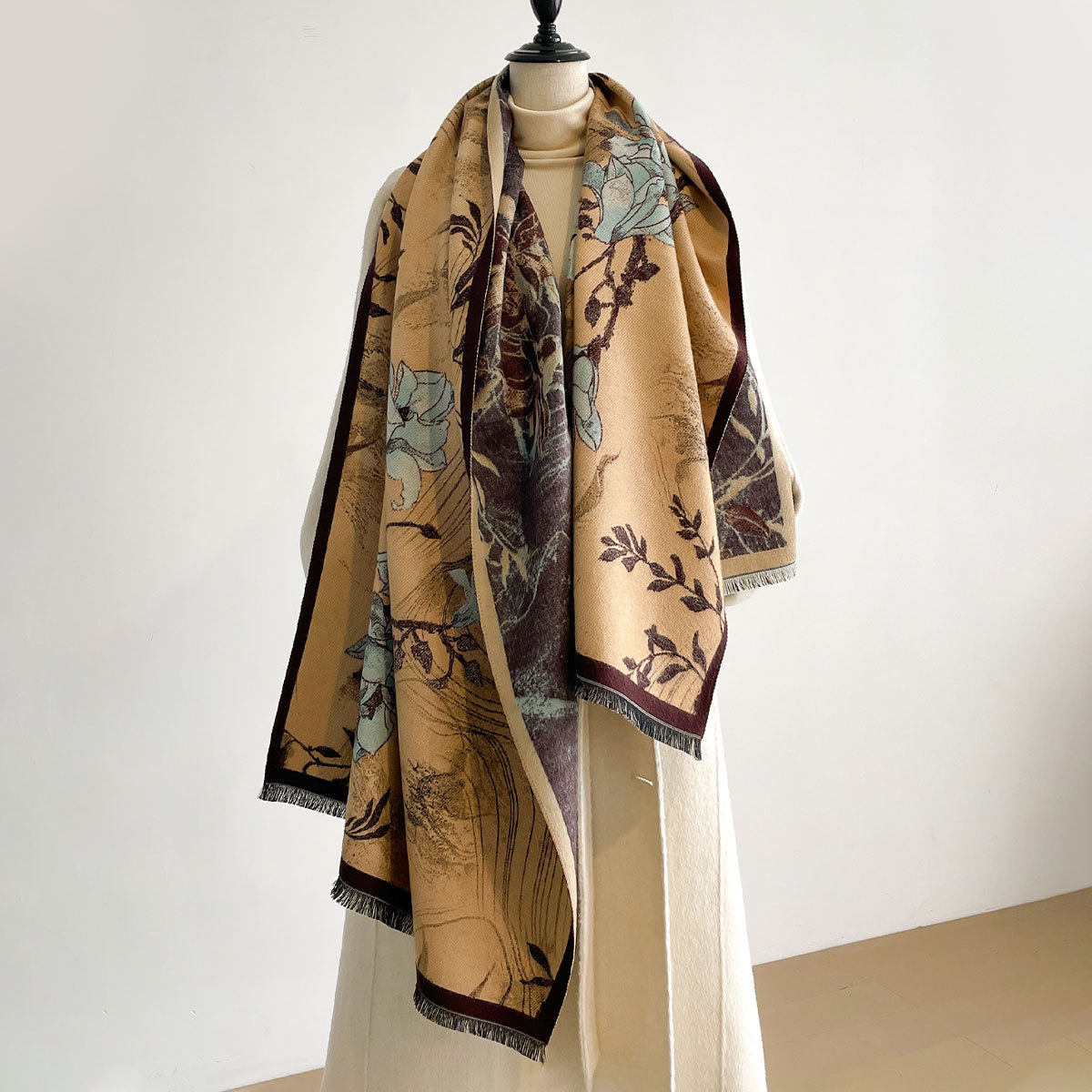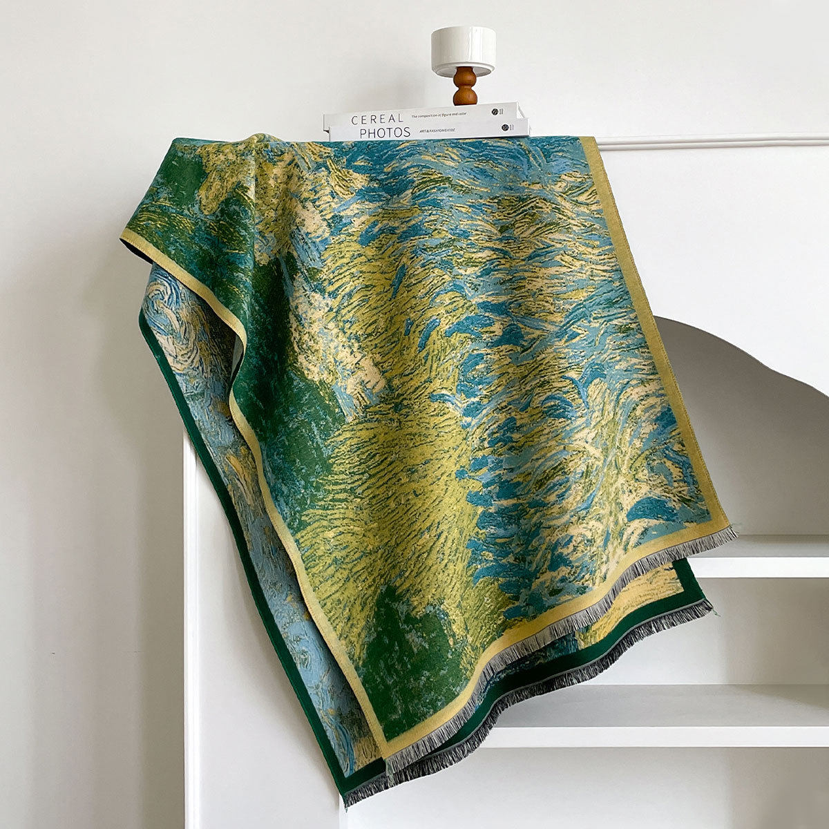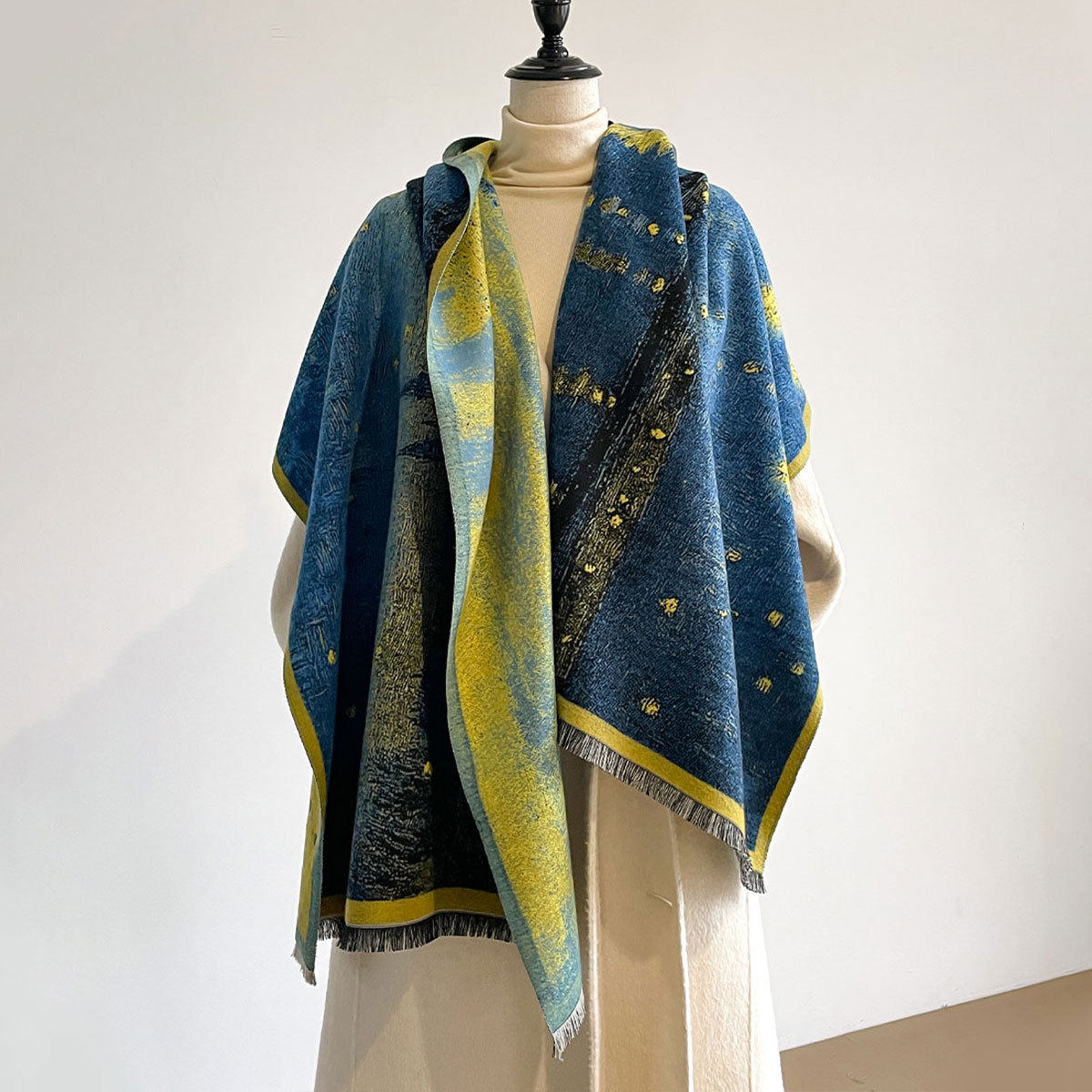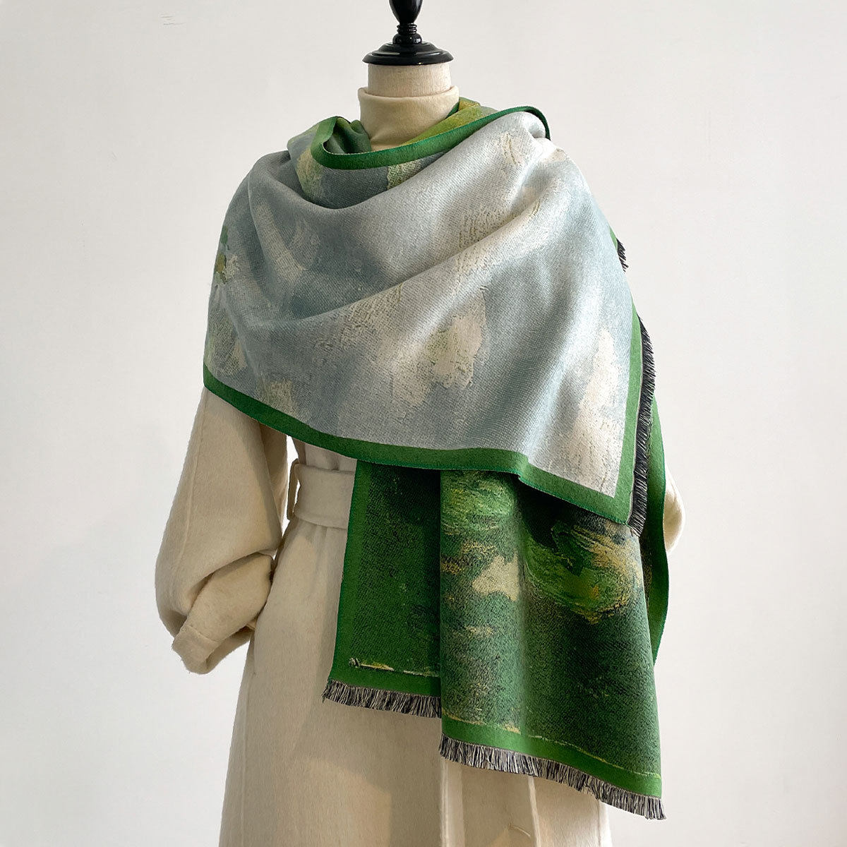 Autumn and winter new imitation cashmere scarf women's literary retro oil painting abstract tassel warm plus velvet shawl scarf