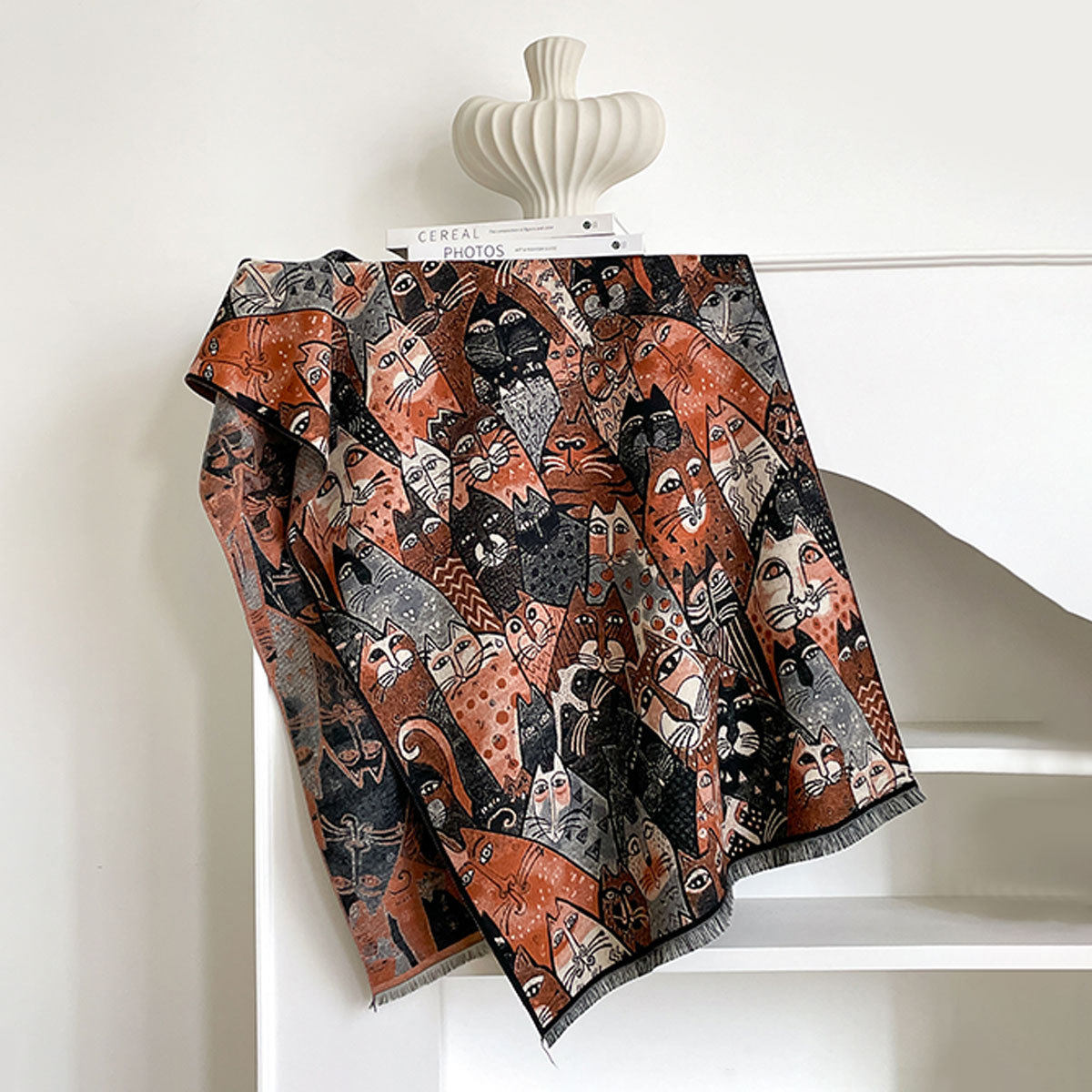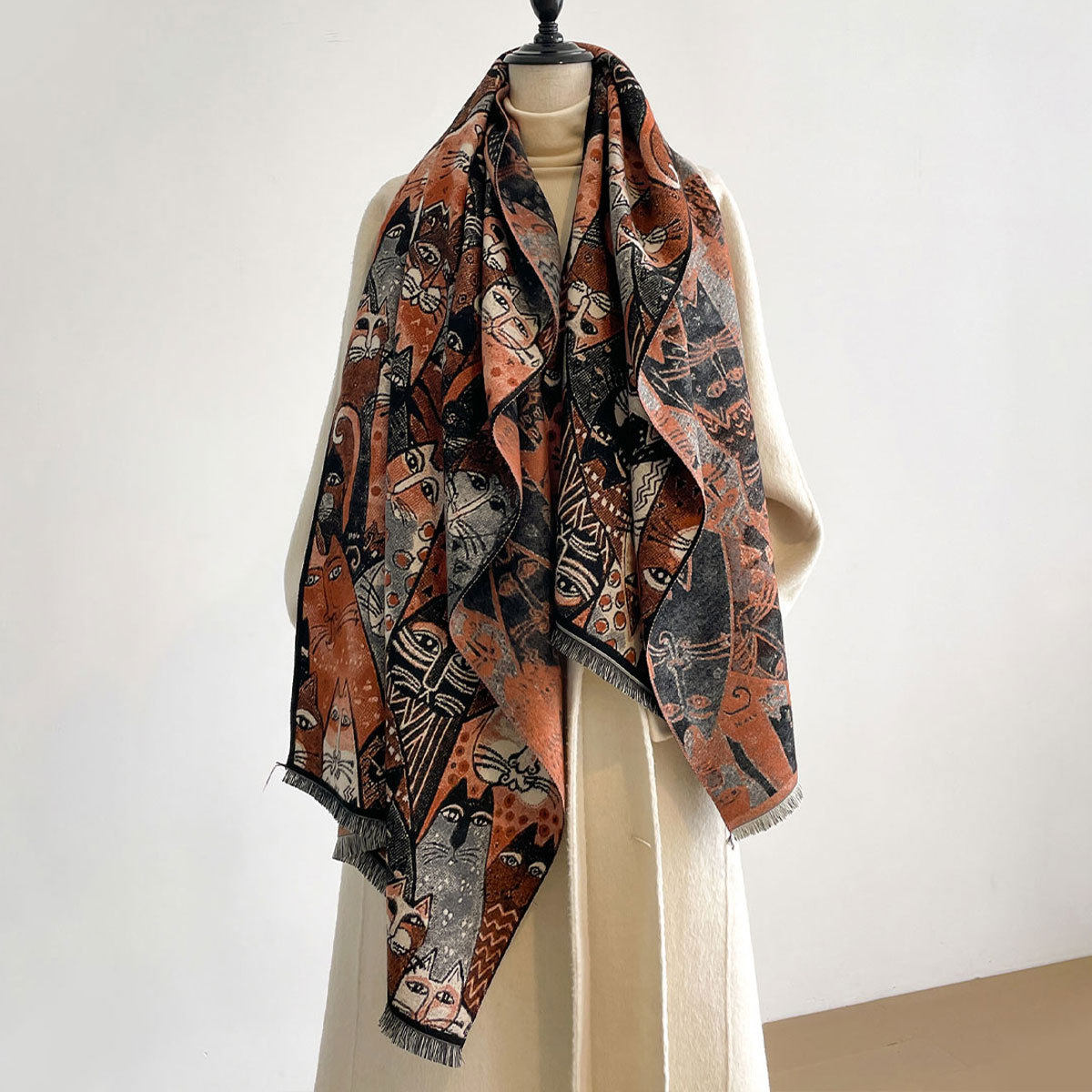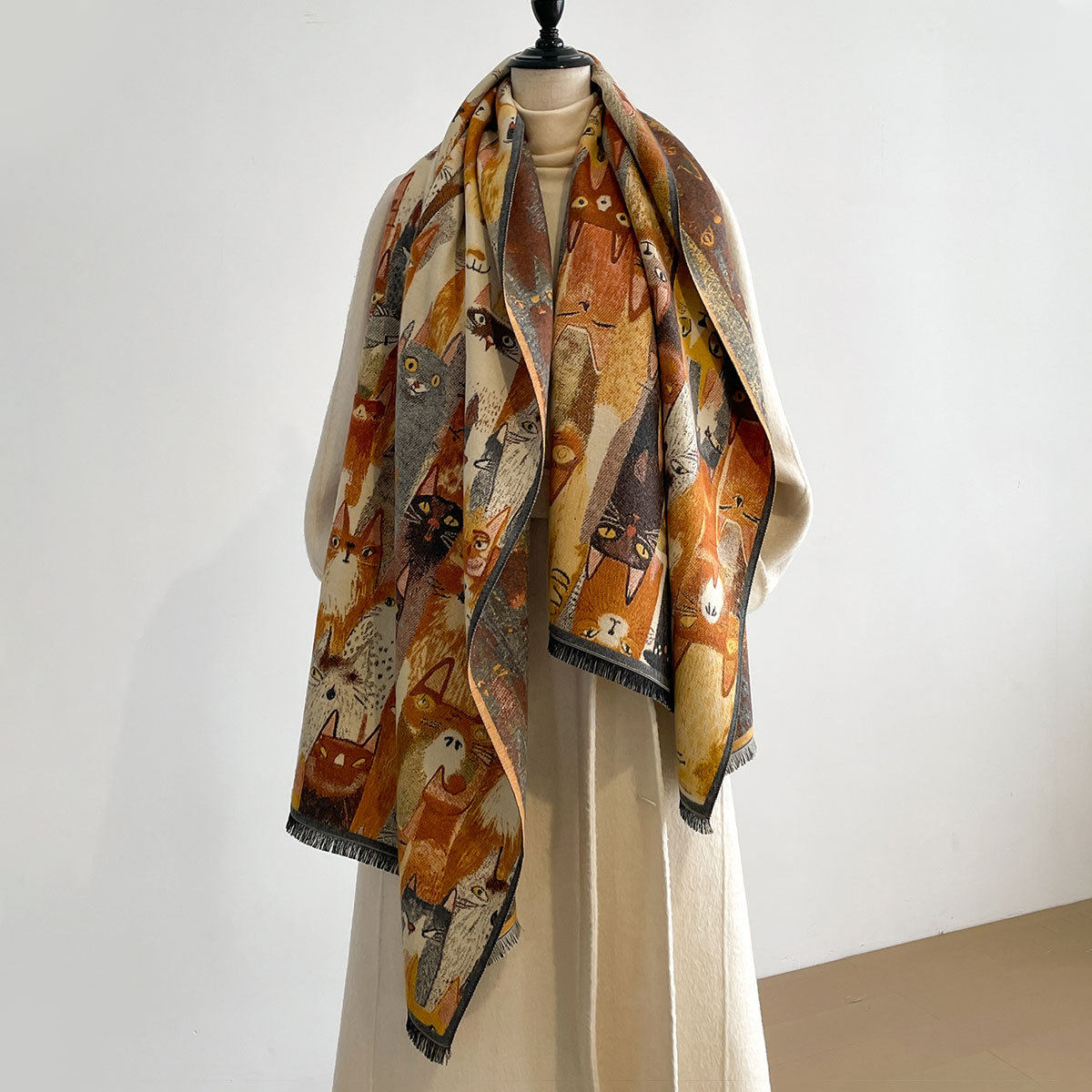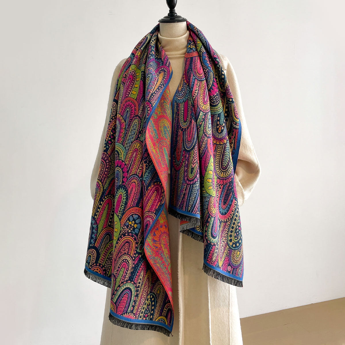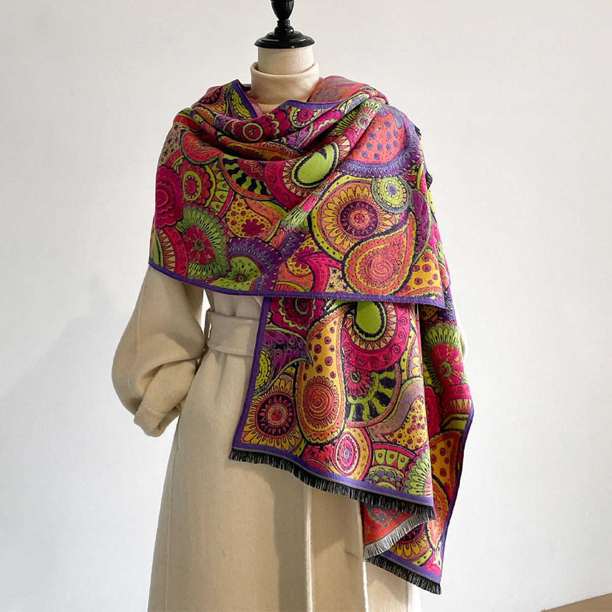 Autumn and winter new imitation cashmere scarf women's literary retro oil painting abstract tassel warm plus velvet shawl scarf