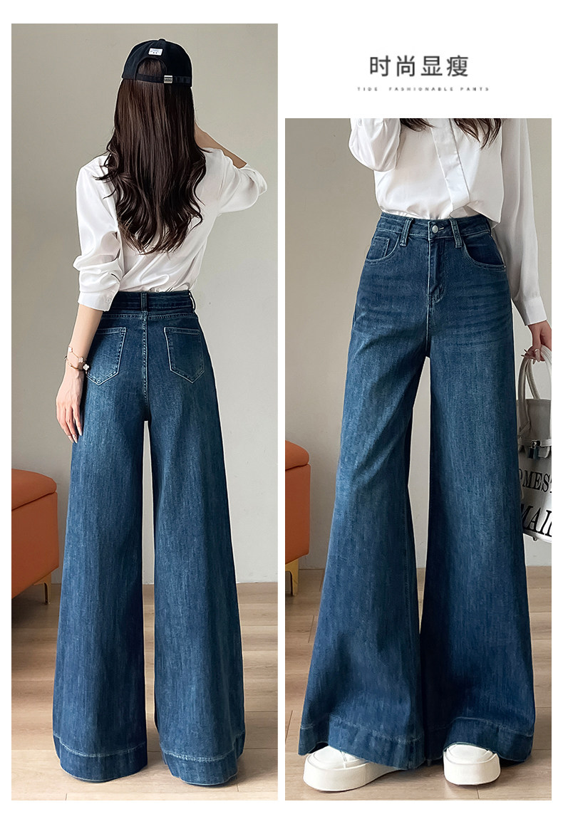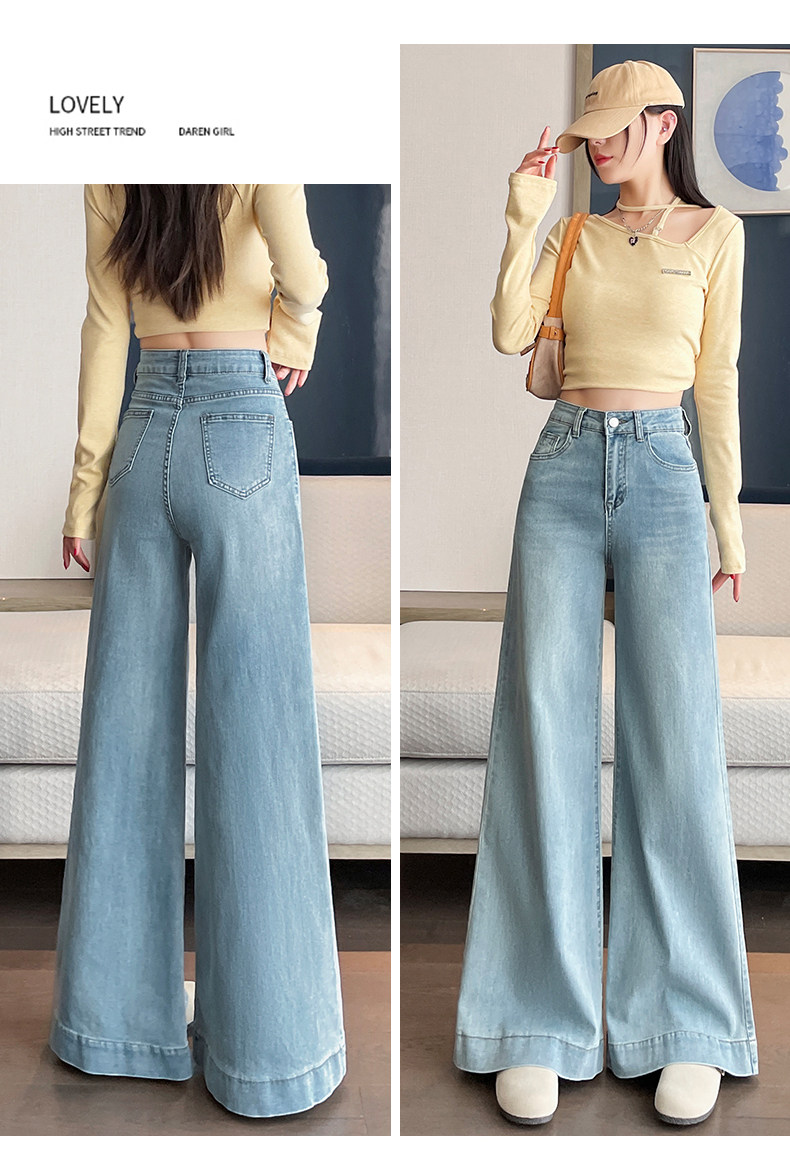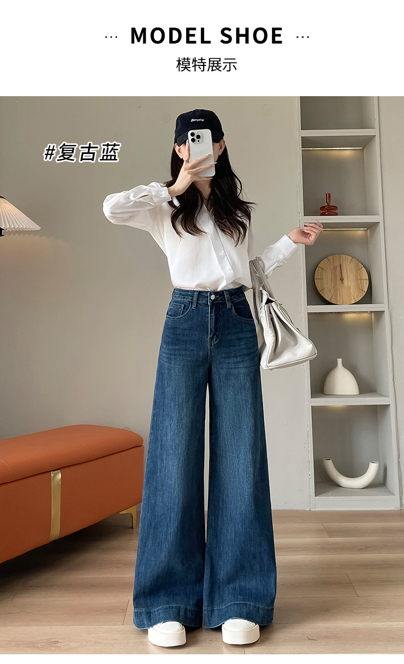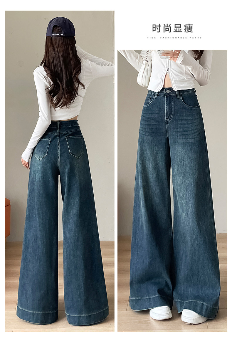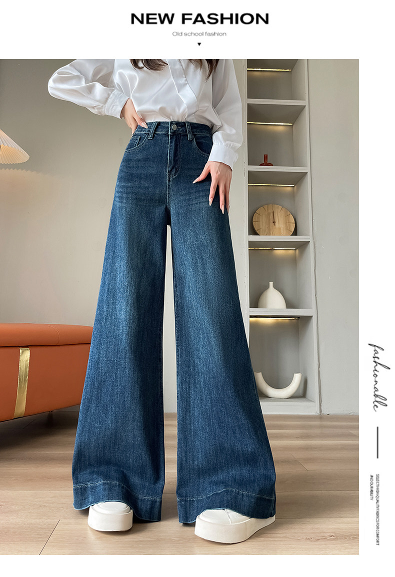 Wide-leg flared jeans for women 2026 high-end, loose, winter floor-length straight pants plus velvet floor-length pants