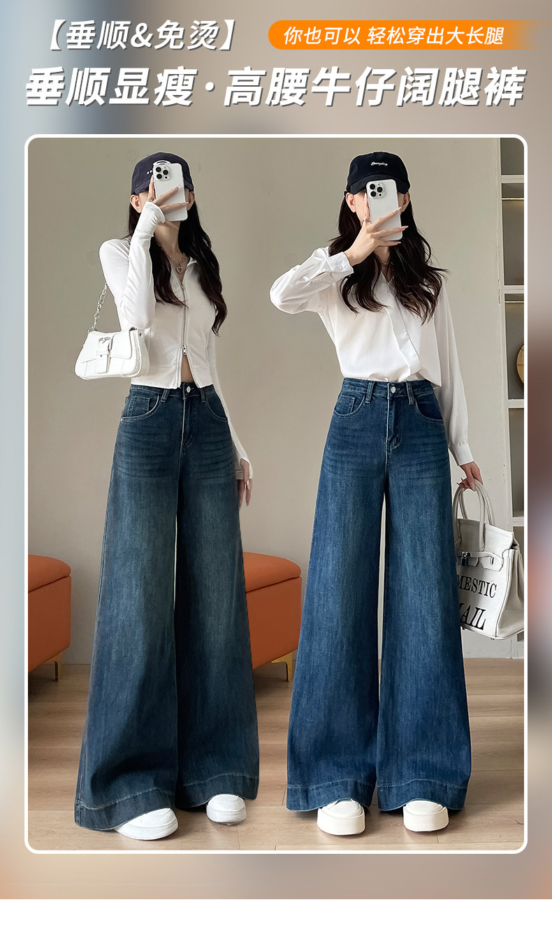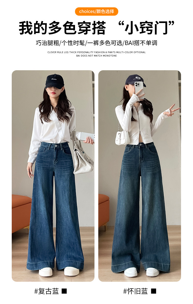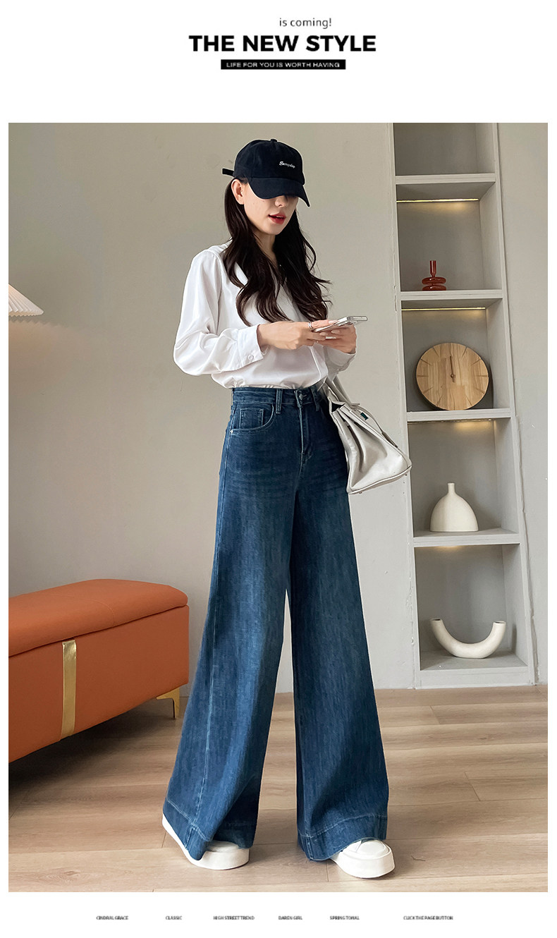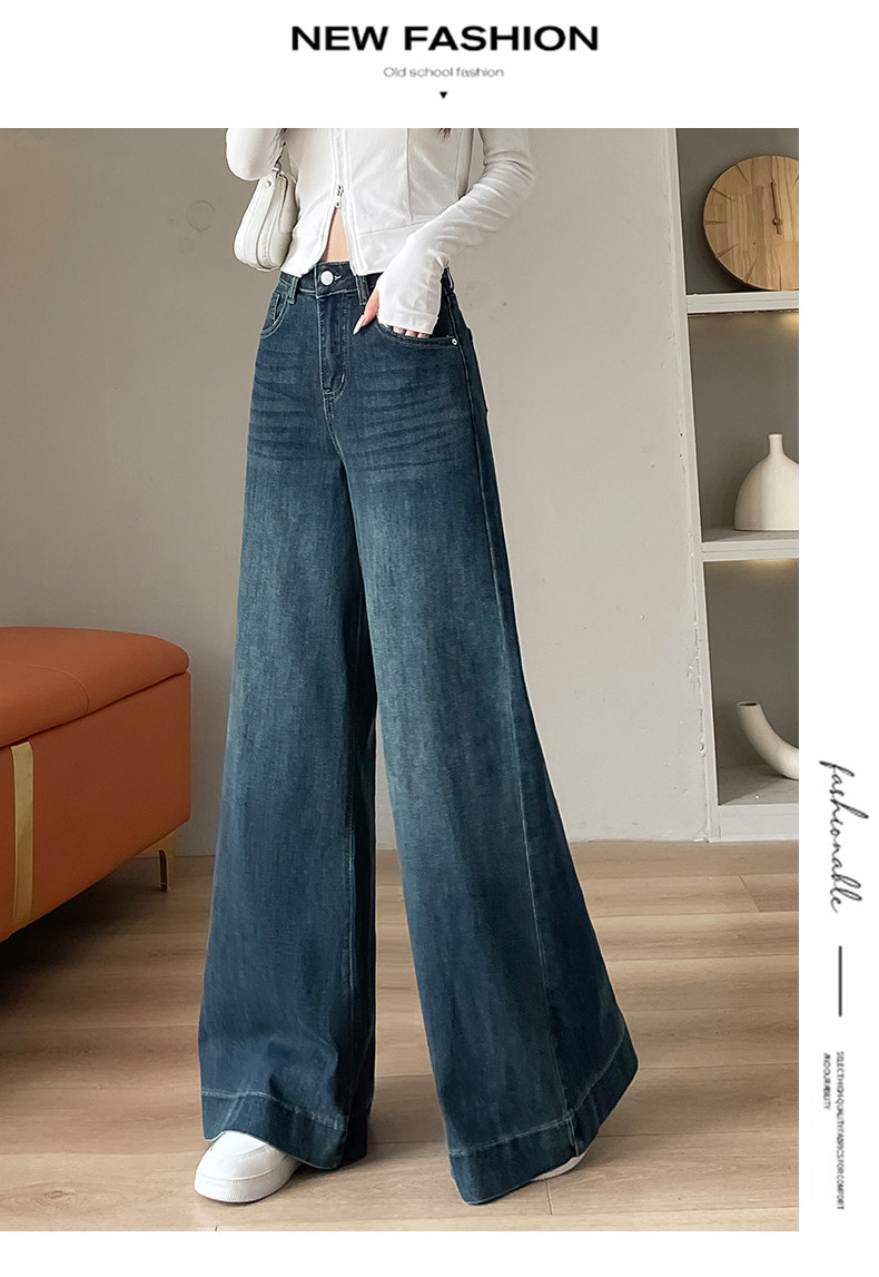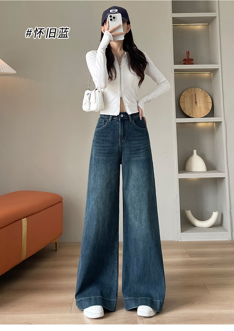 Wide-leg flared jeans for women 2026 high-end, loose, winter floor-length straight pants plus velvet floor-length pants