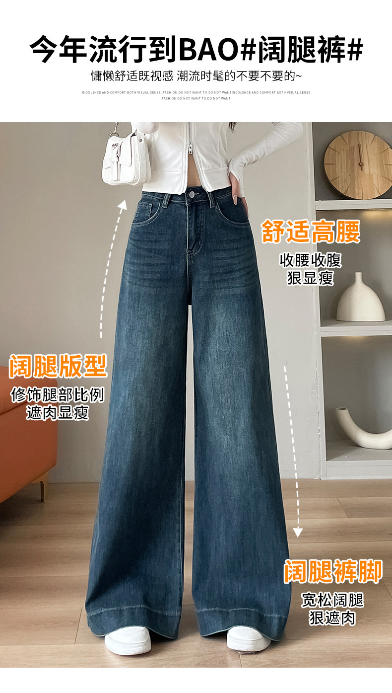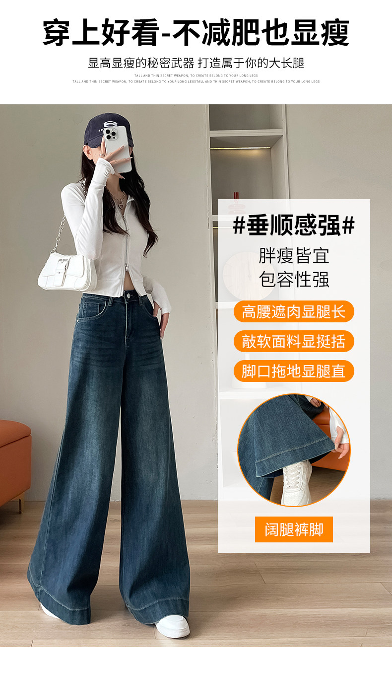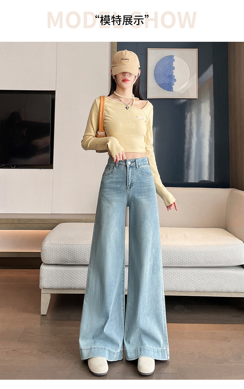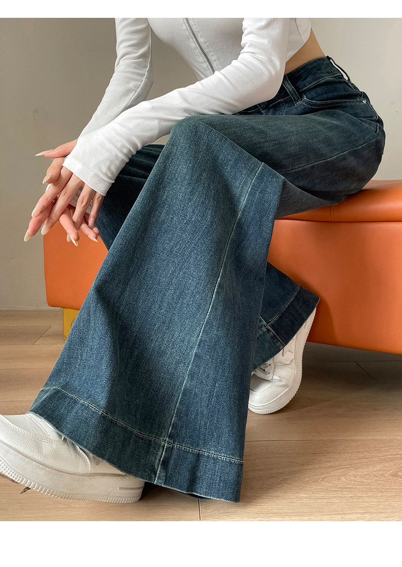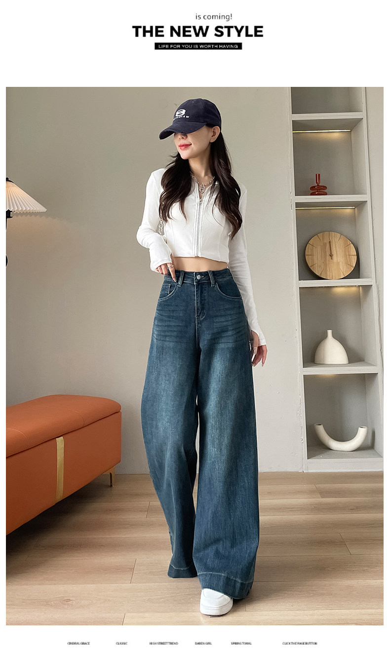 Wide-leg flared jeans for women 2026 high-end, loose, winter floor-length straight pants plus velvet floor-length pants